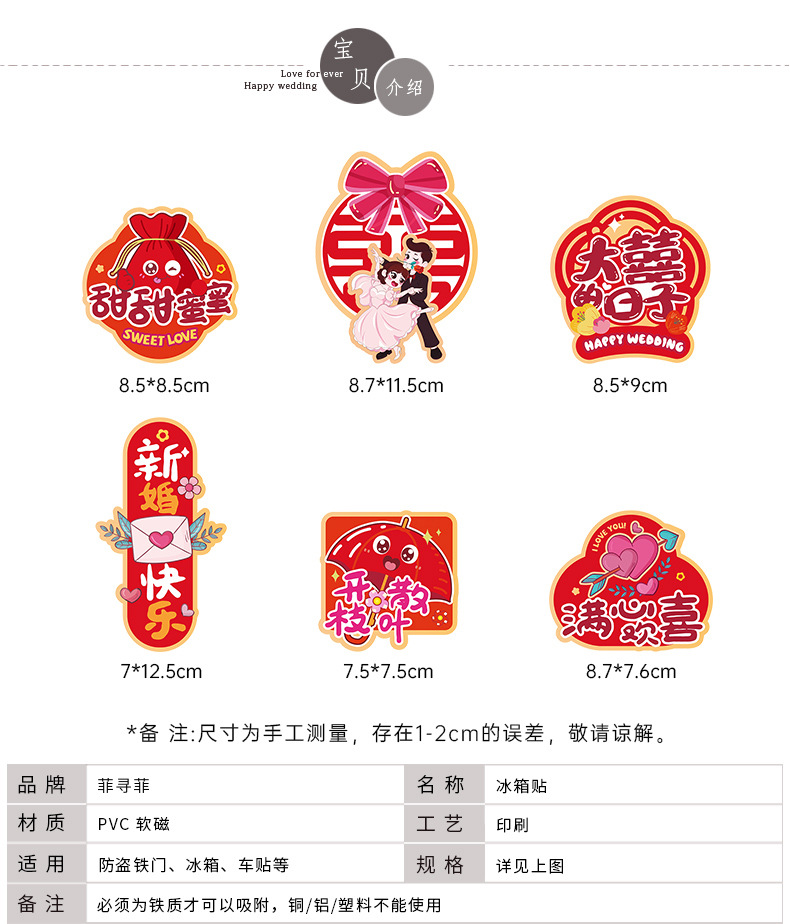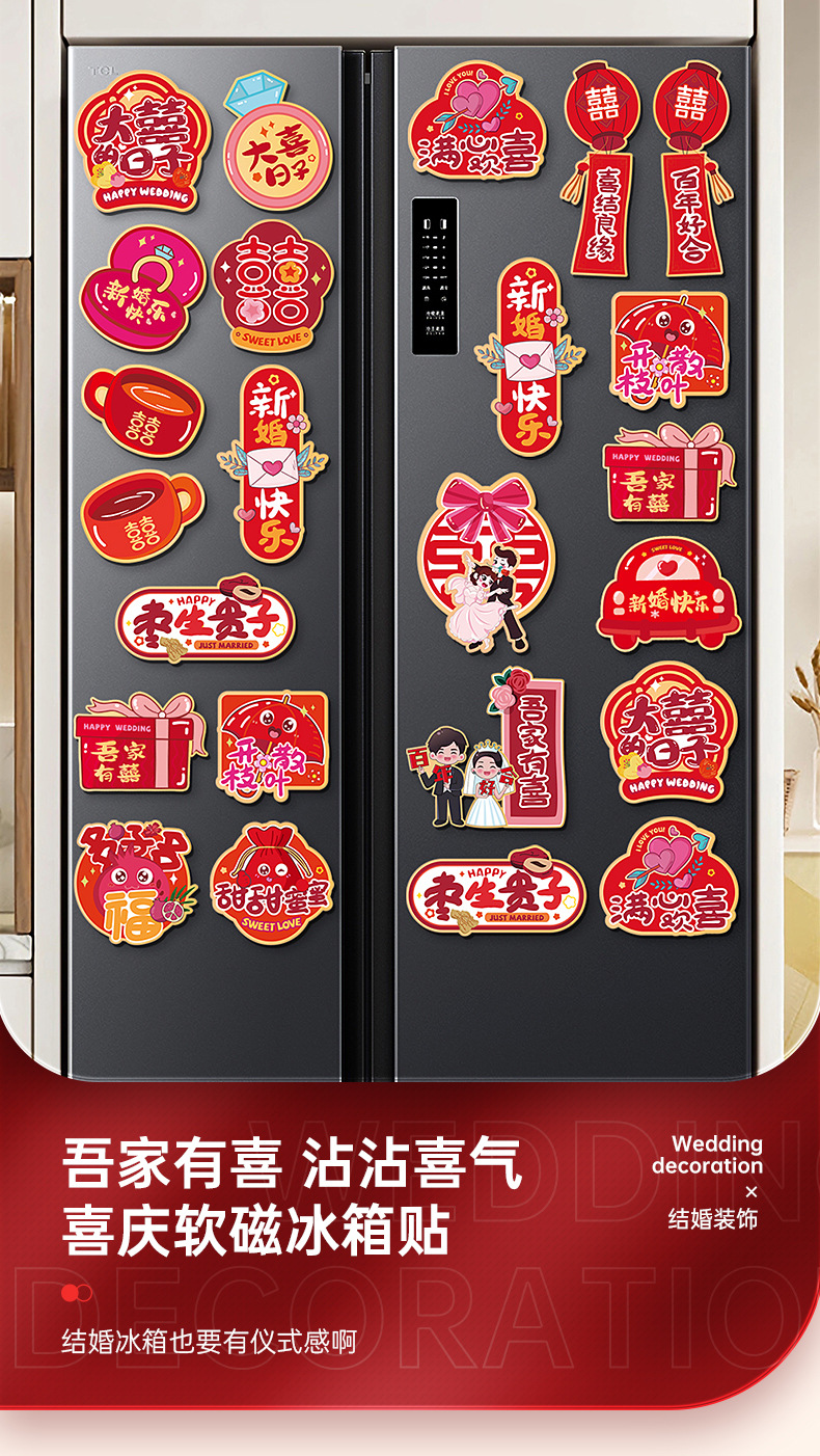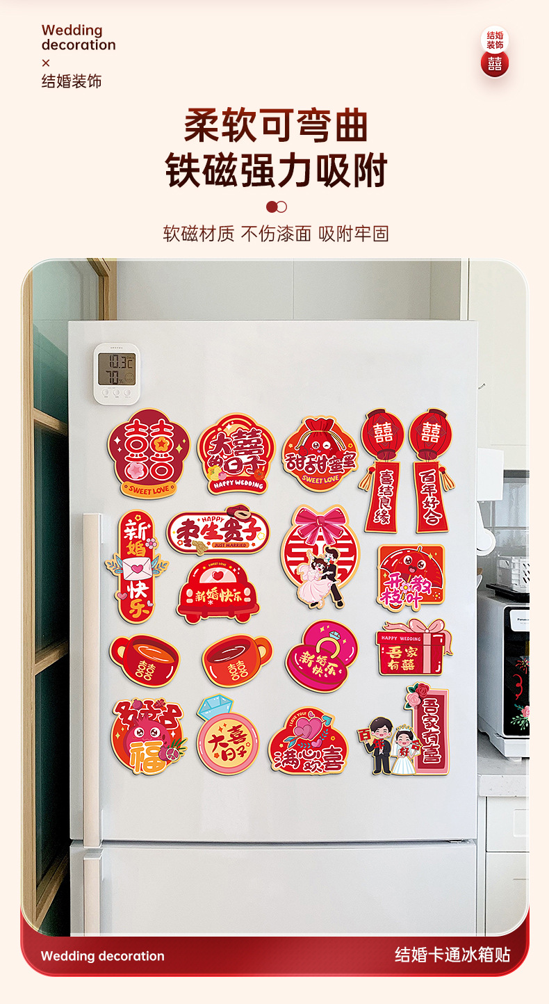 结婚冰箱贴个性创意装饰喜字磁吸贴新婚礼物婚房布置备婚用品大全磁吸冰箱贴结婚用品大全婚房布置装饰婚礼个性创意卡通对联喜字贴