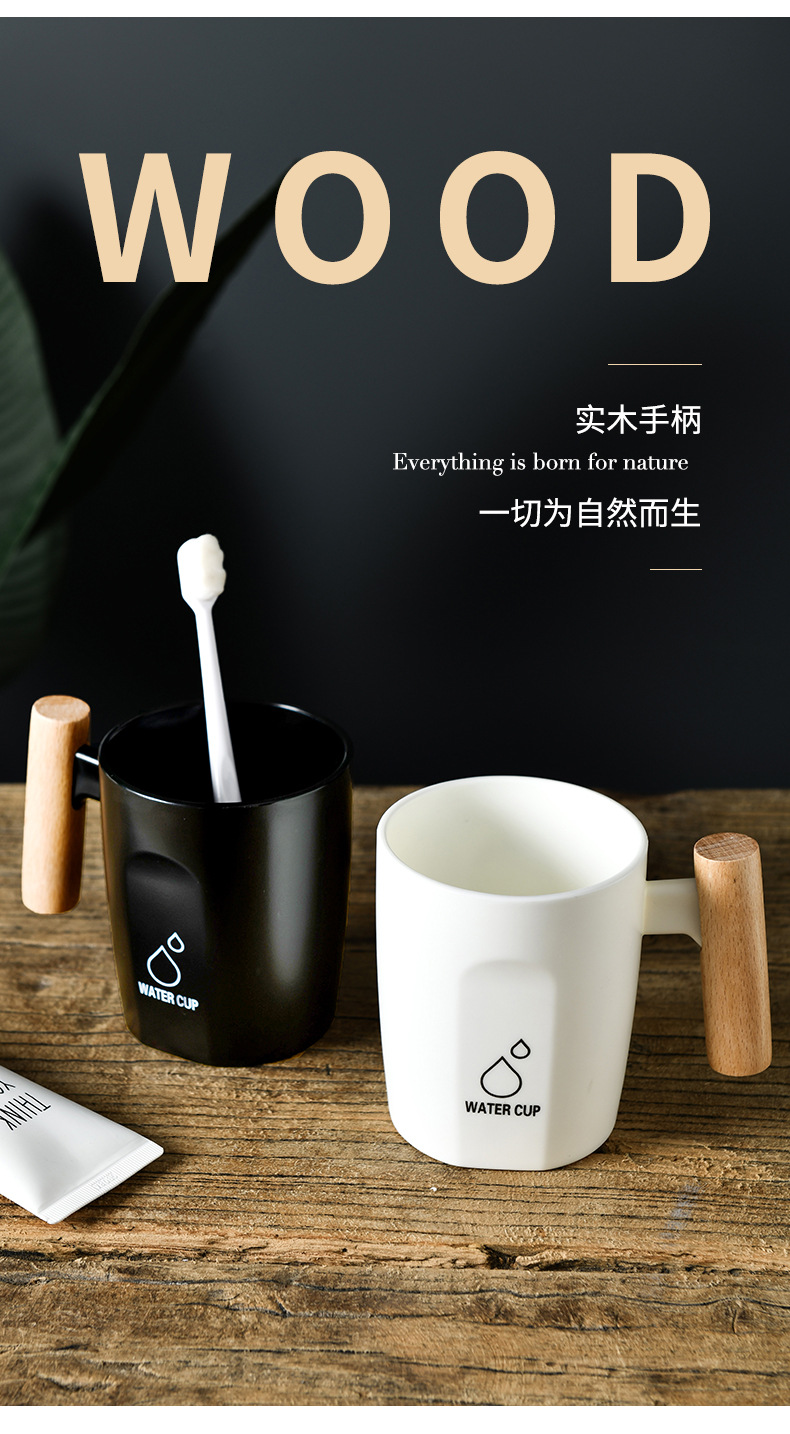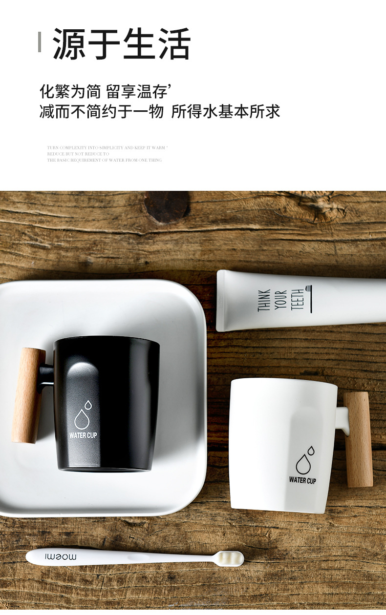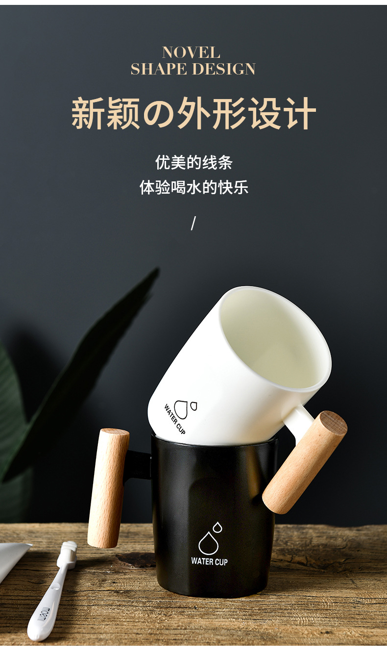 简约牙刷杯子洗漱杯木柄情侣漱口杯家用牙缸牙杯创意套装便携旅行