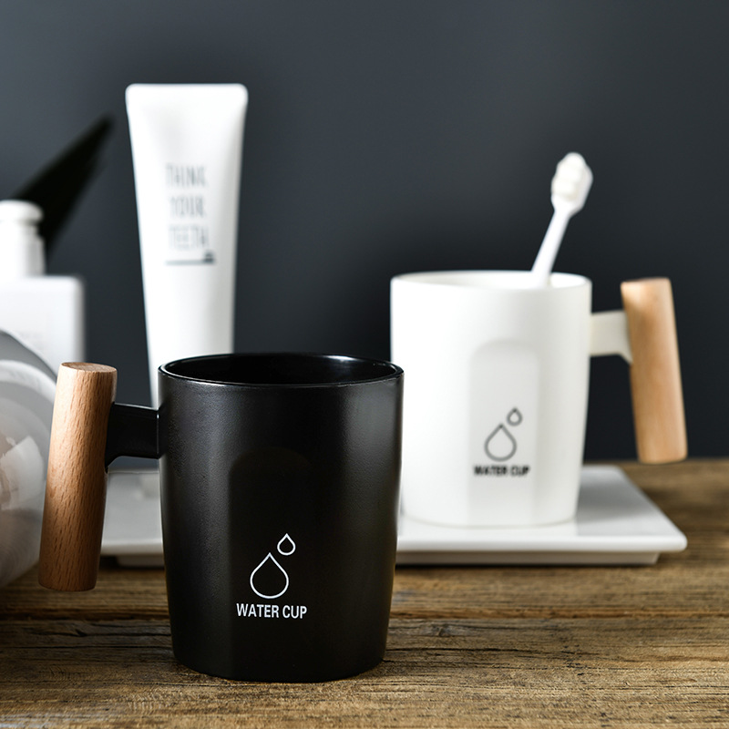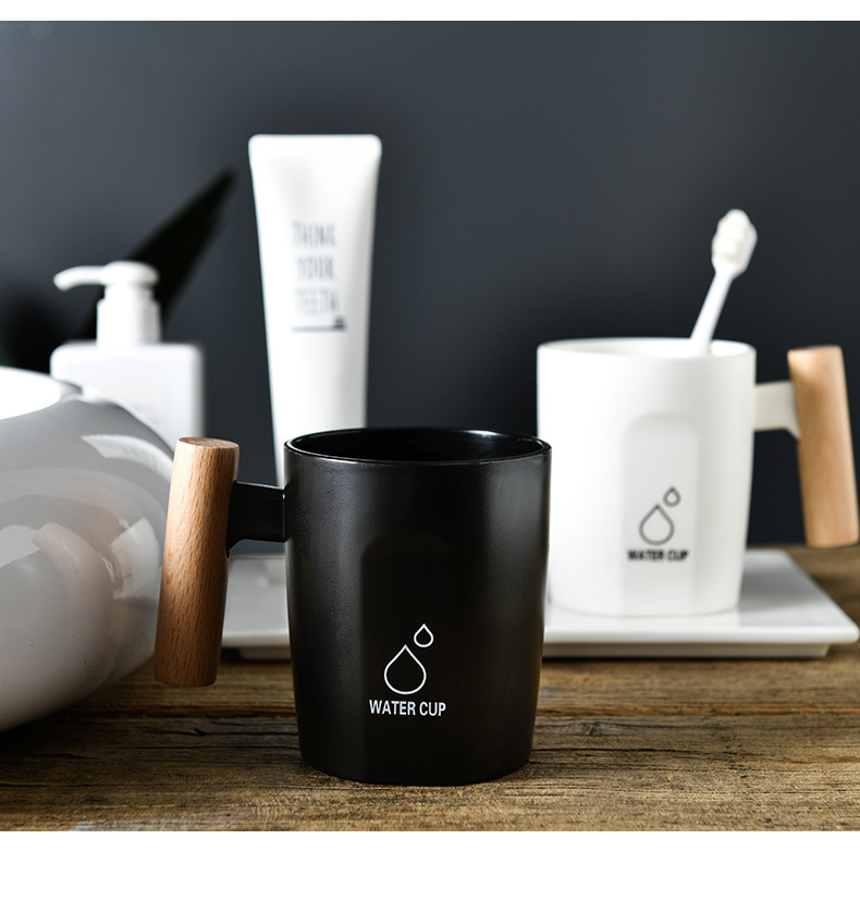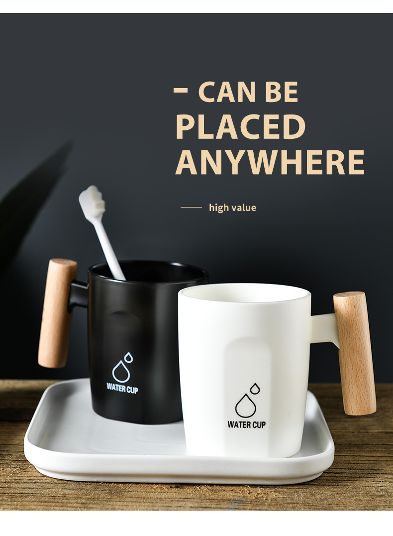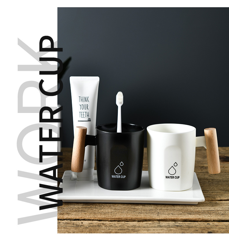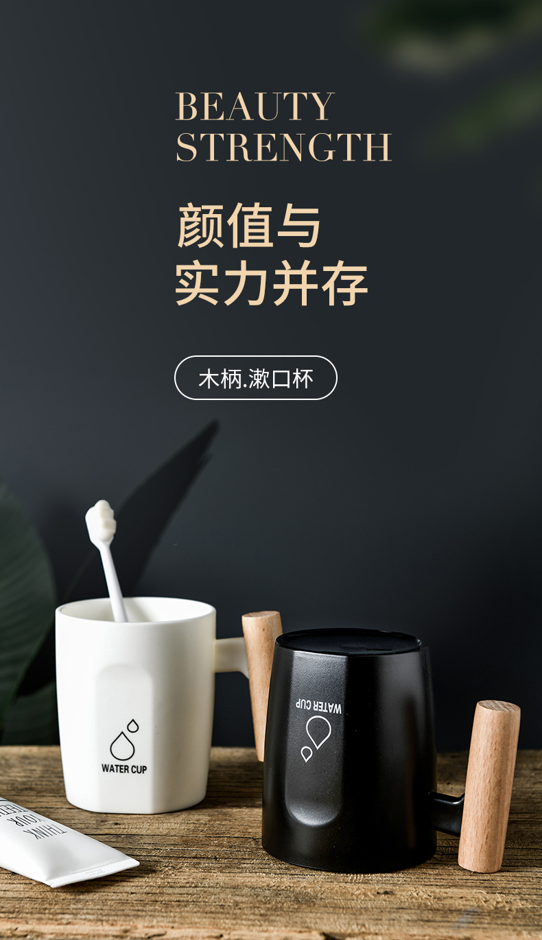 简约牙刷杯子洗漱杯木柄情侣漱口杯家用牙缸牙杯创意套装便携旅行