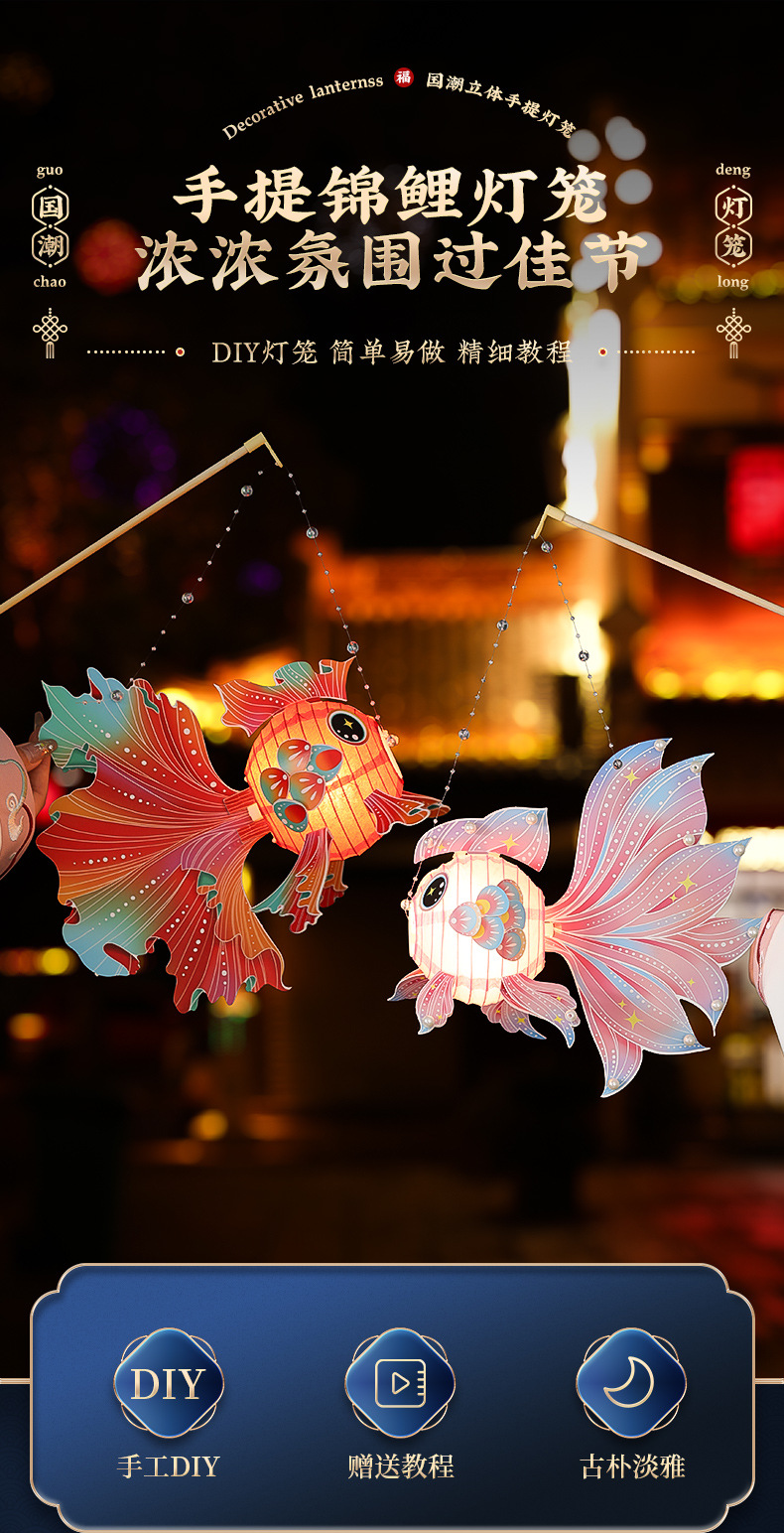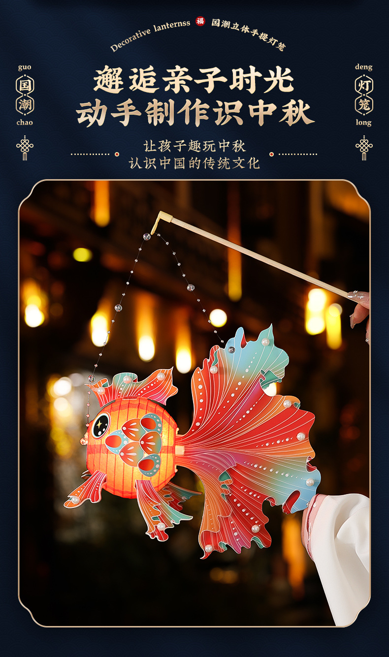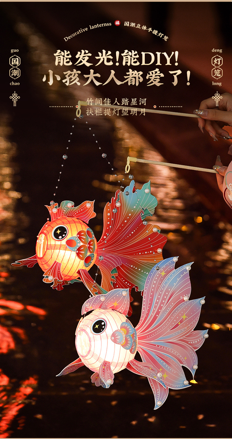 中秋节灯笼手工diy材料包儿童手提非遗锦鲤鱼小灯笼金鱼花灯