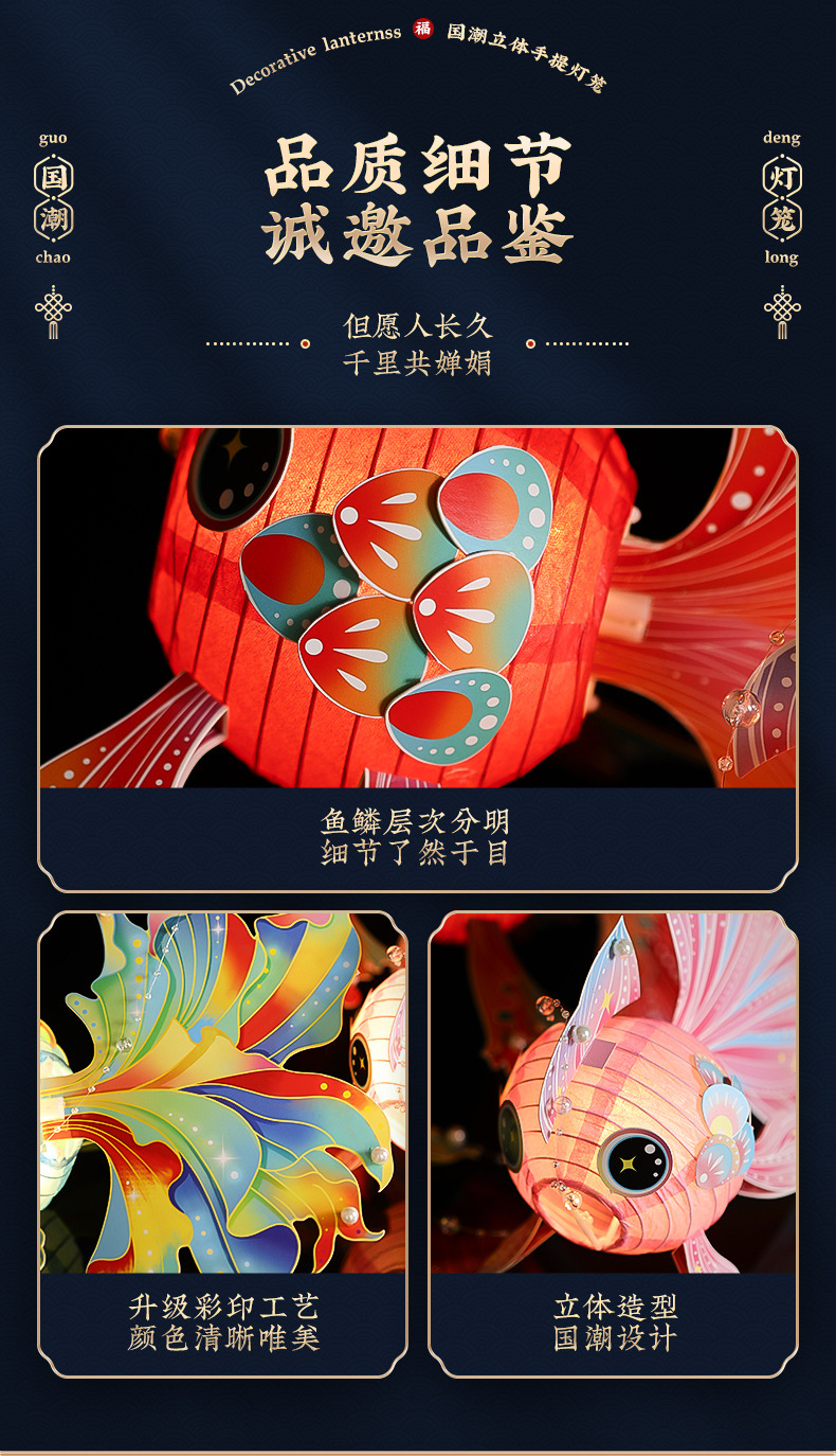中秋节非遗锦鲤灯笼手工diy儿童制作材包料非遗鱼灯发光花灯