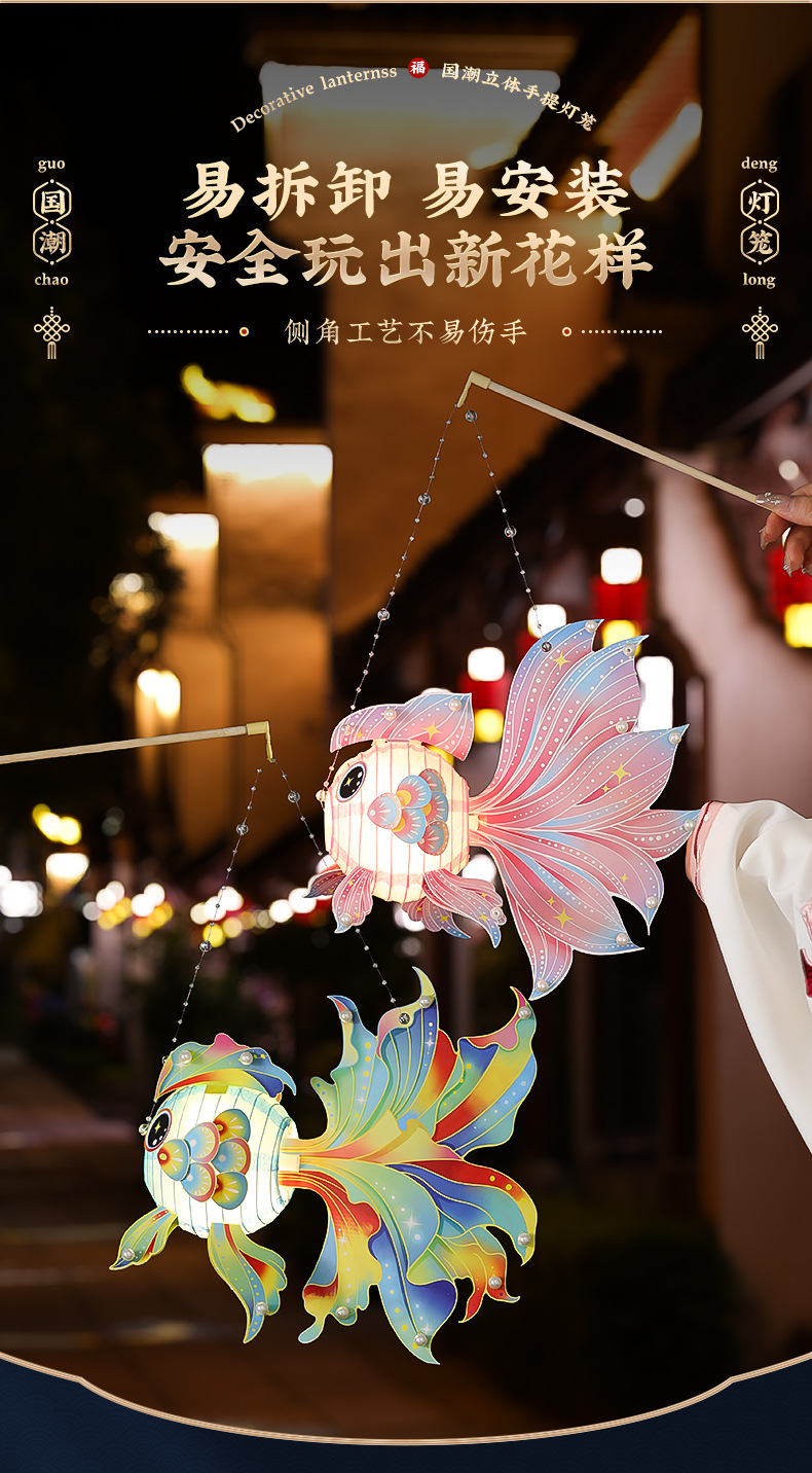 元宵节金鱼灯笼儿童手提锦鲤花灯 2025新款手工diy材料包挂饰宫灯