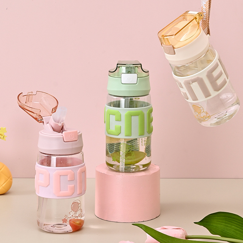 新款夏季新款运动杯学生水杯硅胶防烫隔热塑料吸管杯学生便携