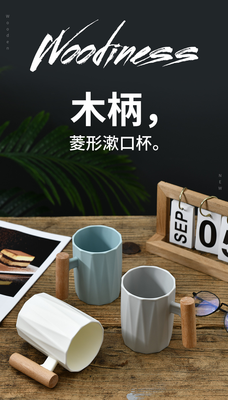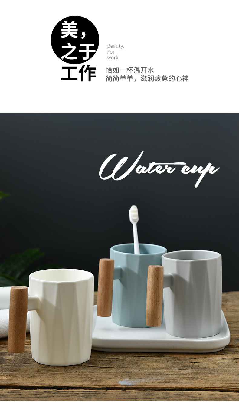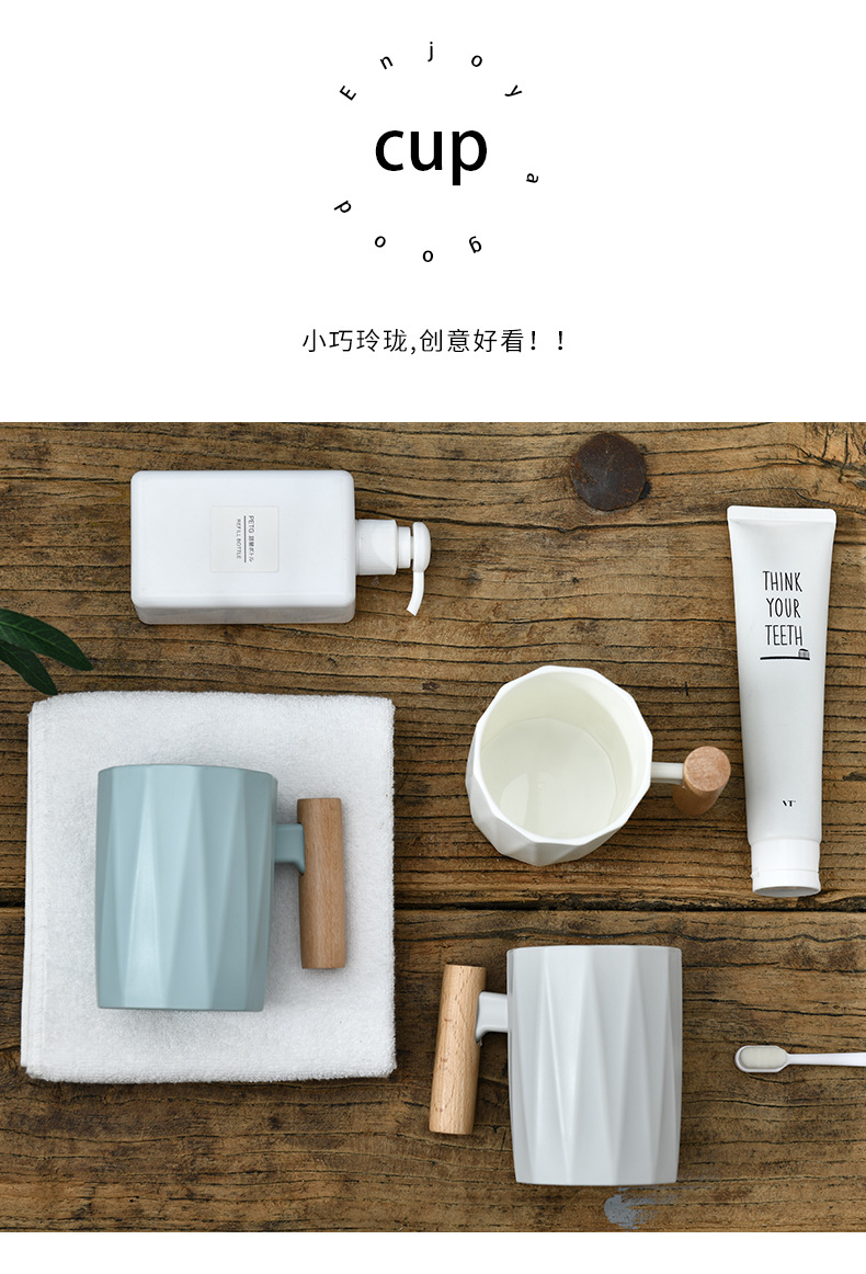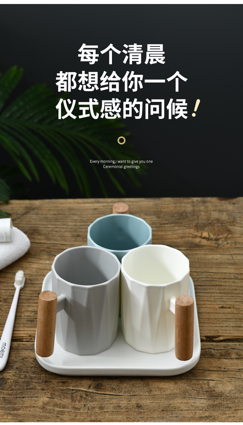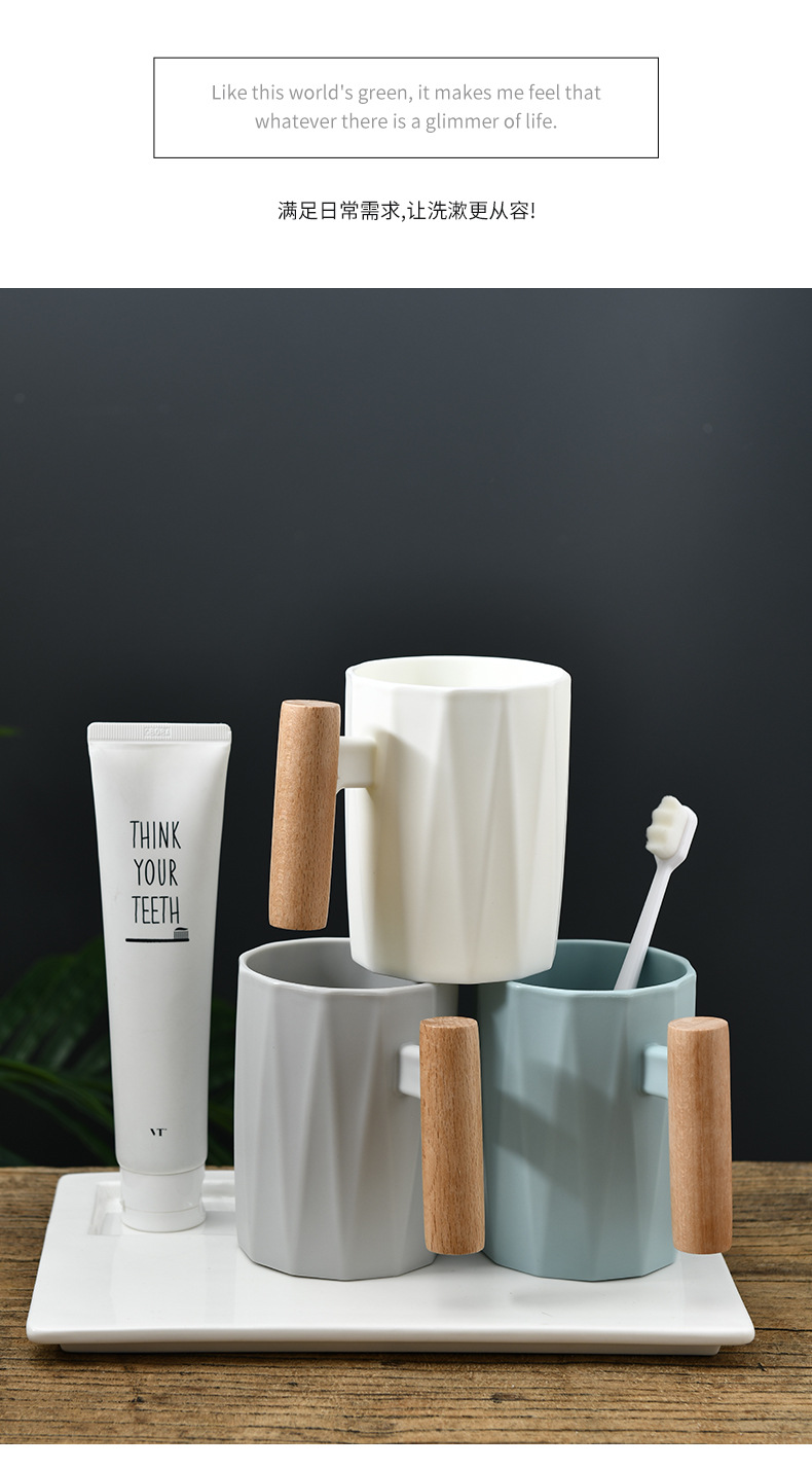 木柄漱口杯简约创意口杯家用情侣漱口家用牙刷杯套装洗漱杯