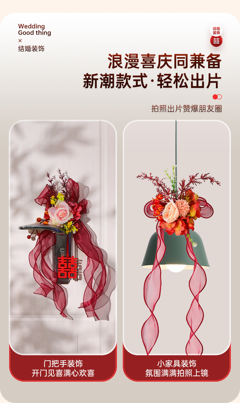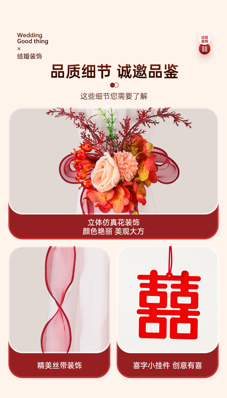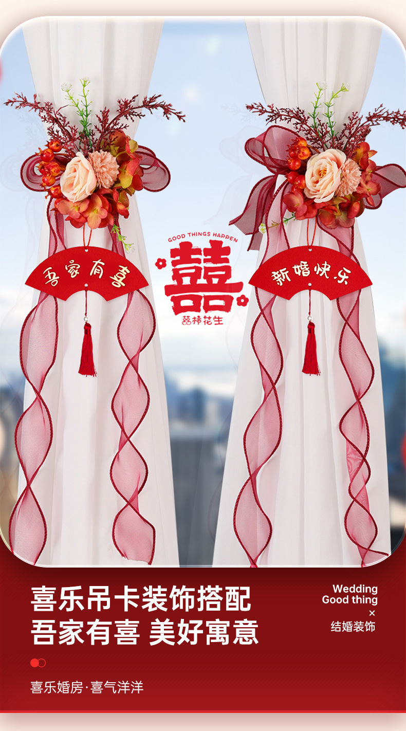 窗帘装饰结婚女方婚礼新房客厅房间喜字绑带拉花挂饰婚房布置套装