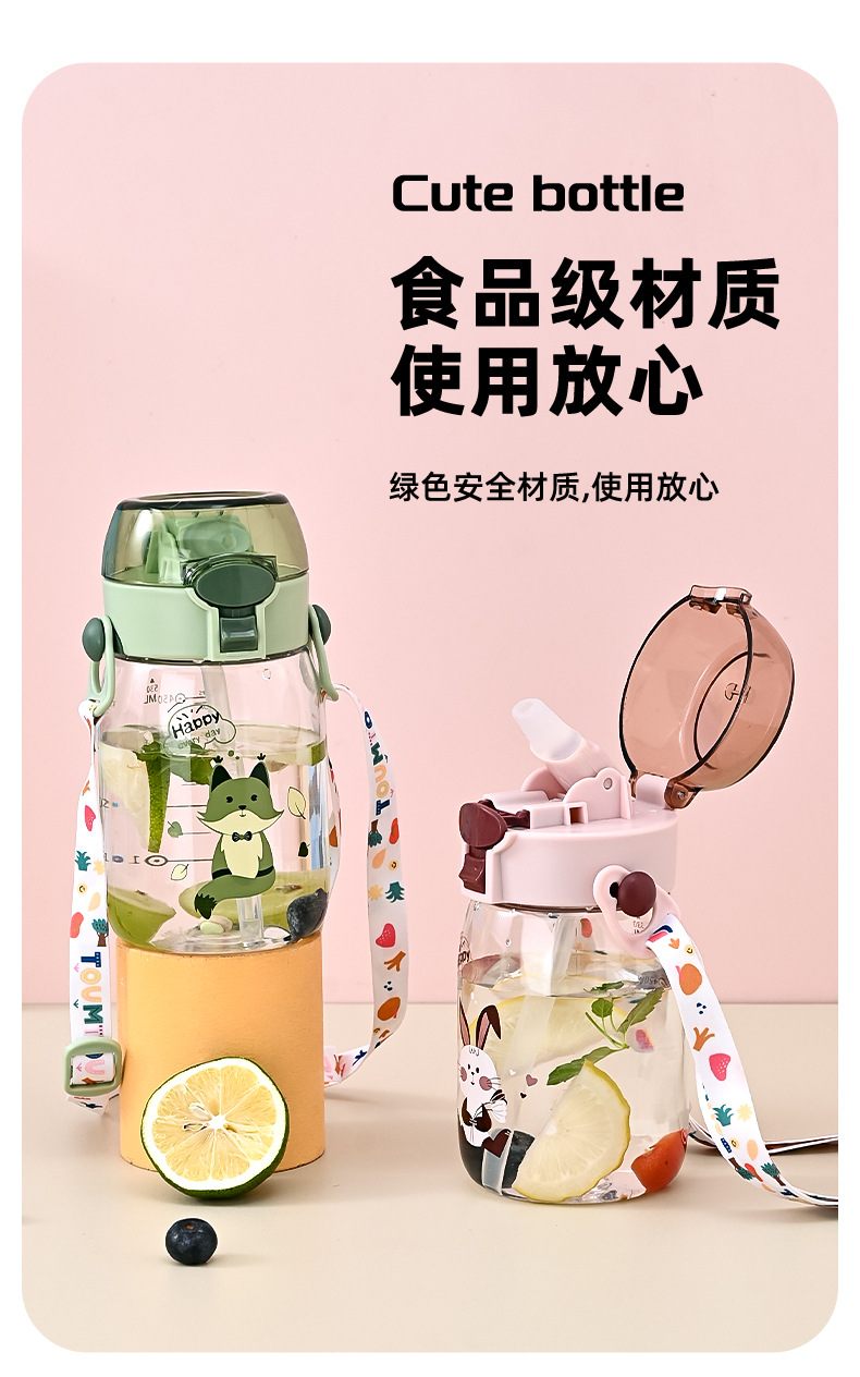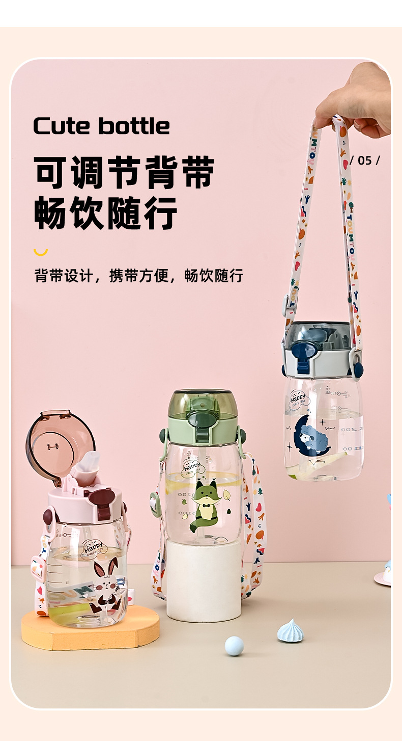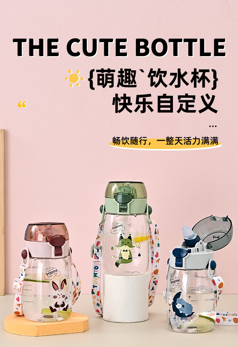 新款卡通水杯高颜值2024新款上学专用夏天便携可爱习惯儿童杯肩带
