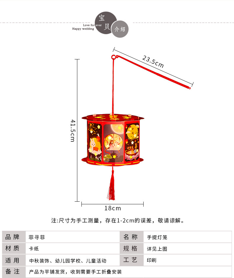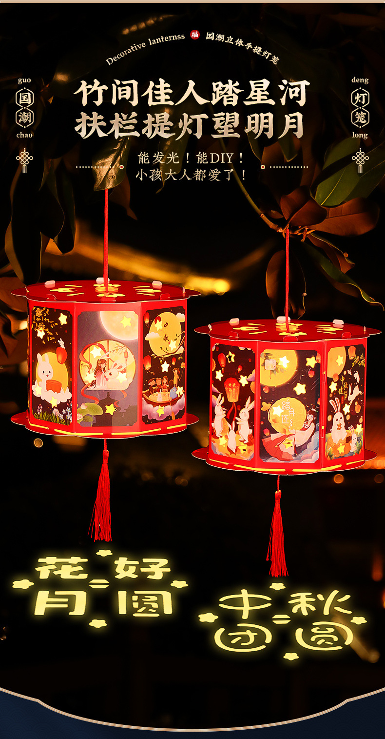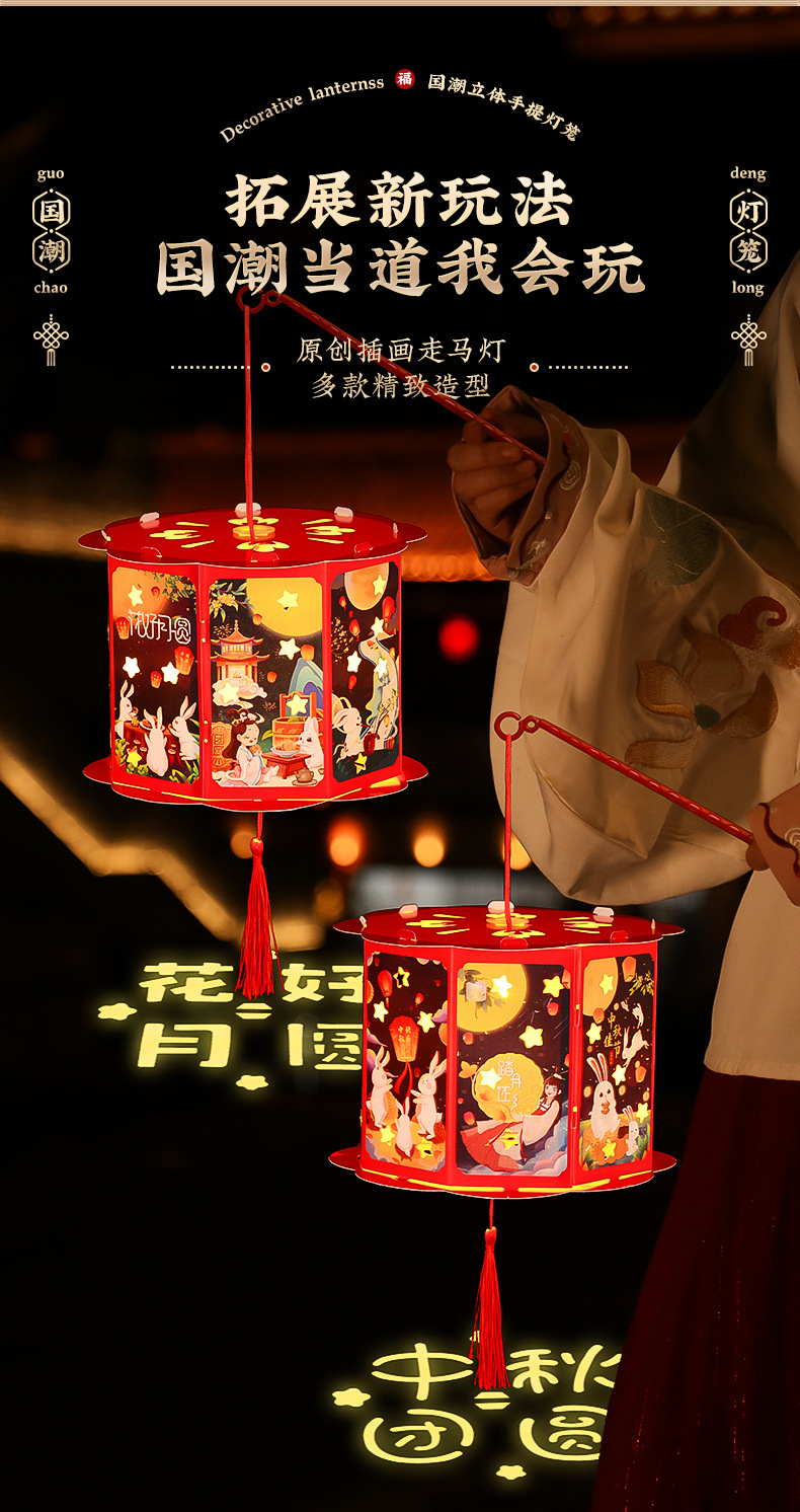 中秋节手提灯笼儿童手工DIY灯笼材料包木框发光兔子古风汉服花灯