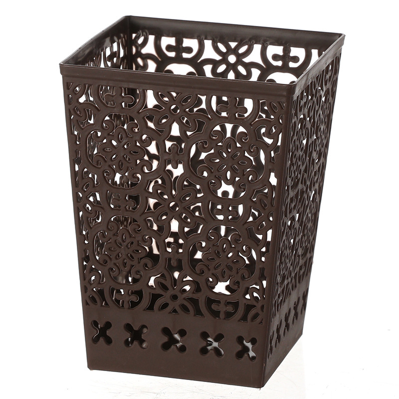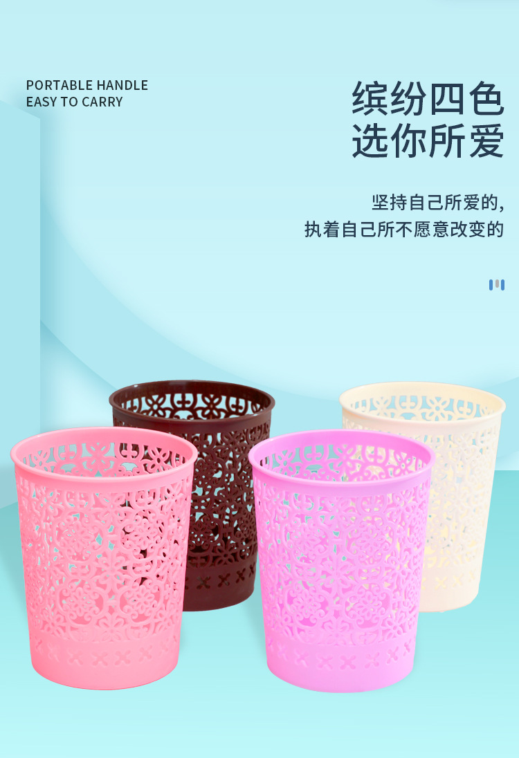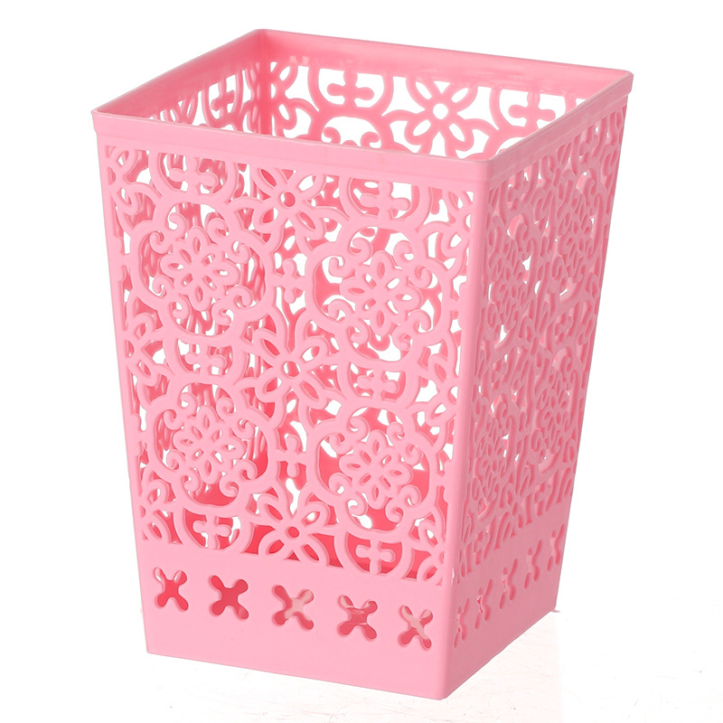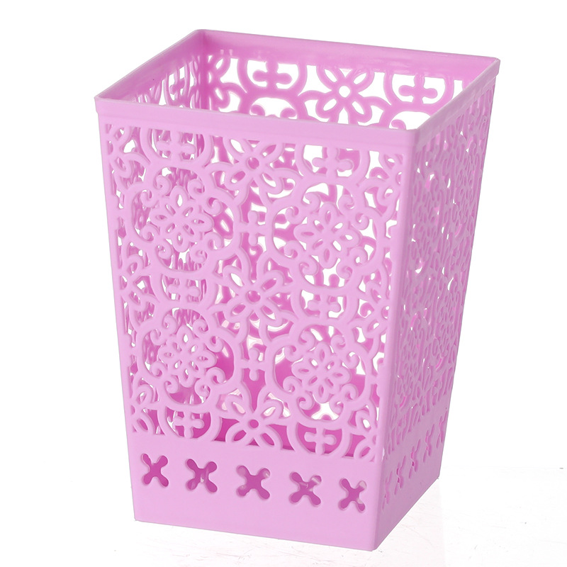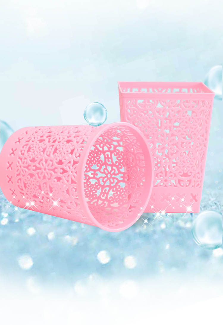 圆形收纳筒创意学生简约镂空小笔筒 桌面收纳盒防藤编塑料办公