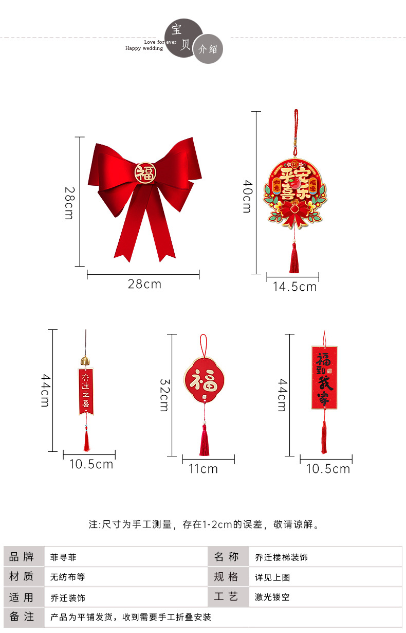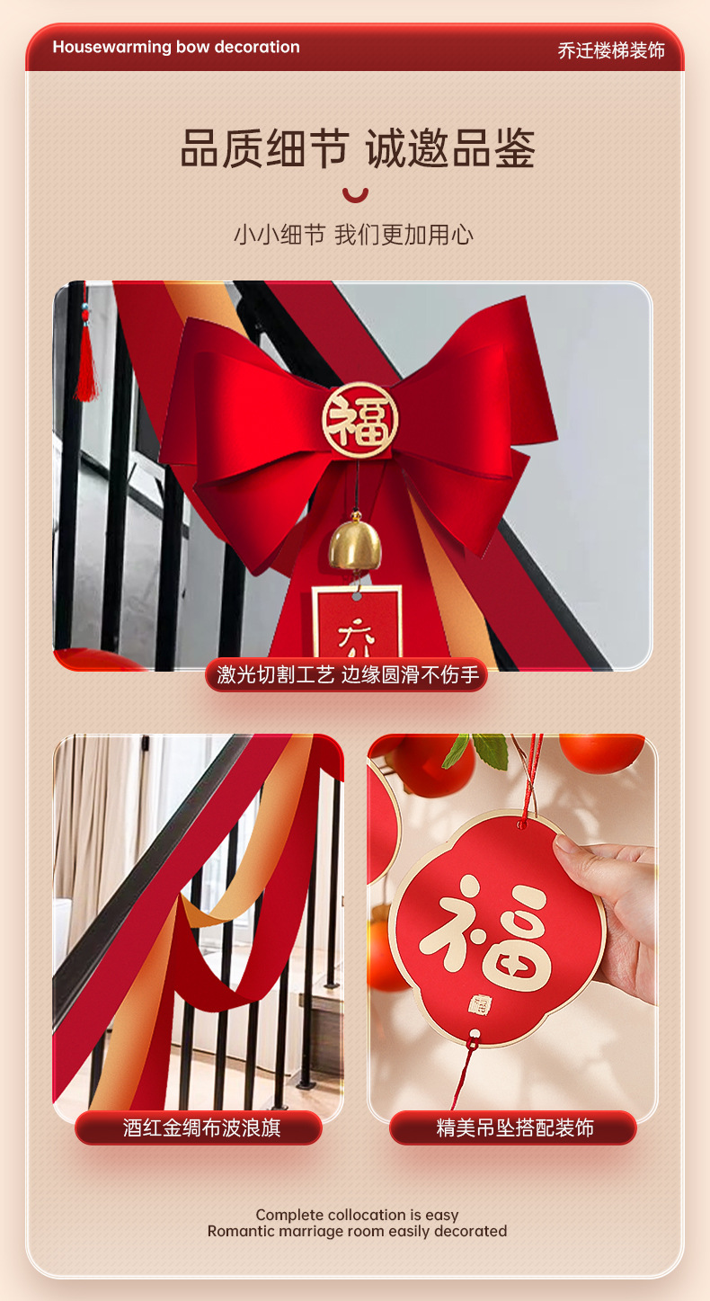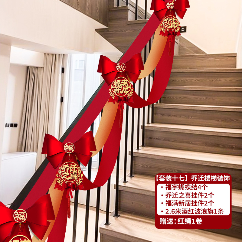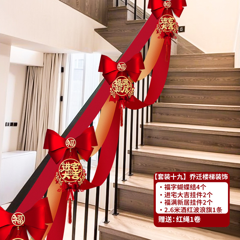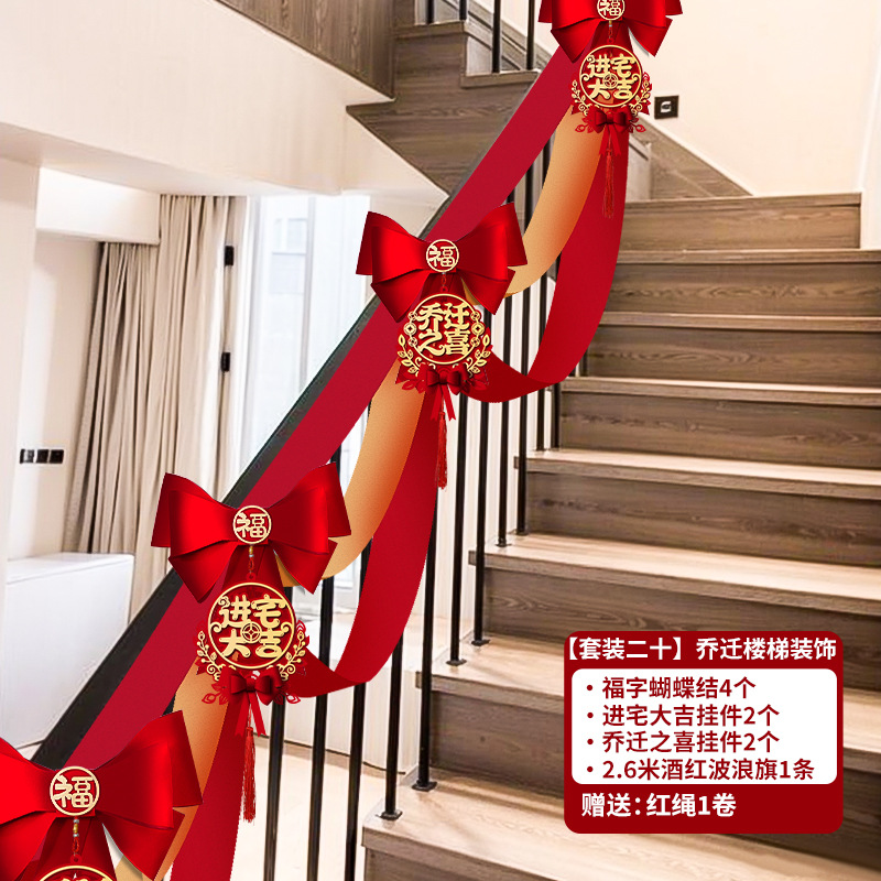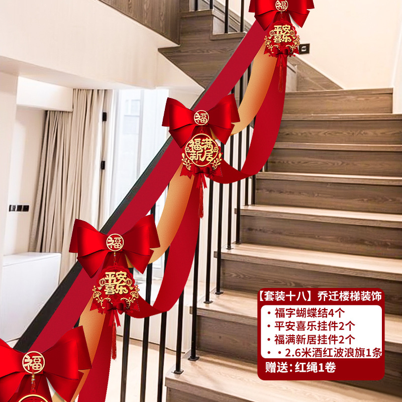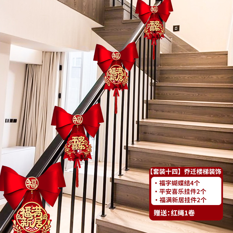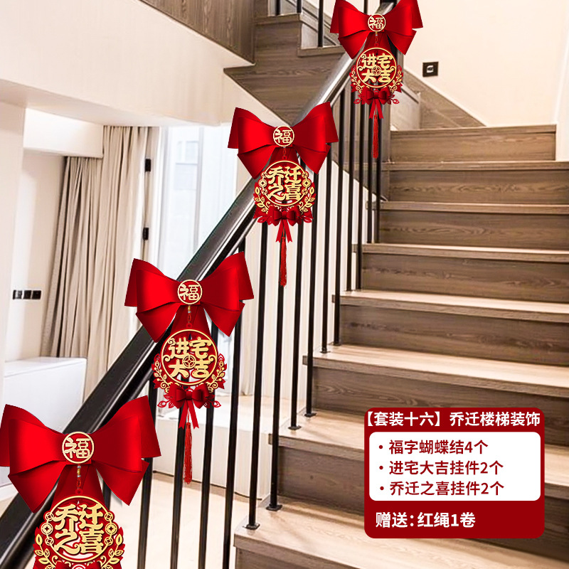 乔迁之喜入宅新居楼梯扶手蝴蝶结挂件装饰套装搬新家布置仪式用品