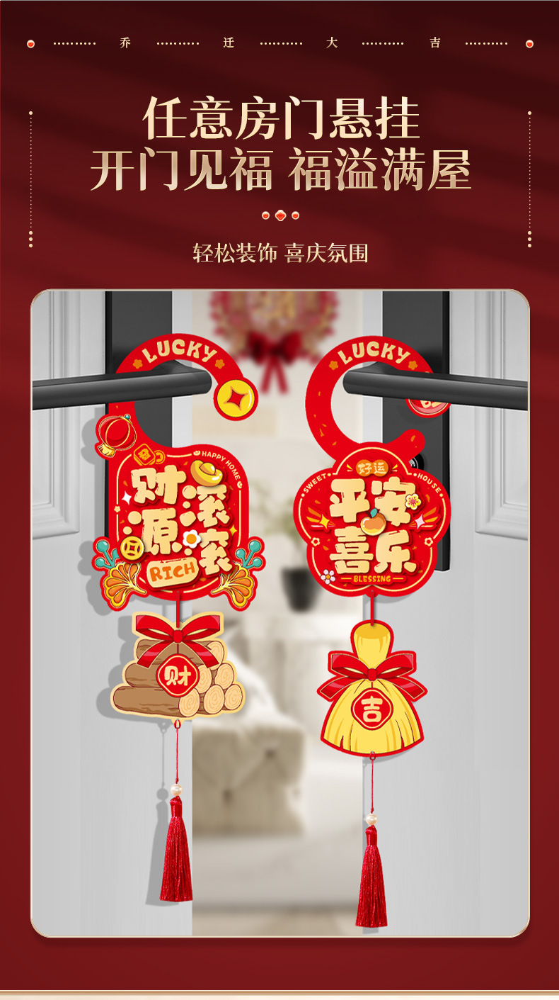 乔迁之喜大门把手挂饰新居装饰挂件新房搬家布置入宅仪式入户门挂