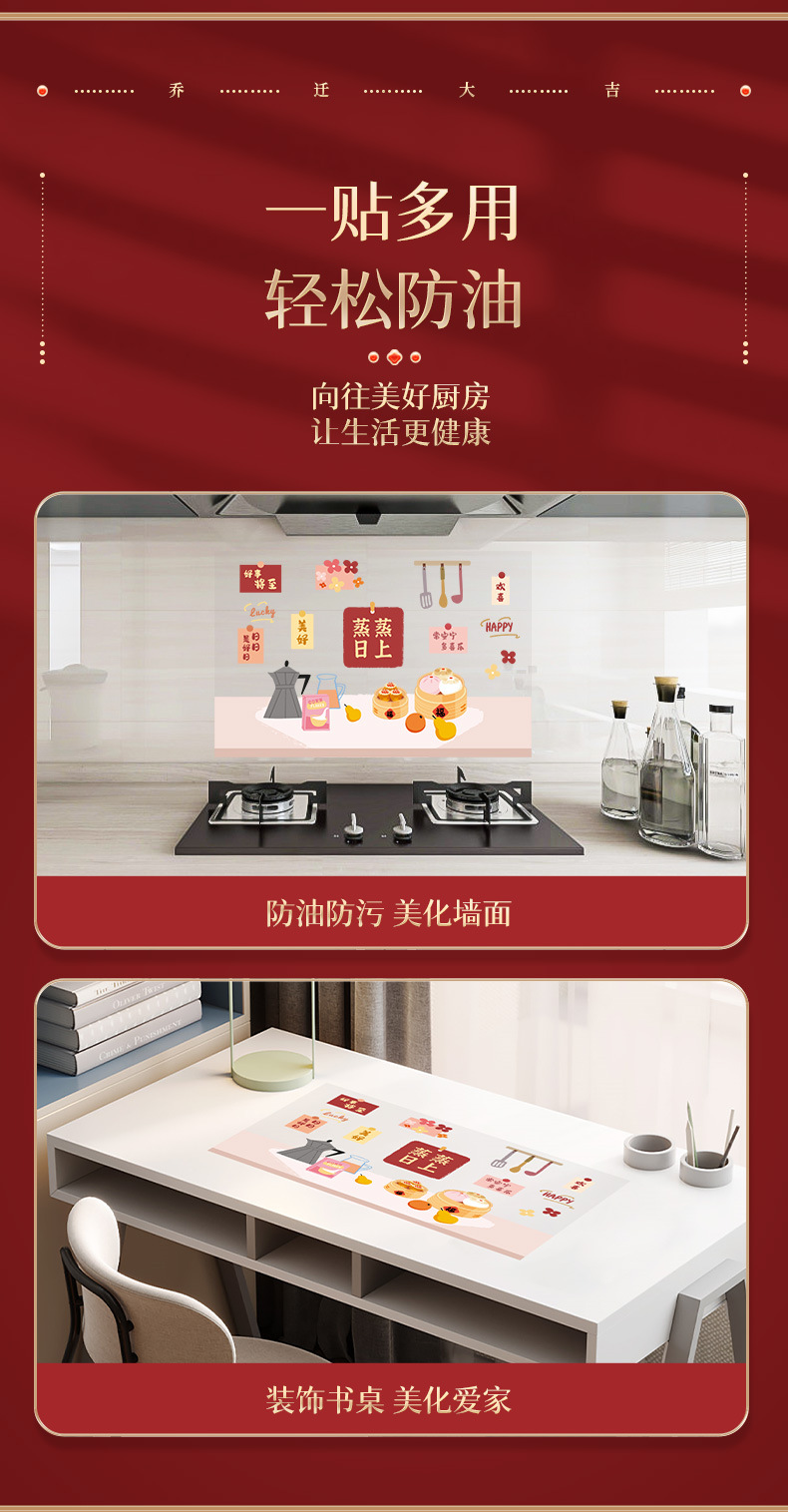 厨房贴纸防油静电贴透明耐高温瓷砖墙贴灶台油烟机墙面防水自粘墙