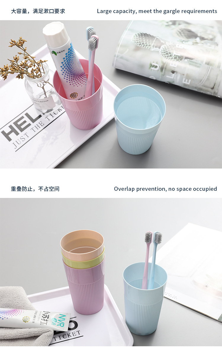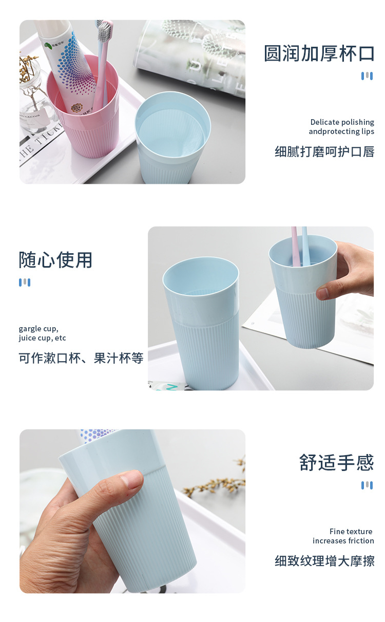 创意细纹广口刷牙杯漱口杯简约喝水杯子家用情侣牙刷杯洗漱杯