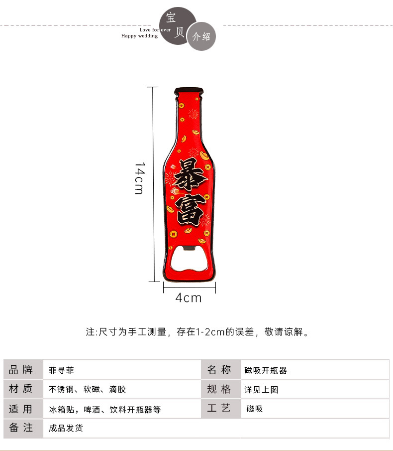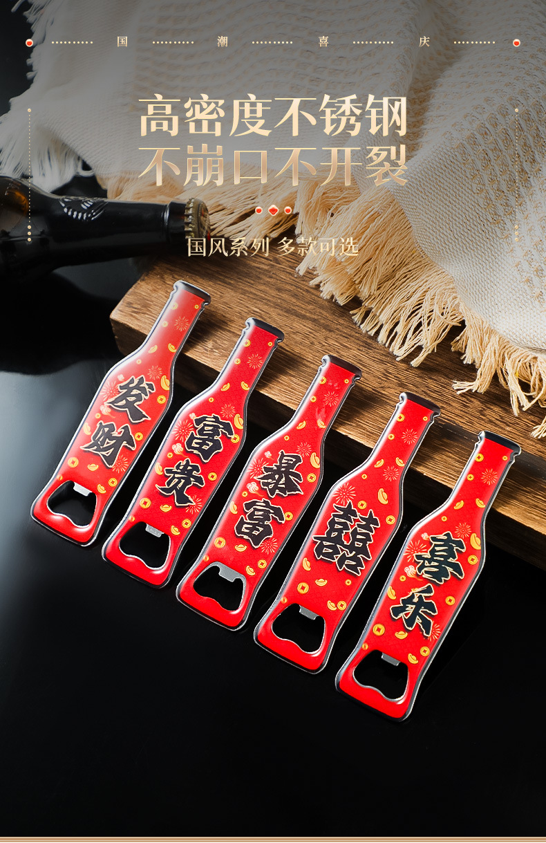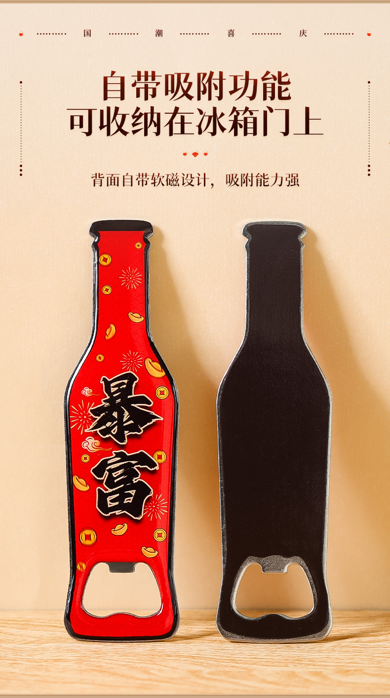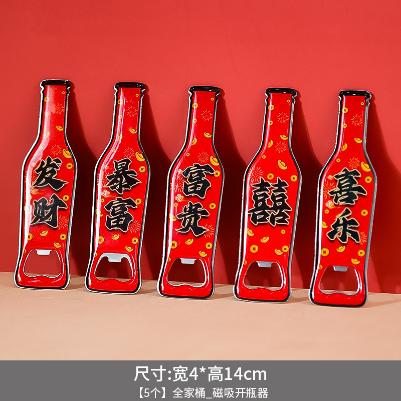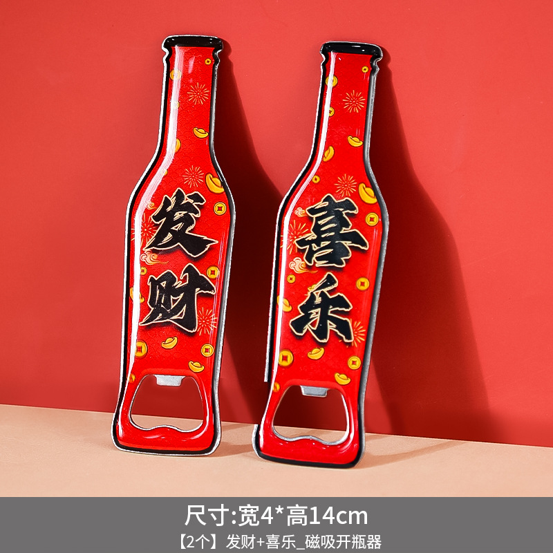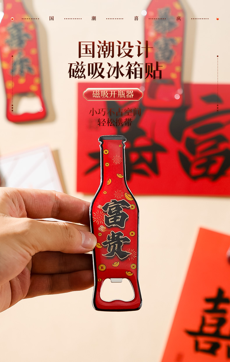 冰箱贴喜庆开瓶器工具磁性冰箱贴2024新款个性多功能国潮酒瓶起子