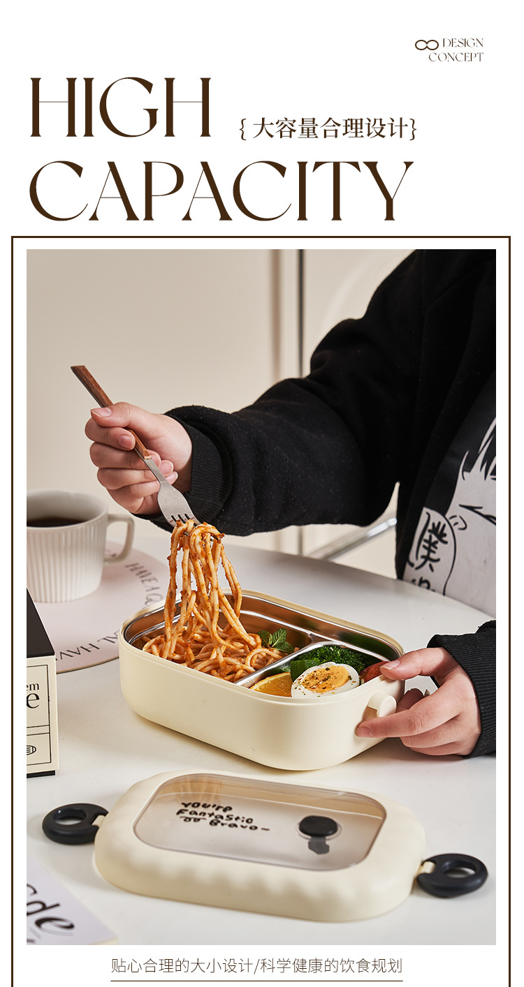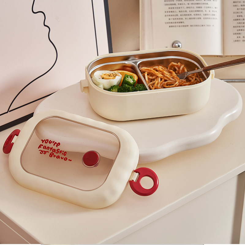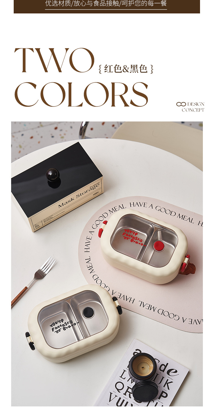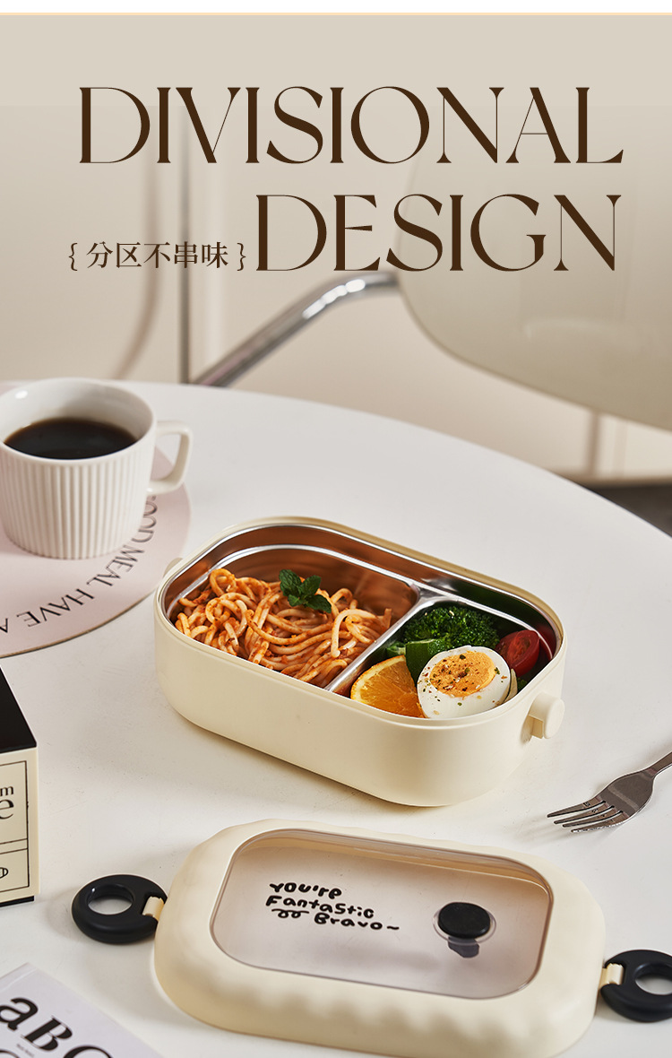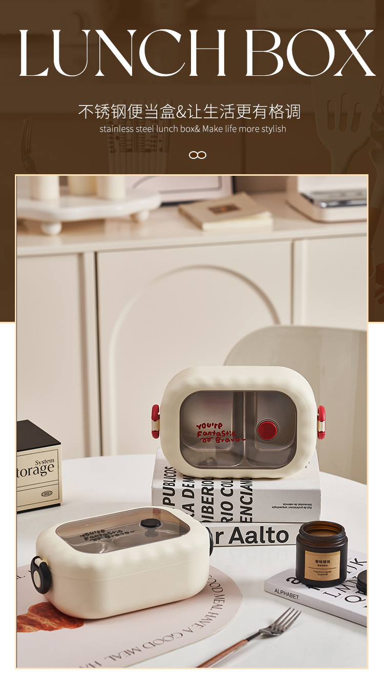 新款304不锈钢饭盒简约卡扣上班族学生塑料分格午餐盒打包便当盒