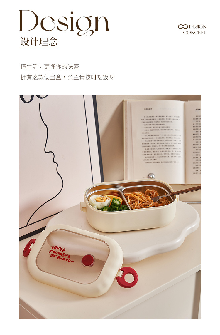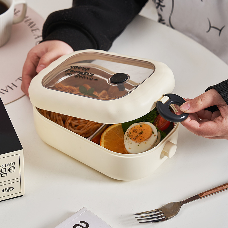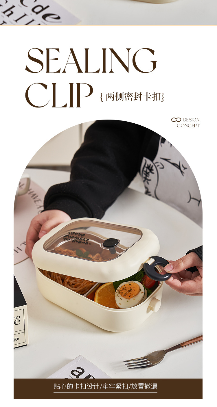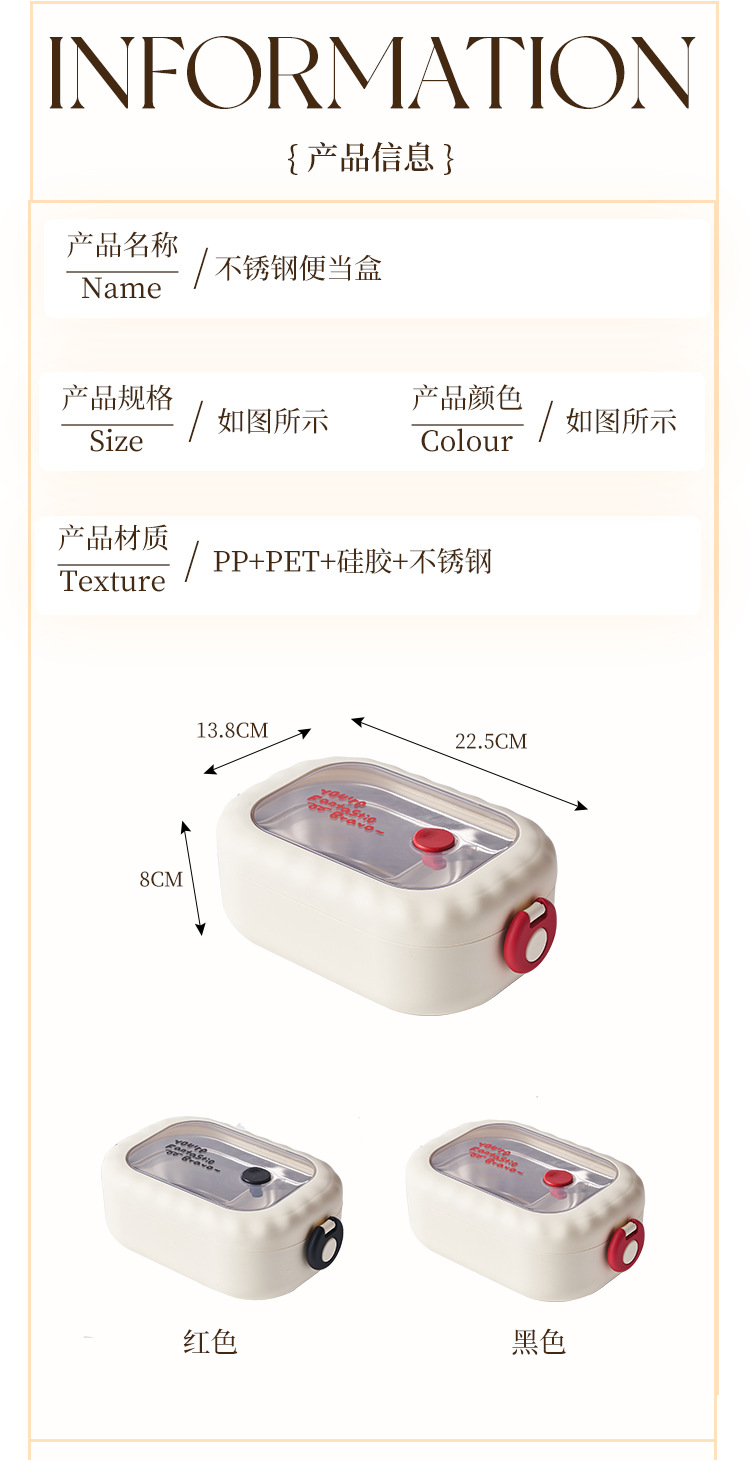 新款304不锈钢饭盒简约卡扣上班族学生塑料分格午餐盒打包便当盒