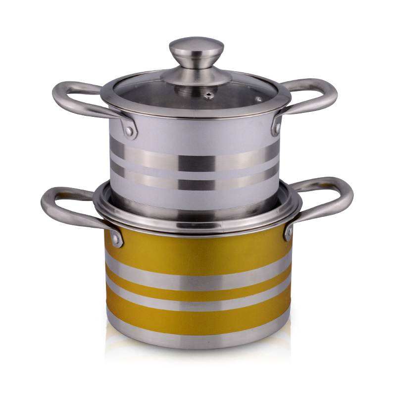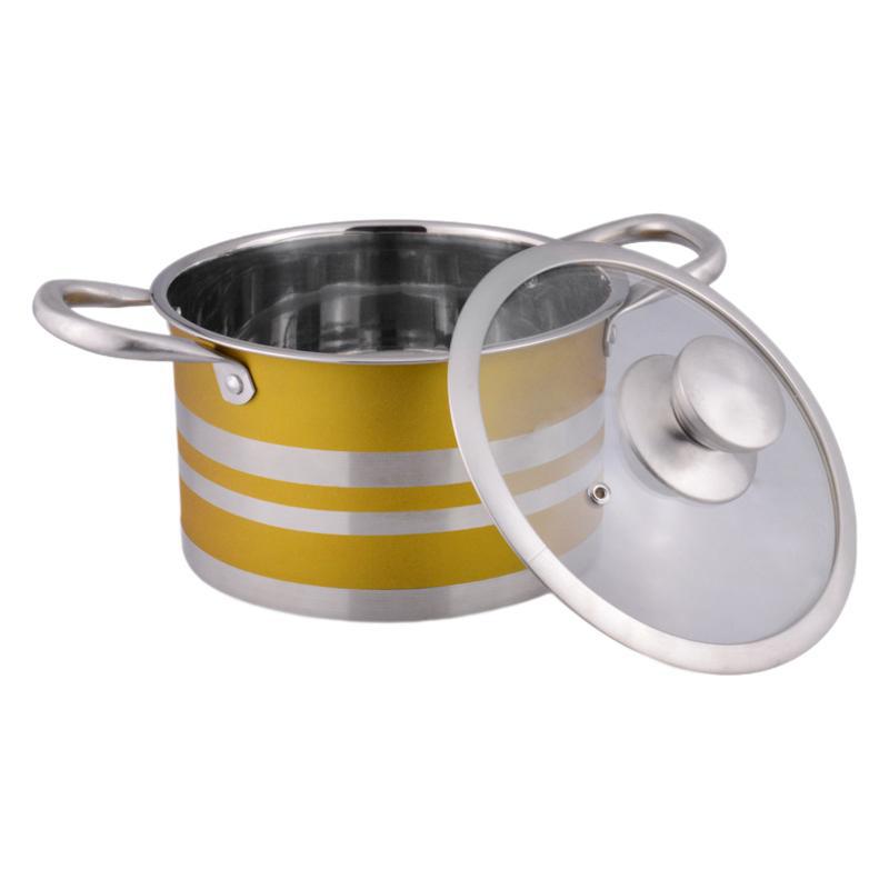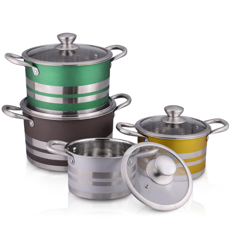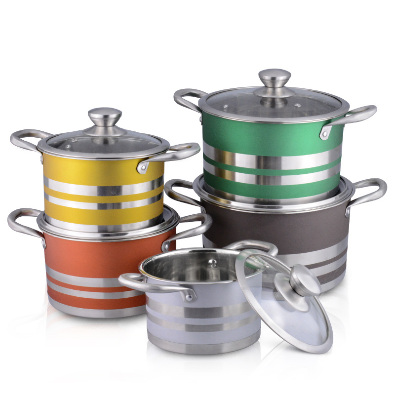 潮州互发厂家跨境不锈钢10件套汤锅外贸年会礼品彩色直角套装锅