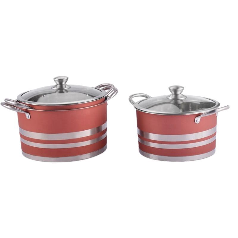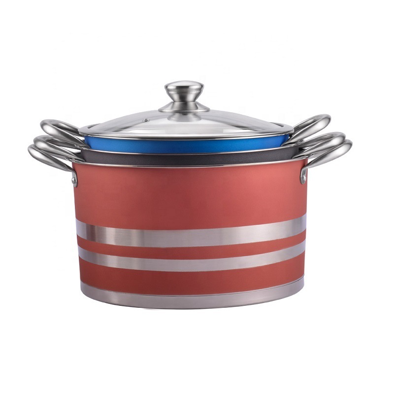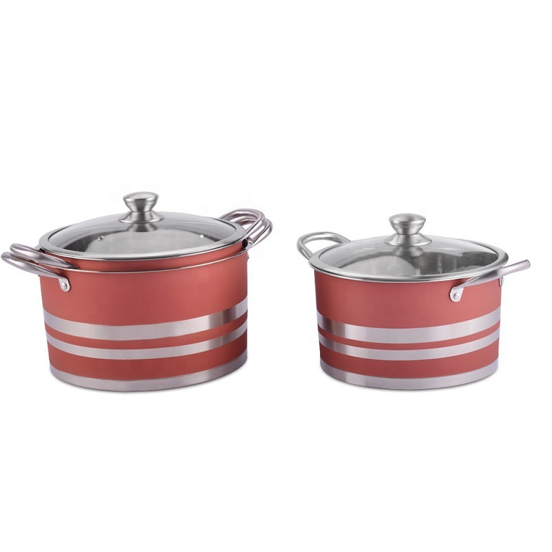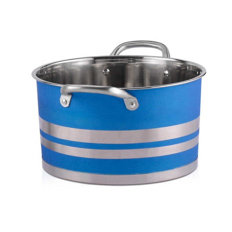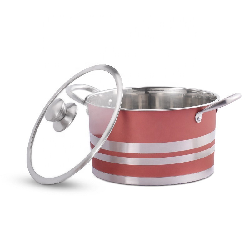 潮州互发不锈钢直角汤锅礼品锅套装带玻璃盖复底双耳不粘彩色锅