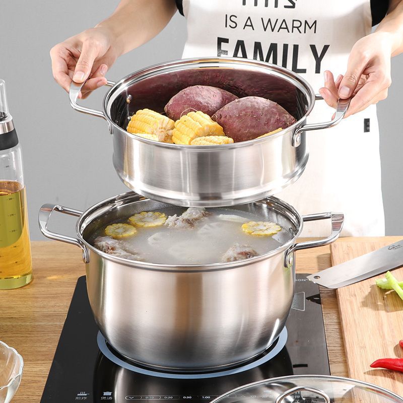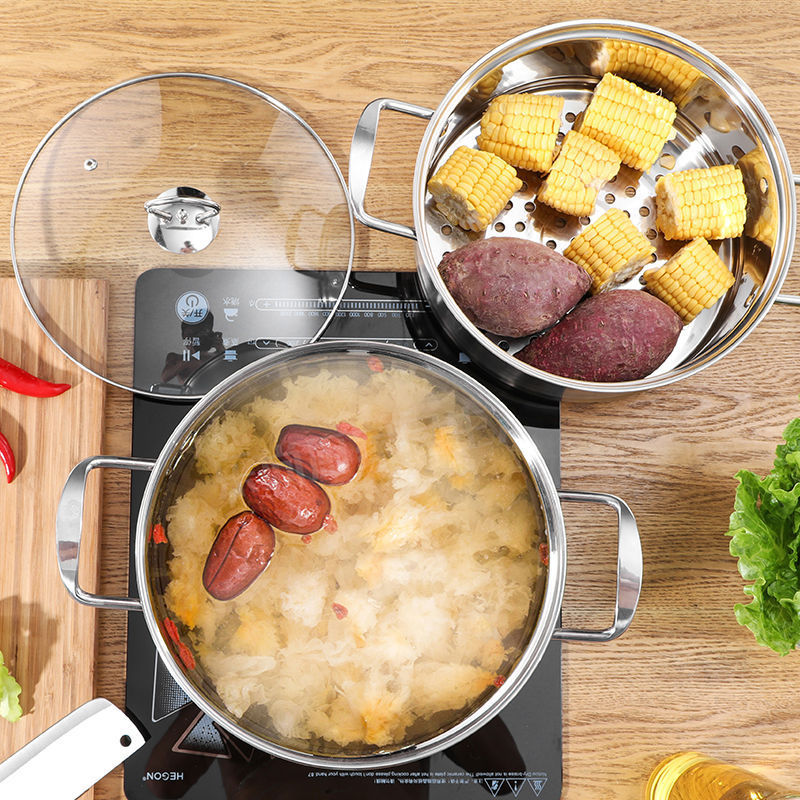 潮州互发不锈钢套装锅具批发复底跨境十件套小奶锅大容量煲汤锅