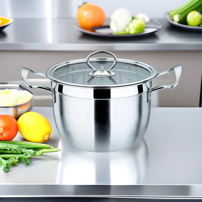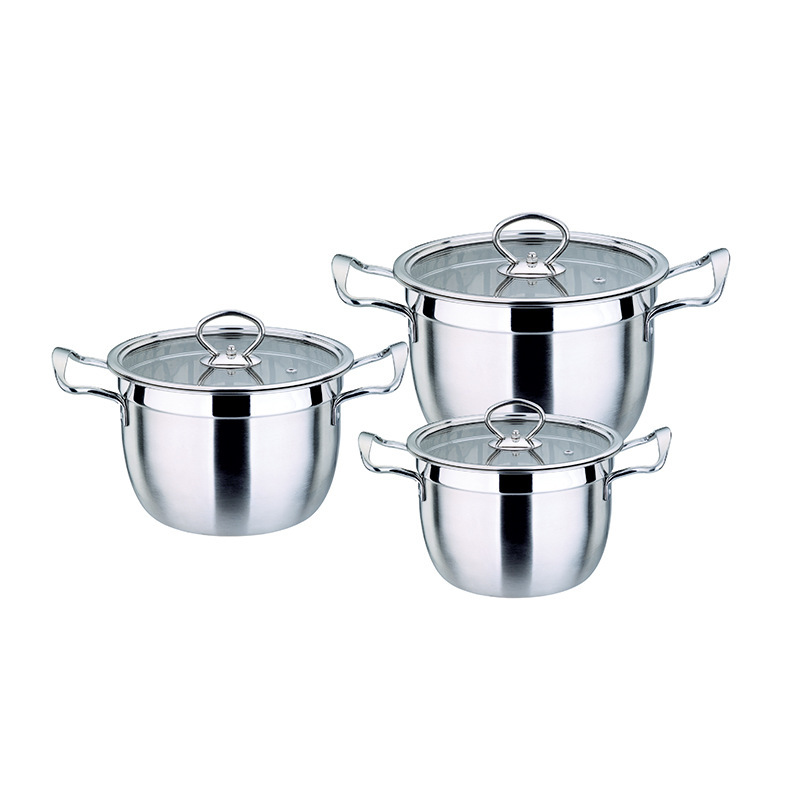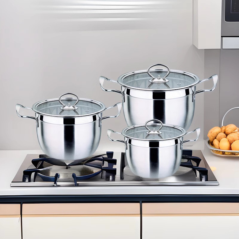潮州互发跨境加厚不锈钢套装锅具礼品批发6件套奶锅双耳复底汤锅