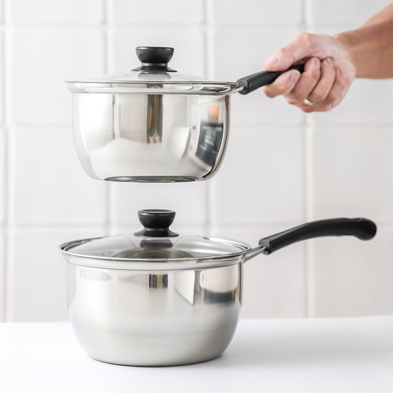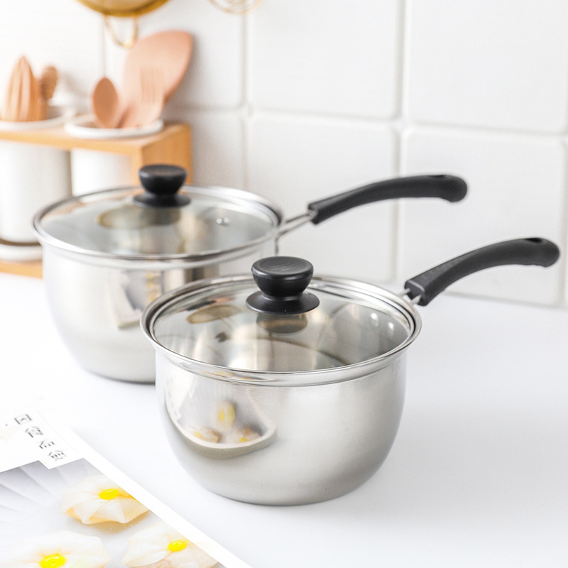 潮州互发 韩式单柄不锈钢套装奶锅 单柄奶蒸锅 辅食奶锅煲汤锅具