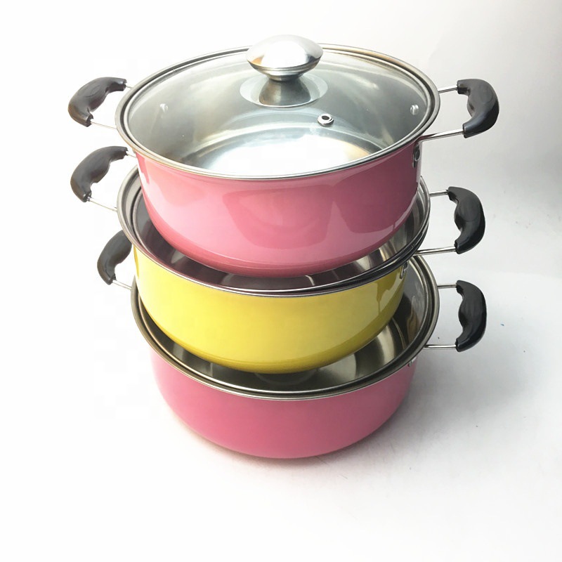 潮州互发三件套奶锅彩色家用一件不锈钢汤锅套装厂家批厨房用品