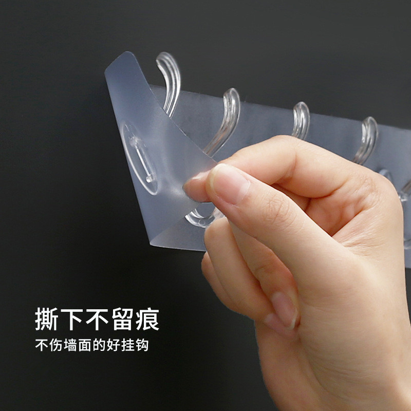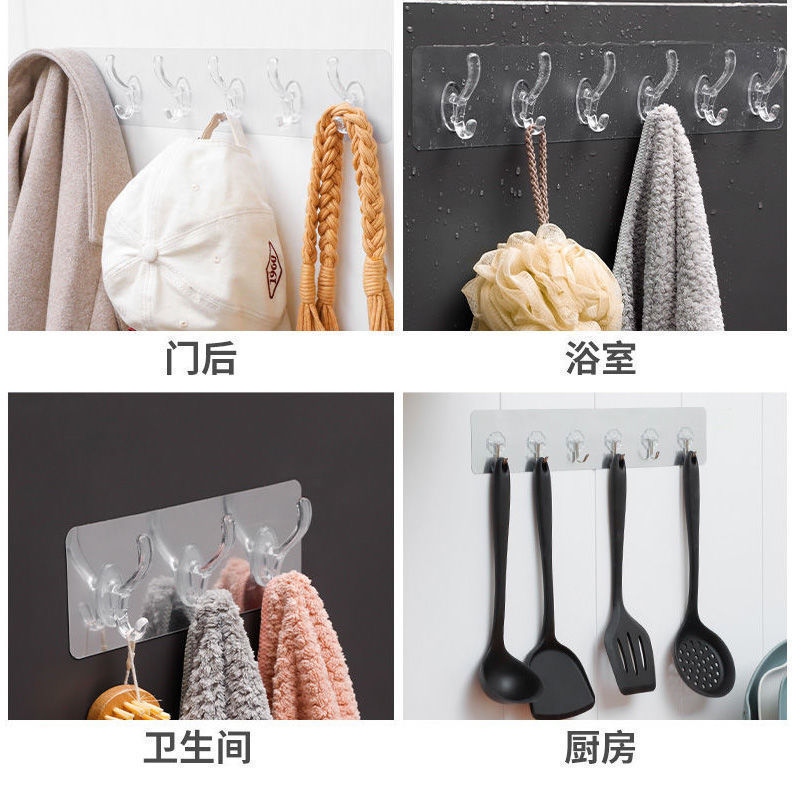 免打孔联排衣钩六联三联排挂钩 无痕透明粘钩6连排衣帽钩现货批发