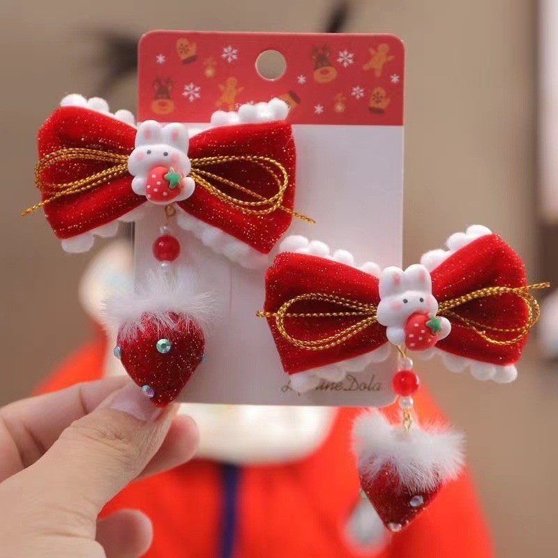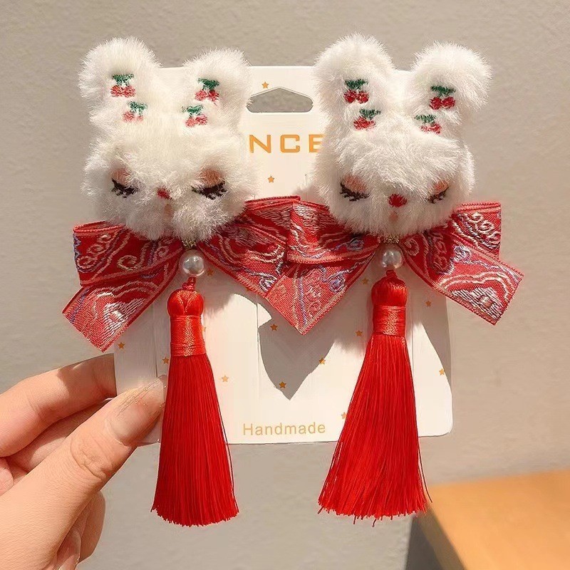 醒狮流苏新年发夹可爱毛绒头饰边夹后脑勺夹子汉服日常配饰红色