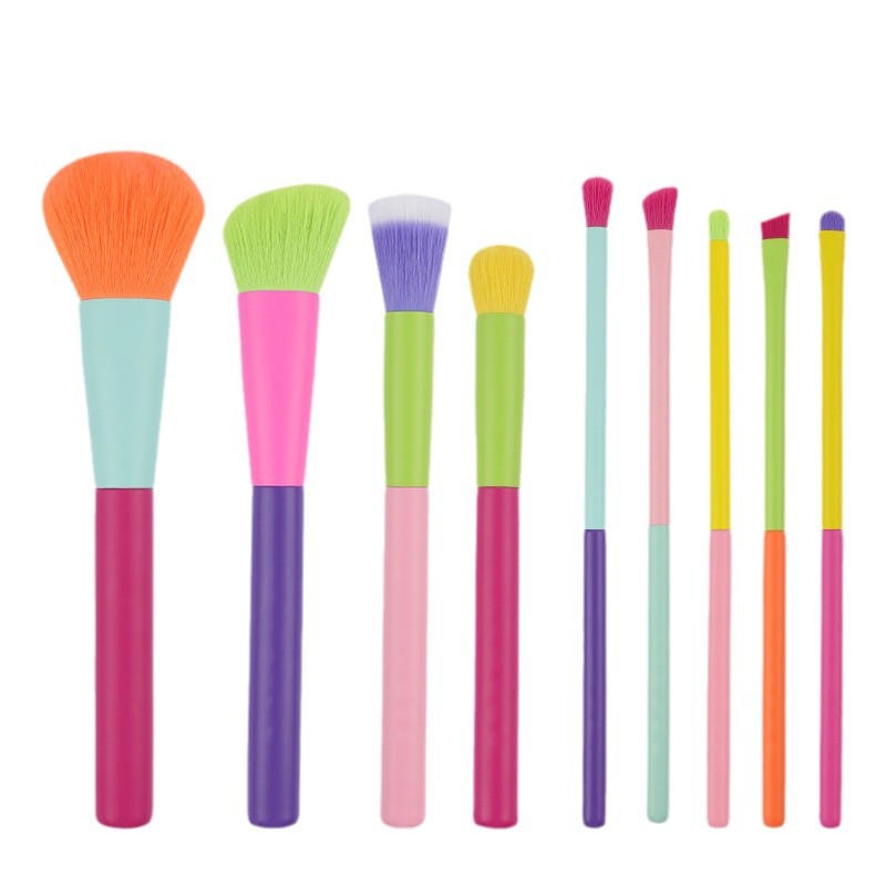 跨境爆款定制9支马卡龙色系软毛化妆刷套装全套便携美妆工具批发