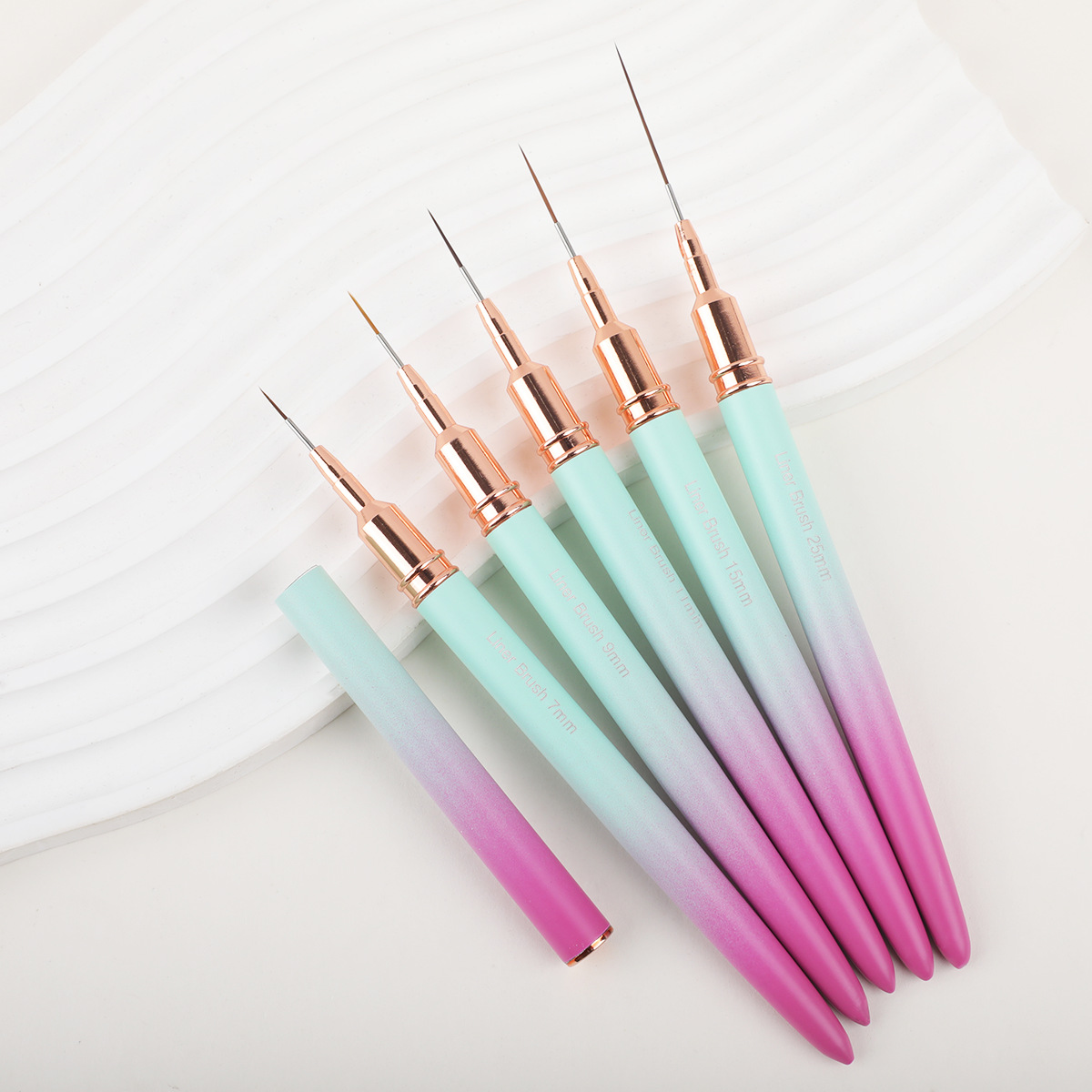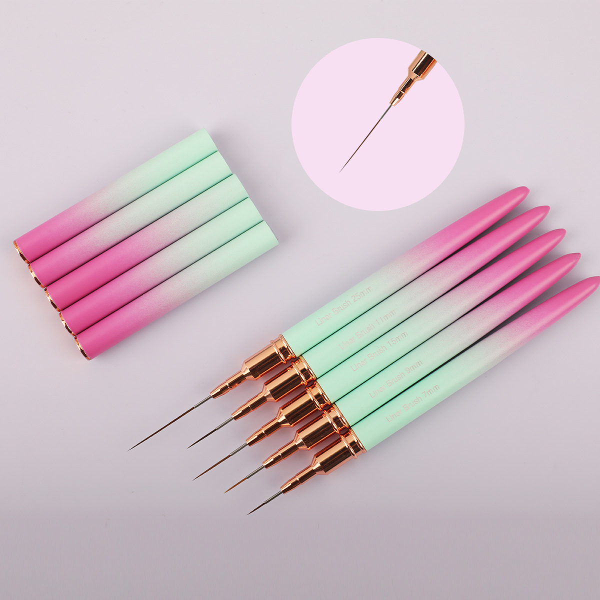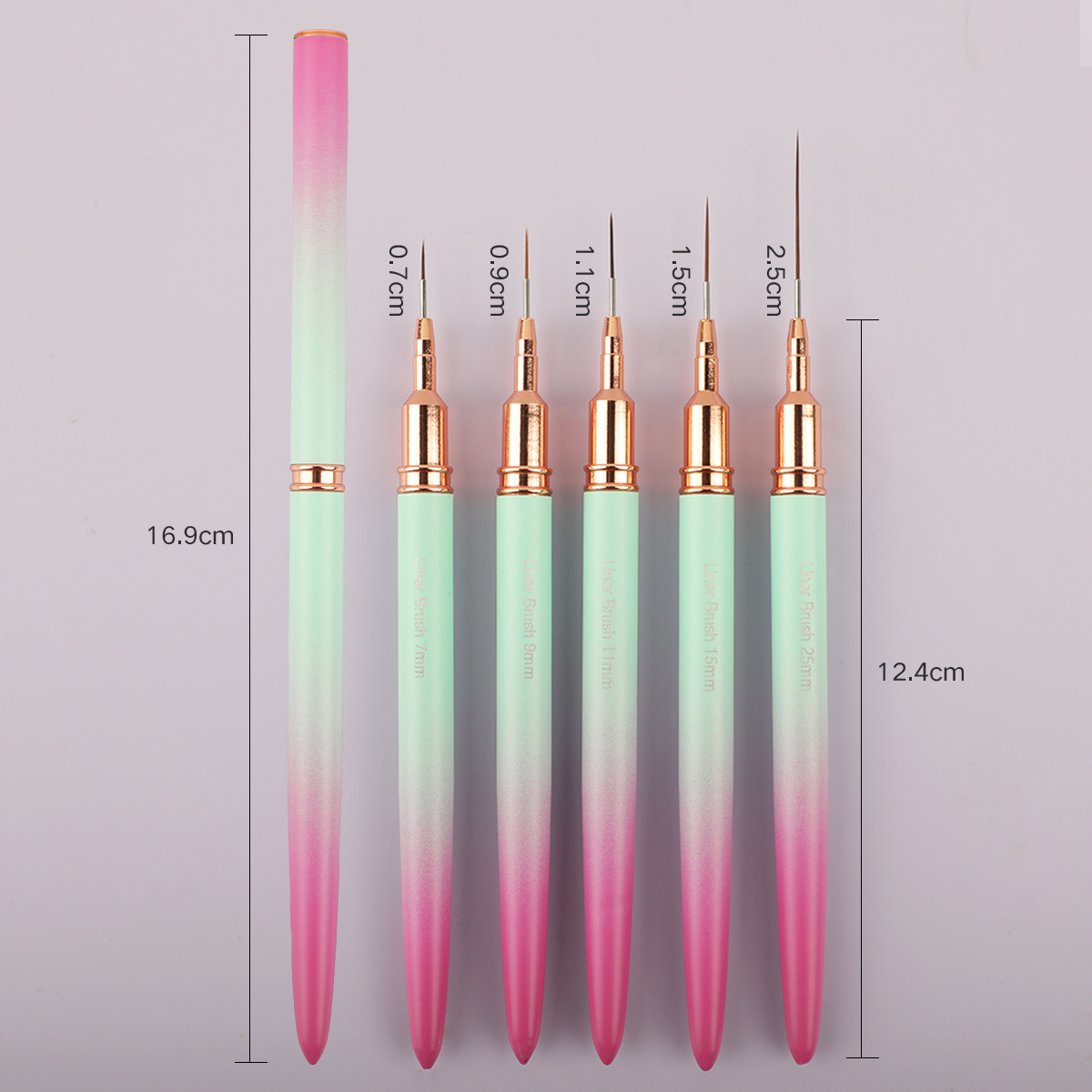 工厂批发跨境新款5支拉线笔细毛渐变金属画花彩绘拉线工具美甲笔