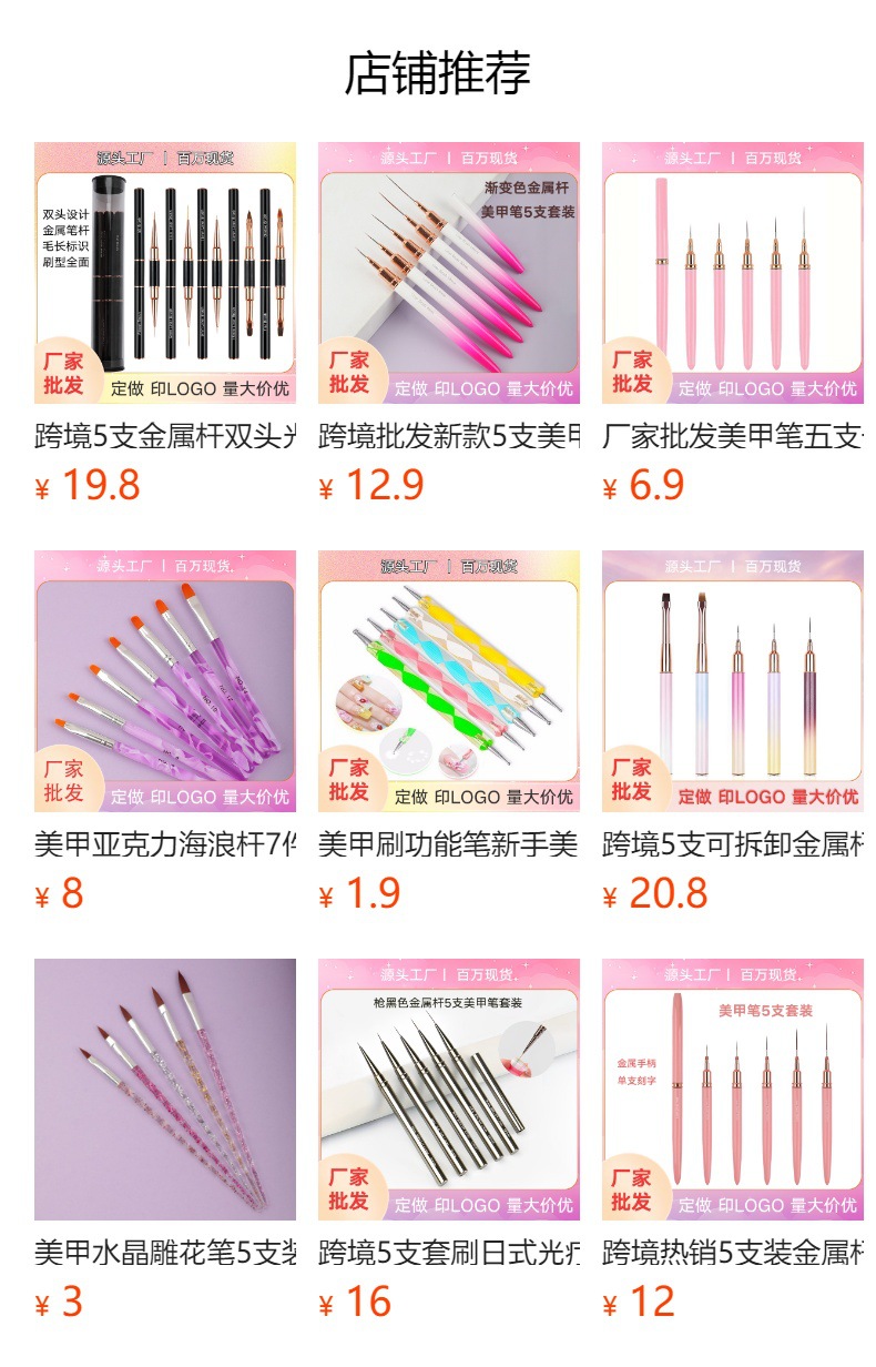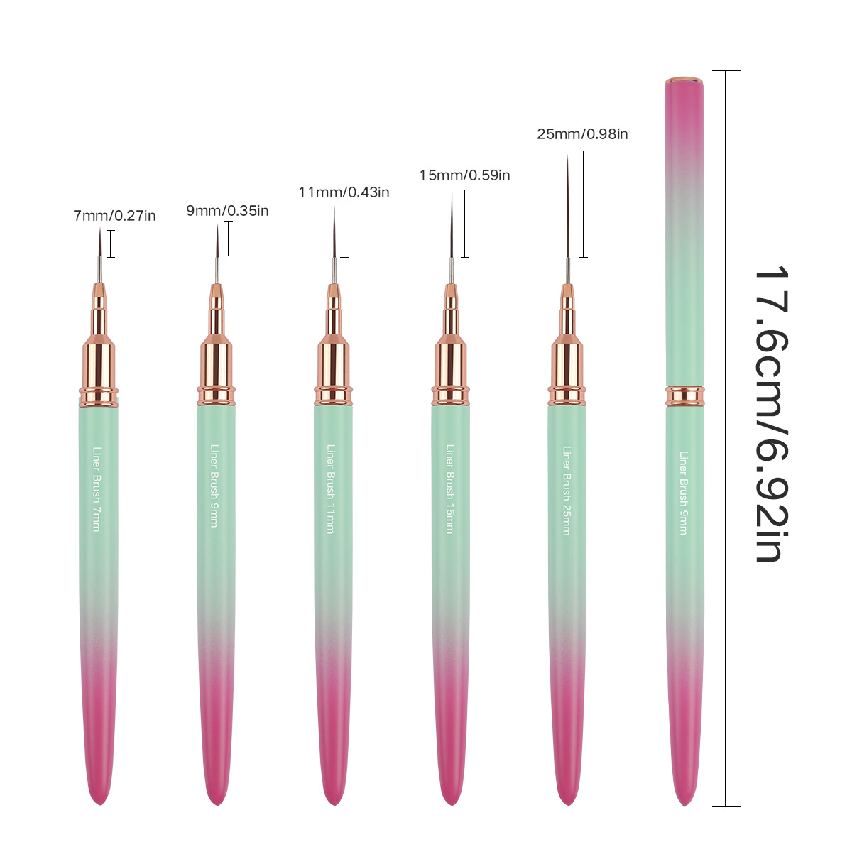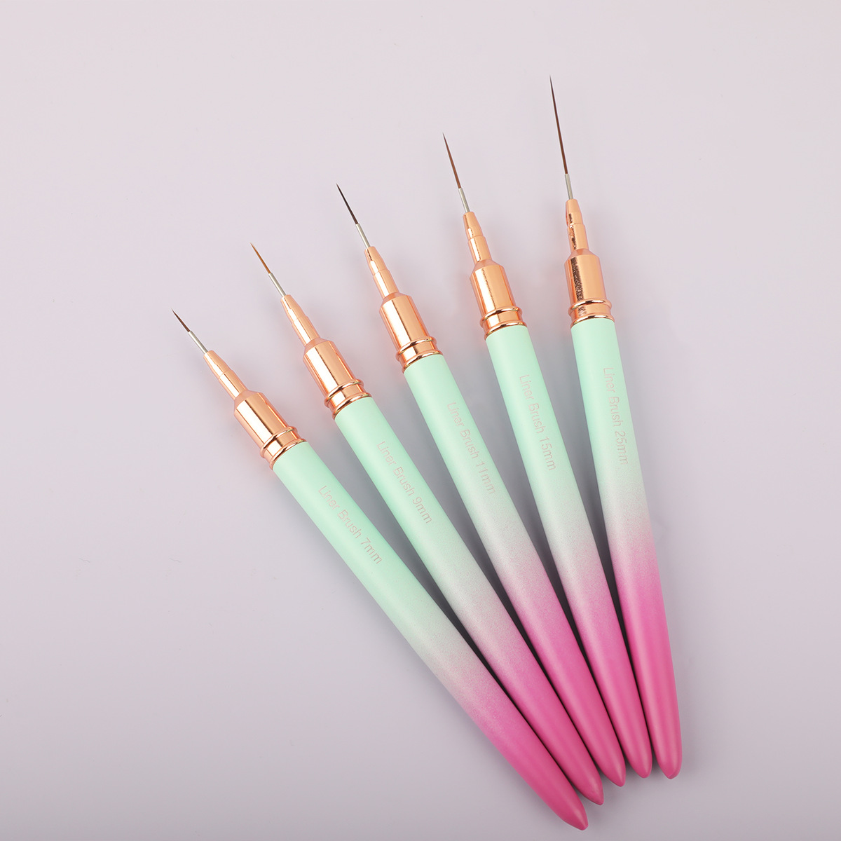工厂批发跨境新款5支拉线笔细毛渐变金属画花彩绘拉线工具美甲笔