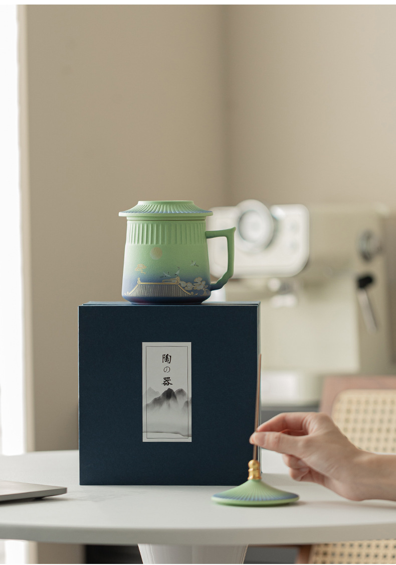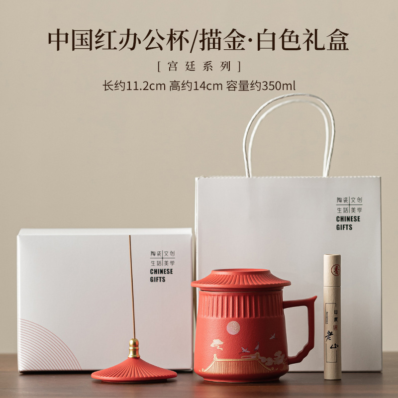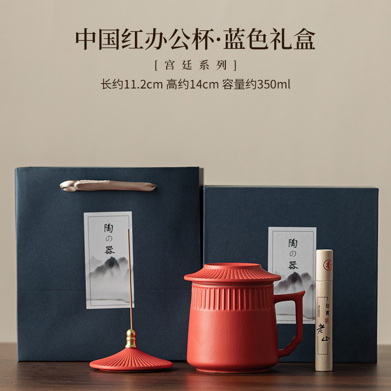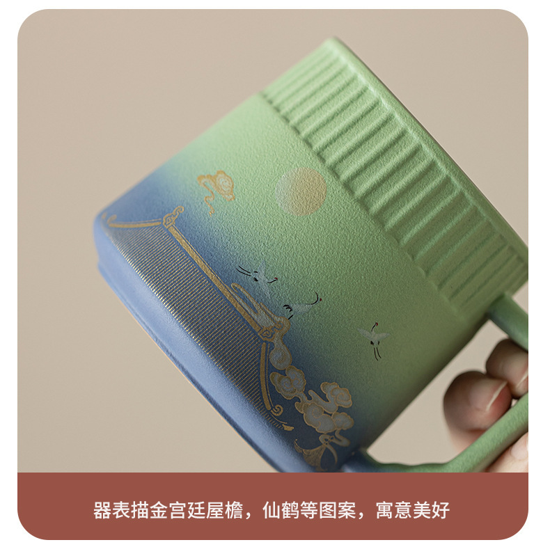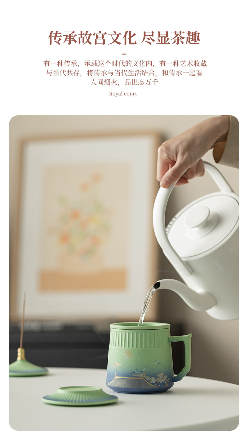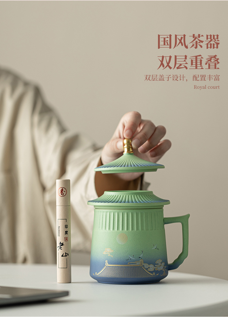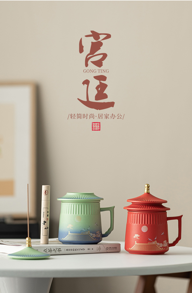 故宫文创粗陶国潮茶杯茶水分离办公室茶杯个人专用带盖泡茶水杯伴