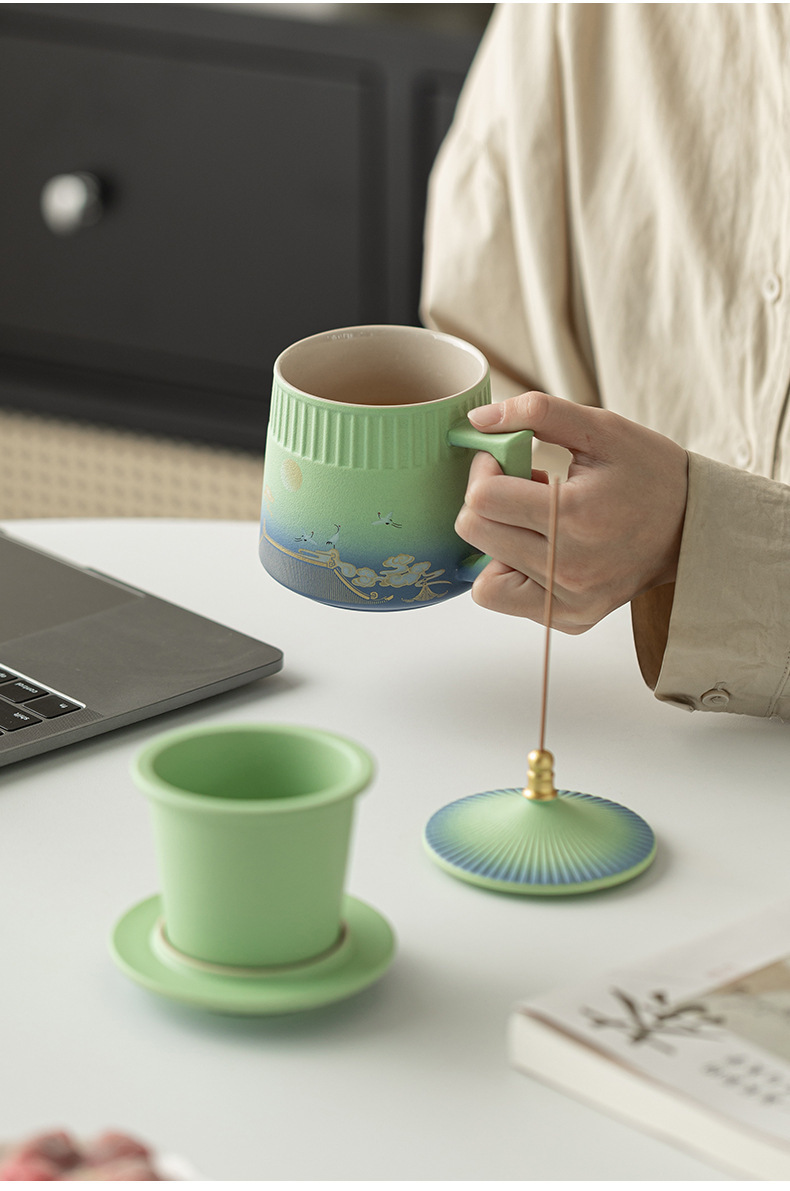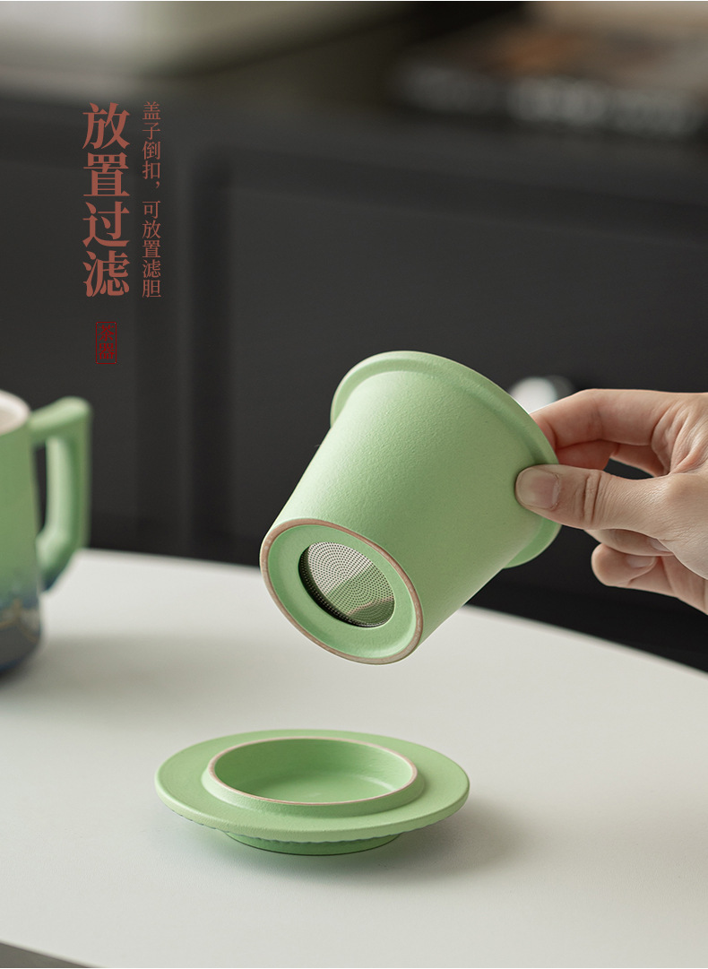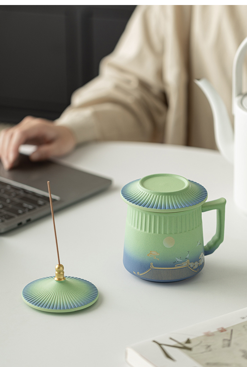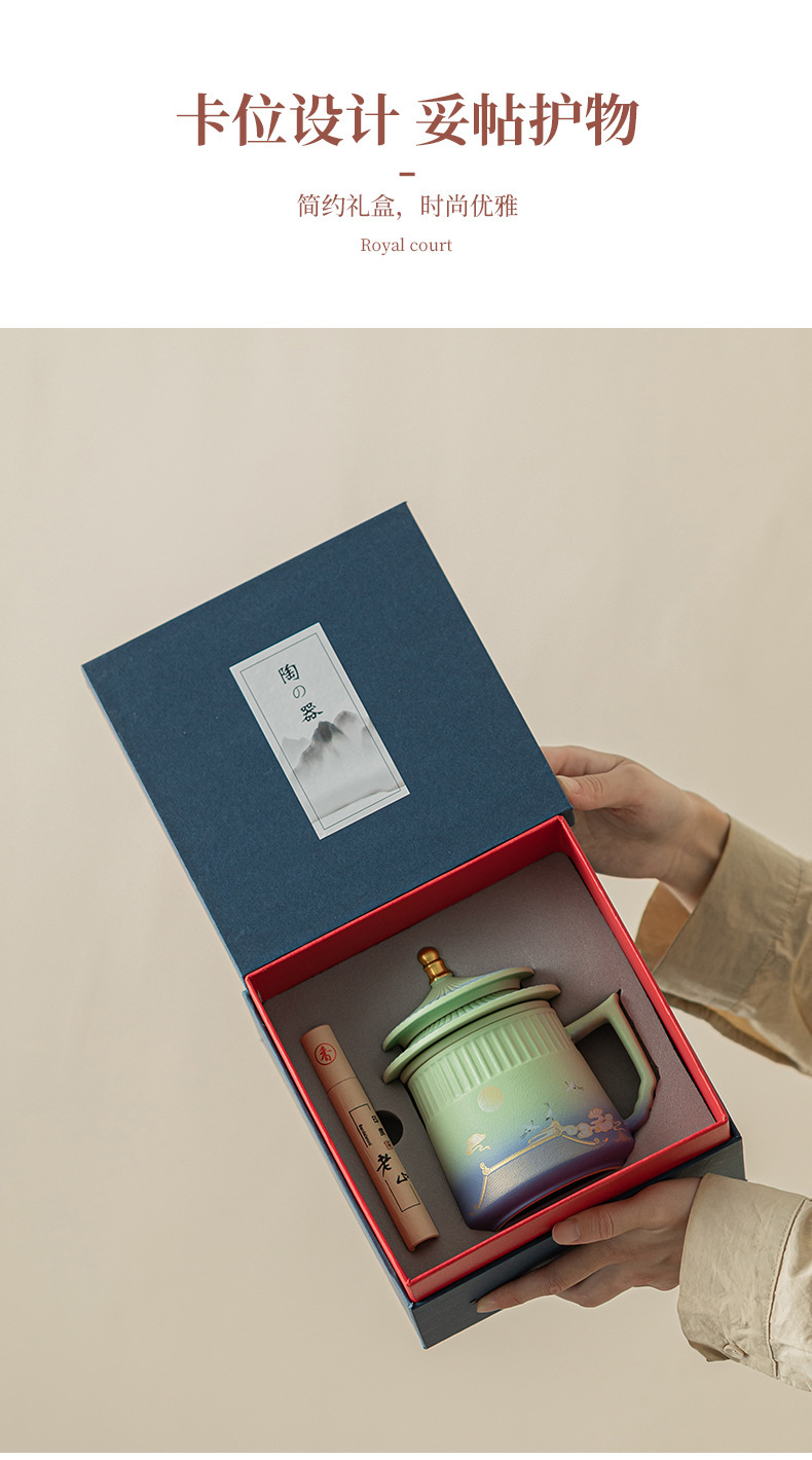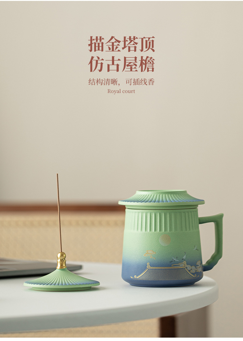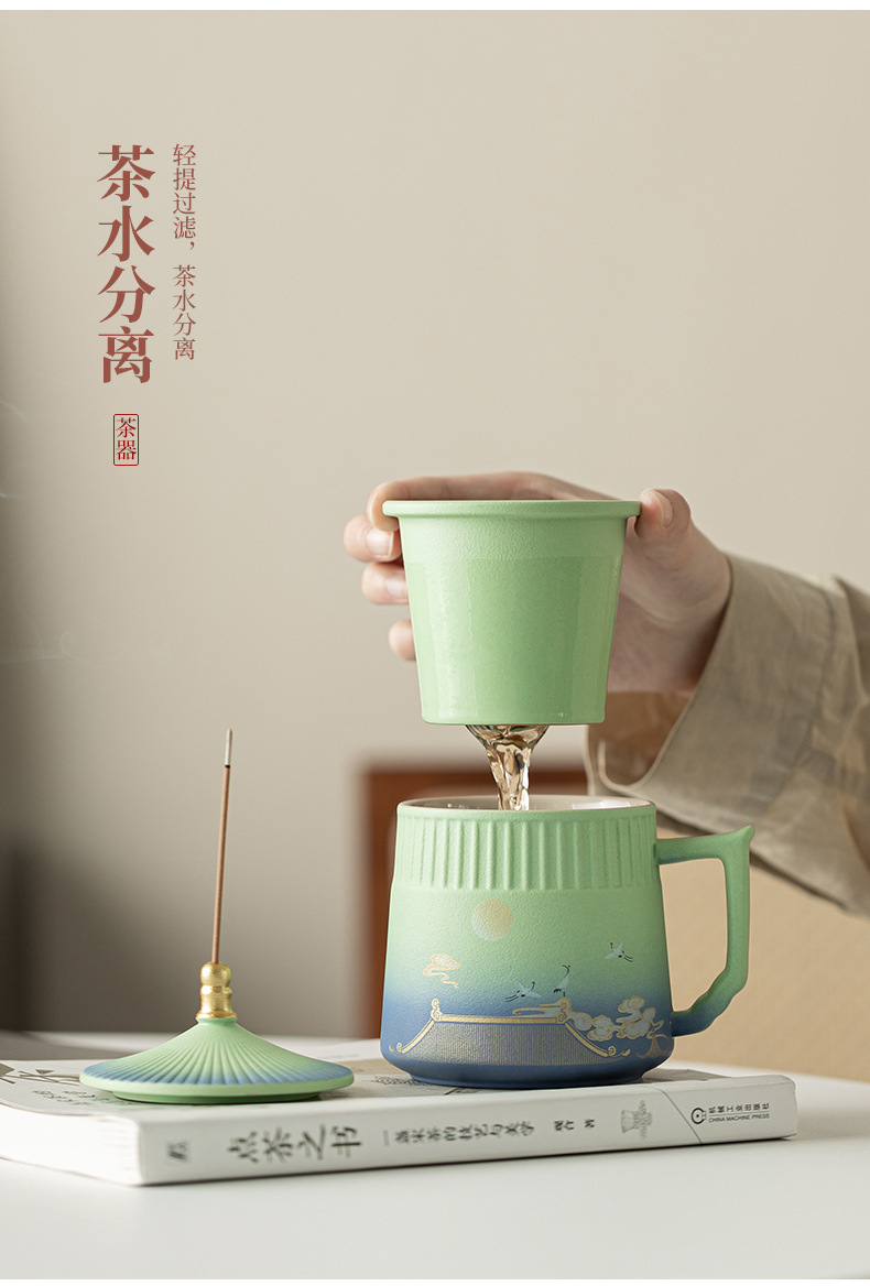 故宫文创粗陶国潮茶杯茶水分离办公室茶杯个人专用带盖泡茶水杯伴