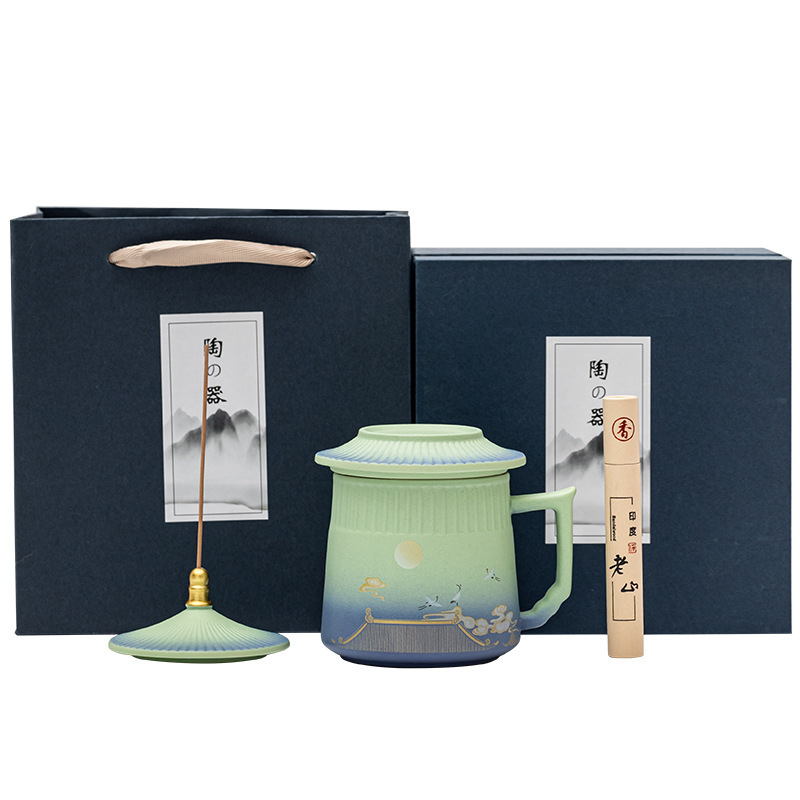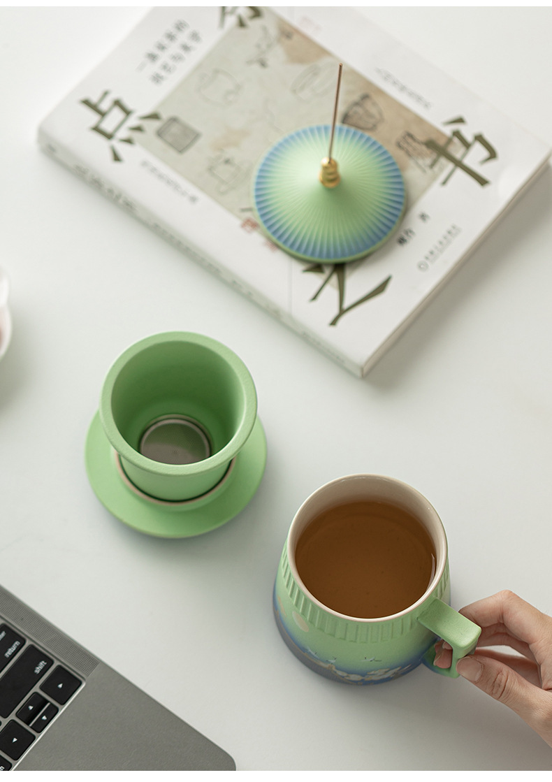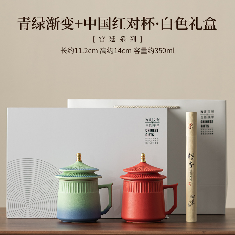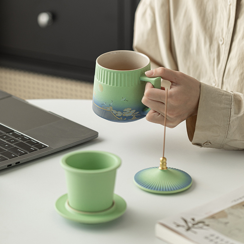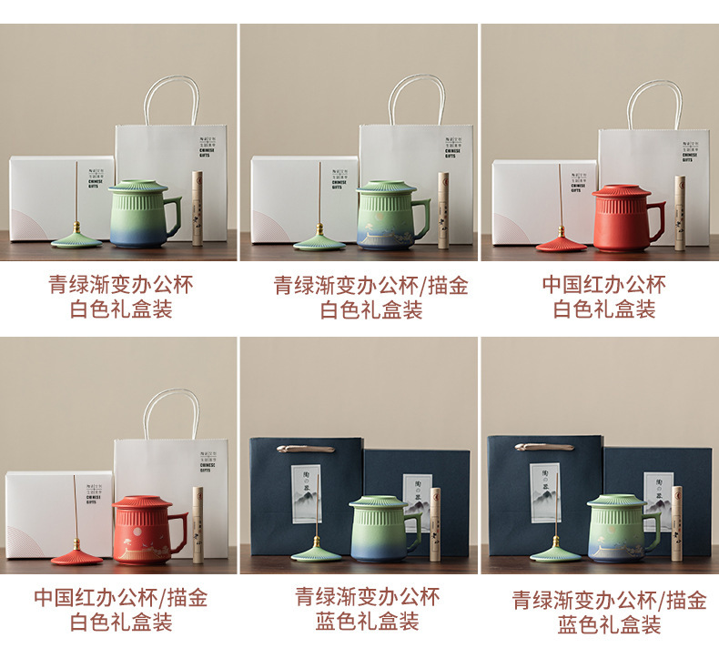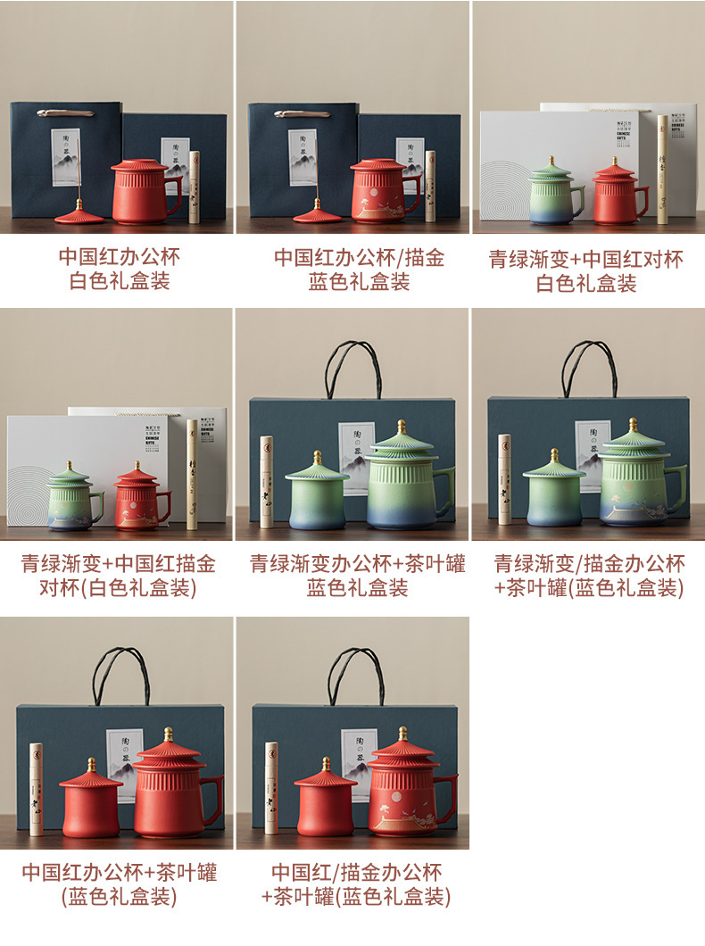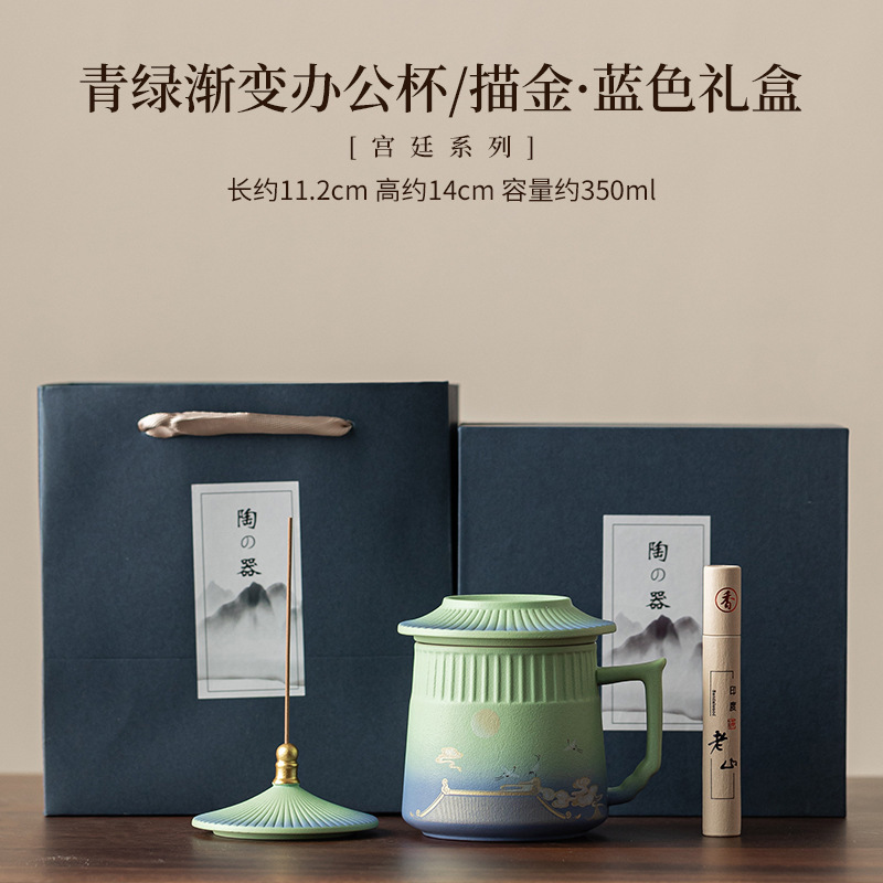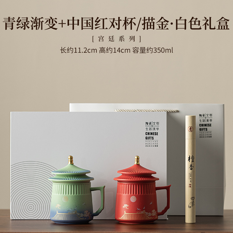 故宫文创粗陶国潮茶杯茶水分离办公室茶杯个人专用带盖泡茶水杯伴