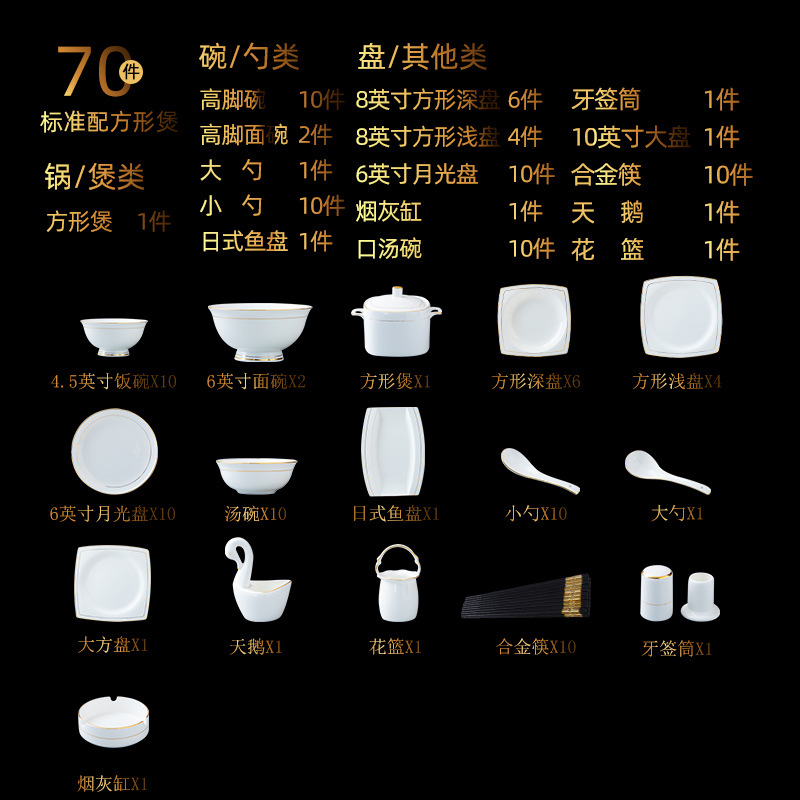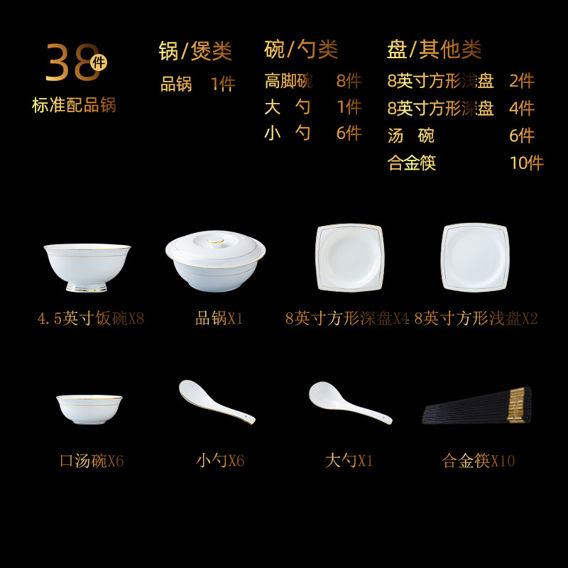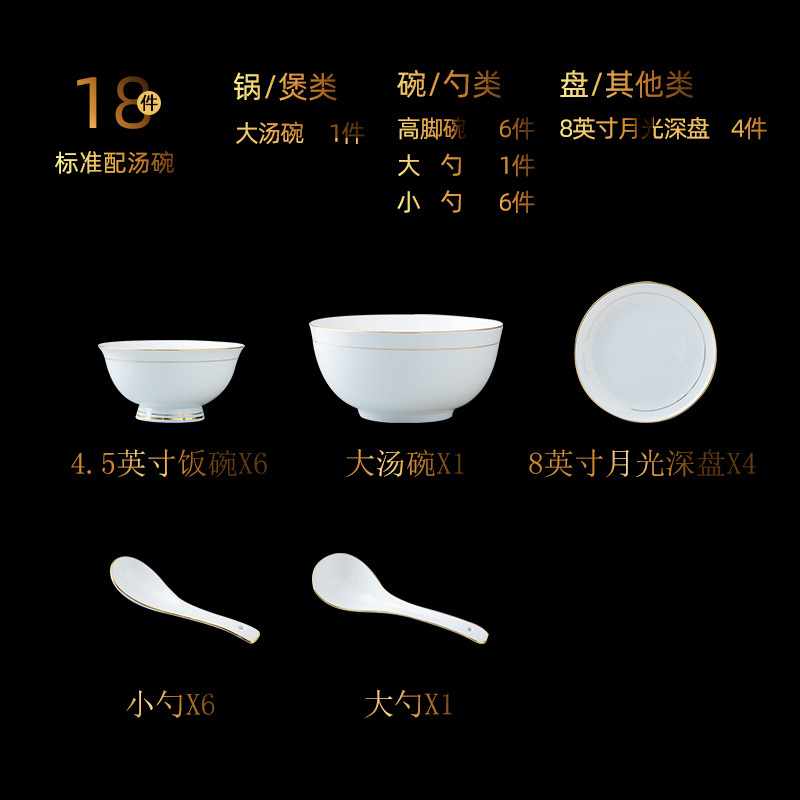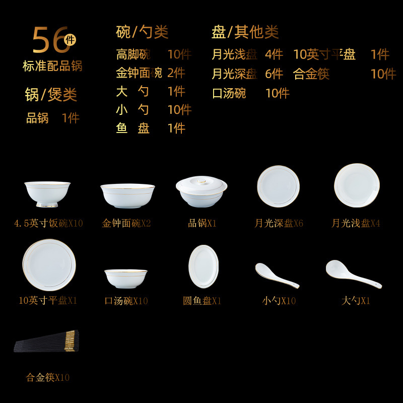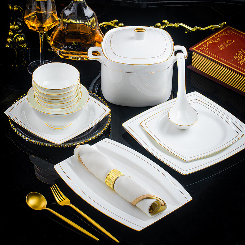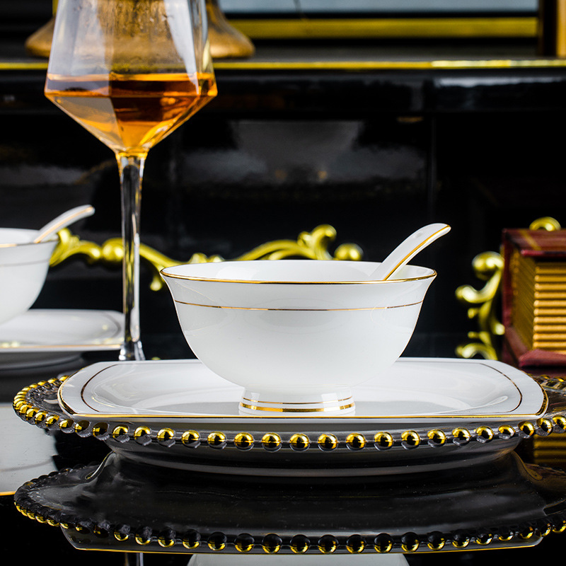 陶瓷碗碟套装家用景德镇欧式骨瓷餐具金边碗盘全套装乔迁礼品批发