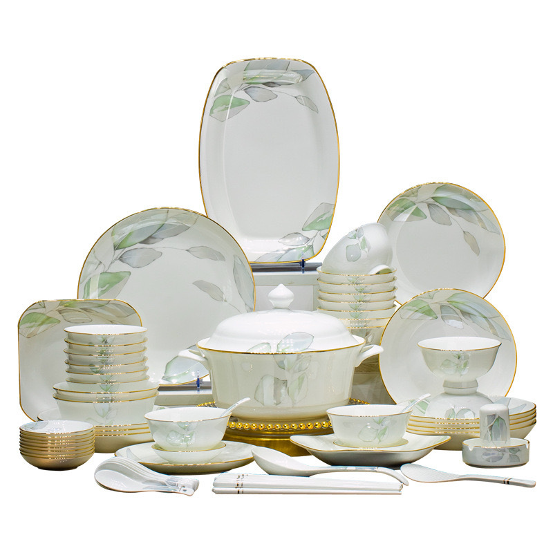 景德镇欧式家用碗具全套 春之意新款陶瓷碗碟盘子套装骨瓷碗筷DIY