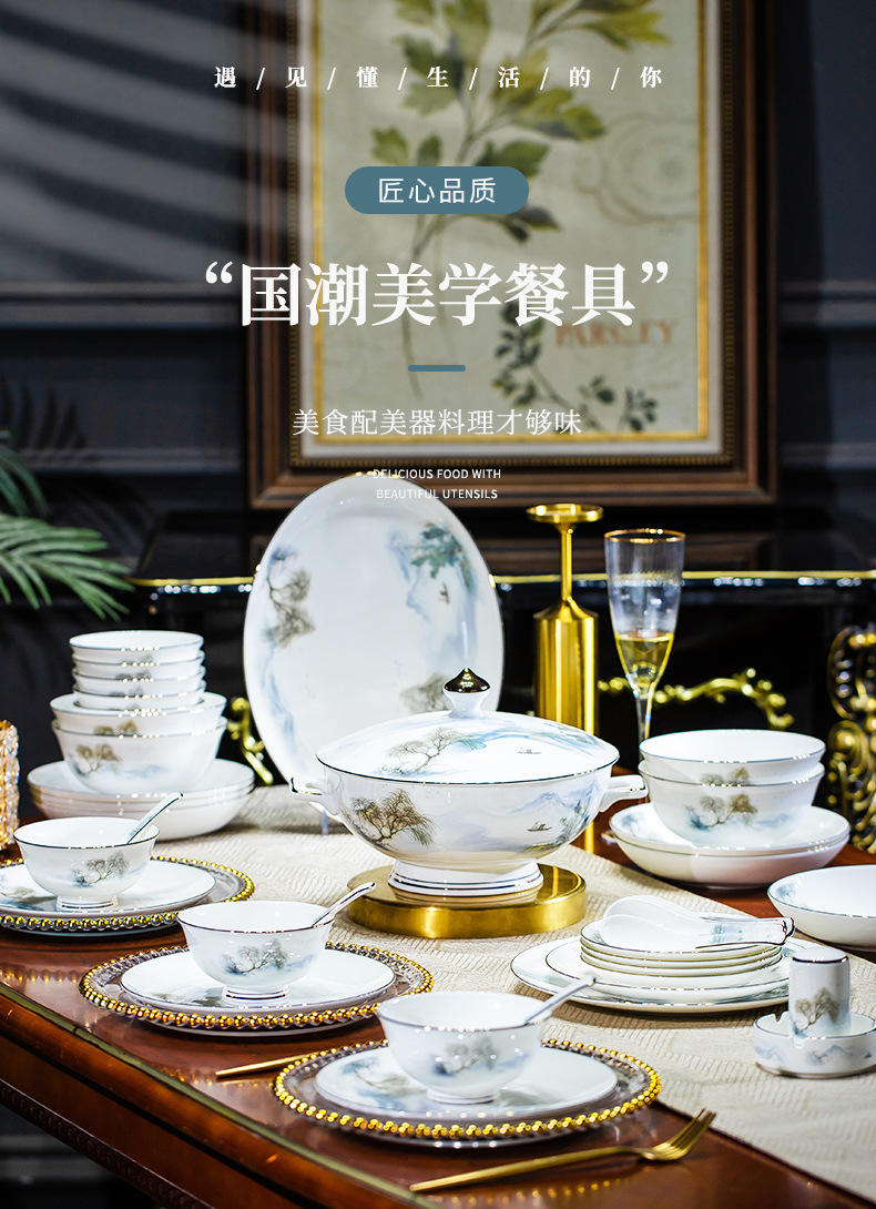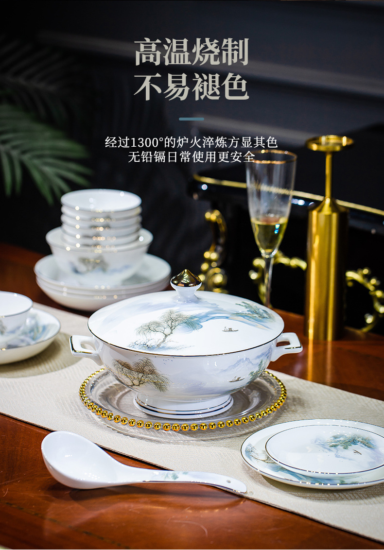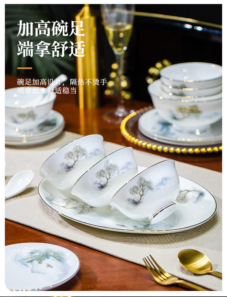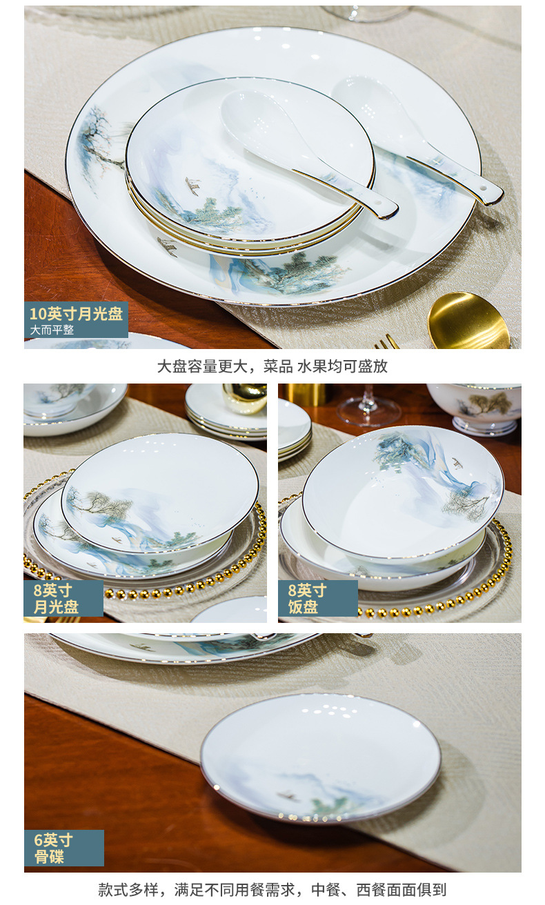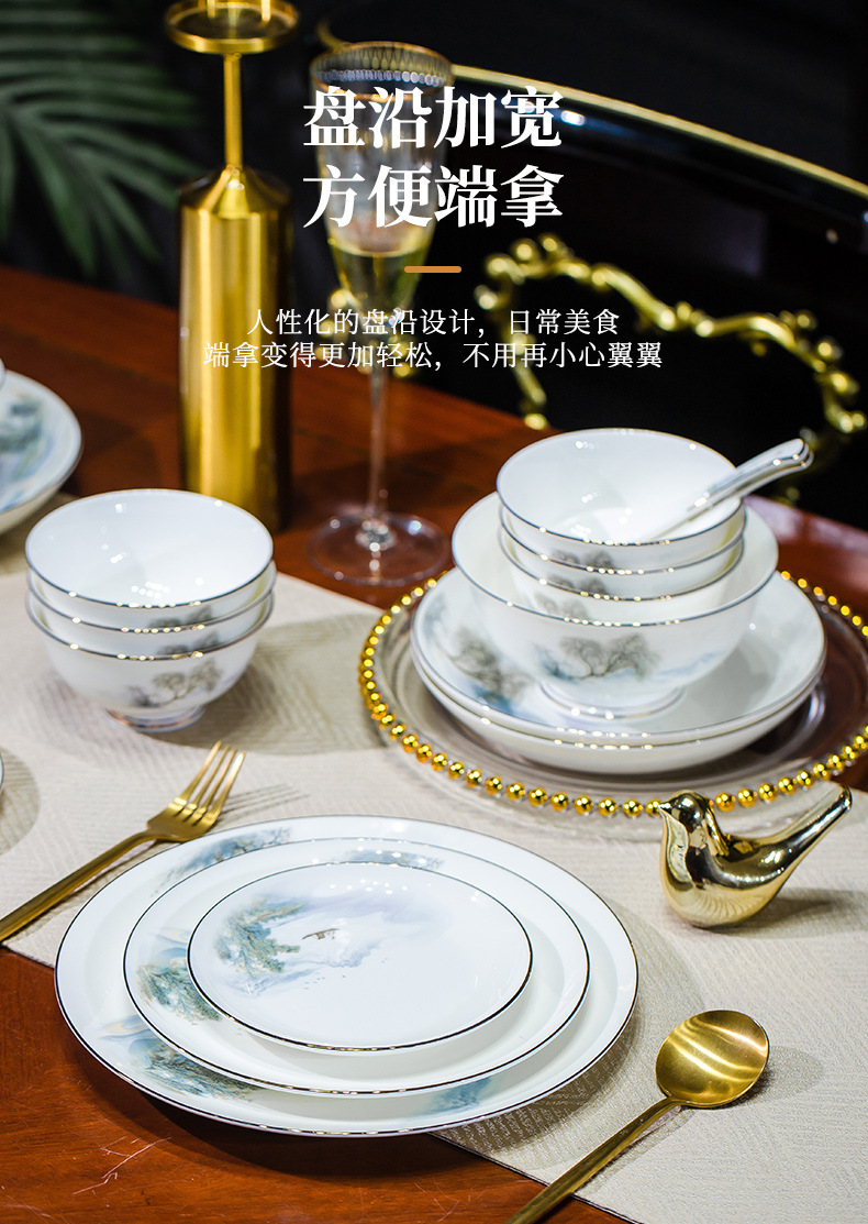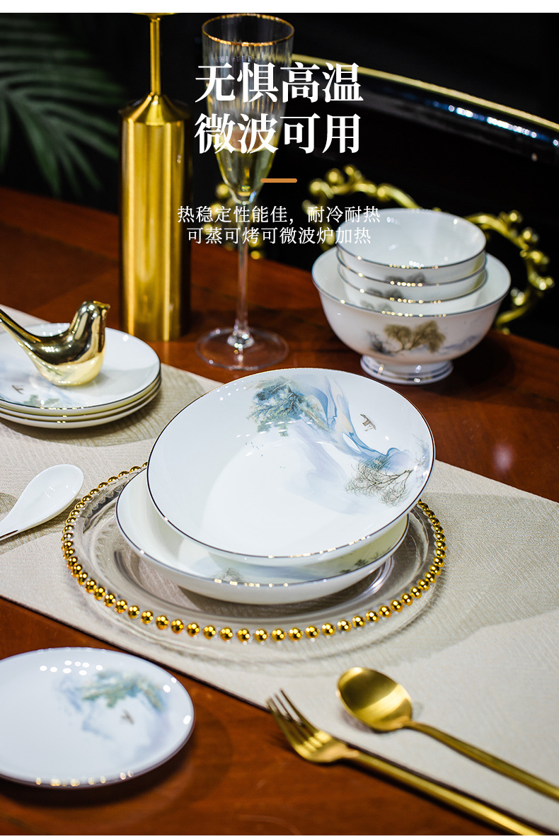 餐具套装碗盘碟子景德镇骨瓷轻奢中式陶瓷碗具家用套装碗礼品组合
