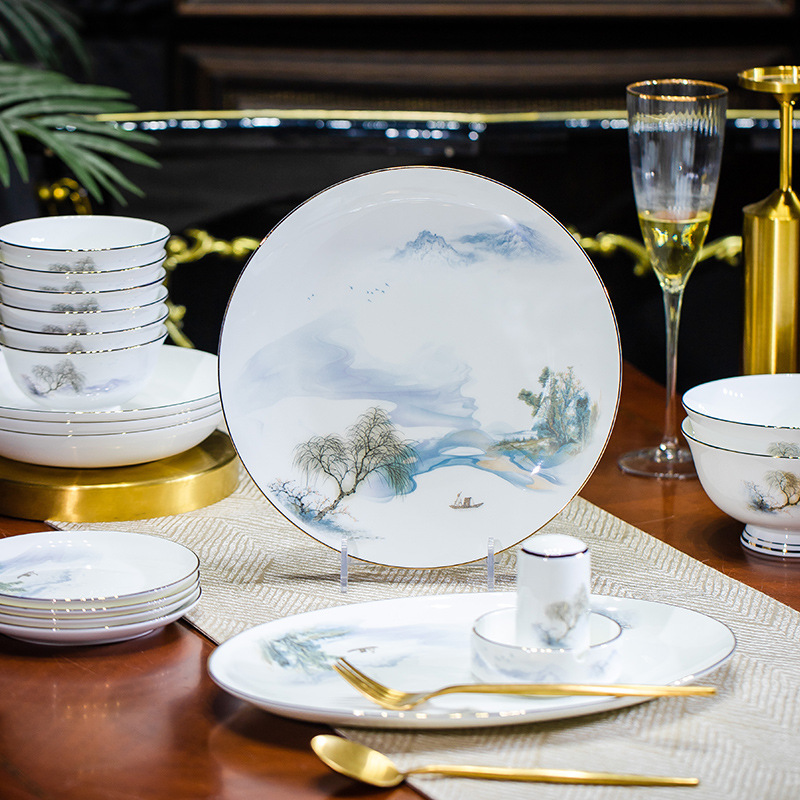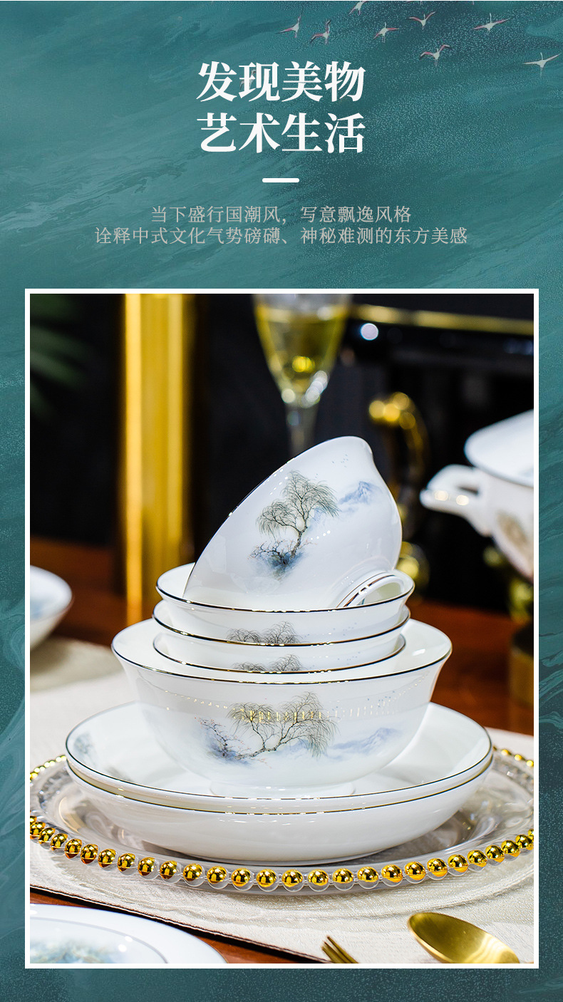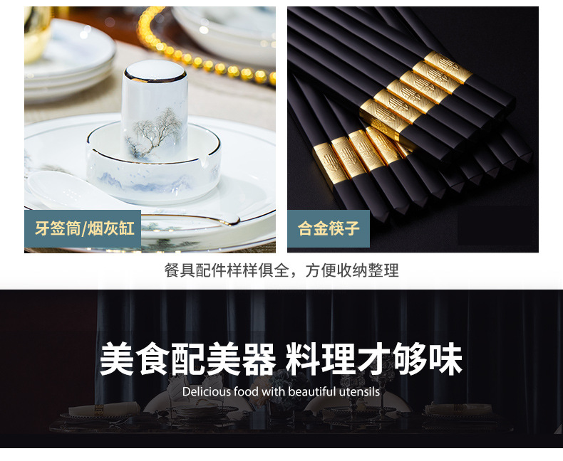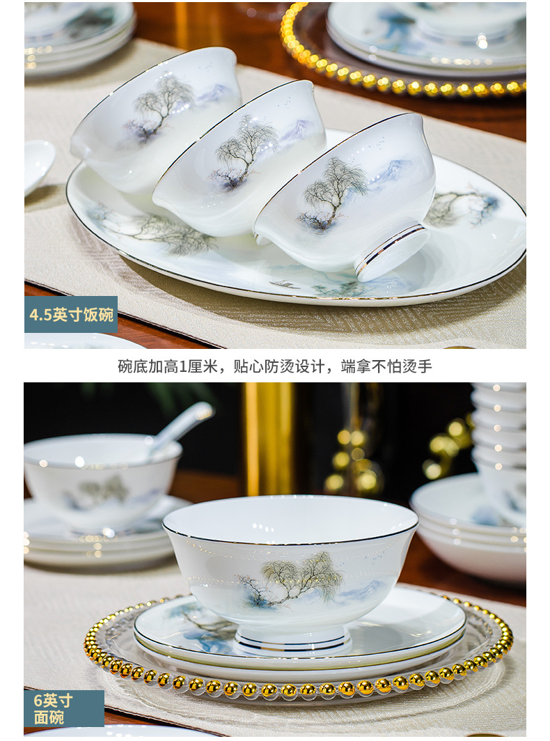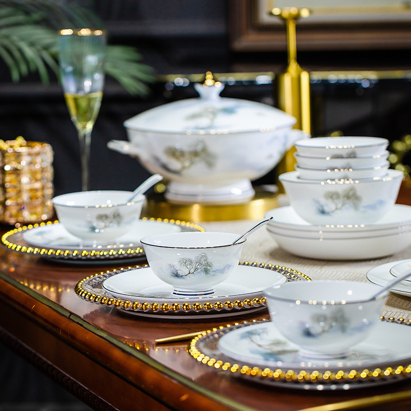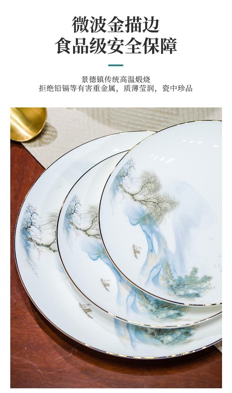餐具套装碗盘碟子景德镇骨瓷轻奢中式陶瓷碗具家用套装碗礼品组合