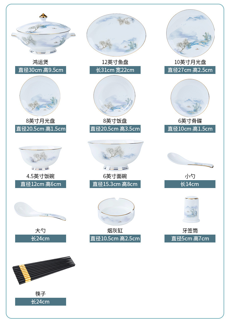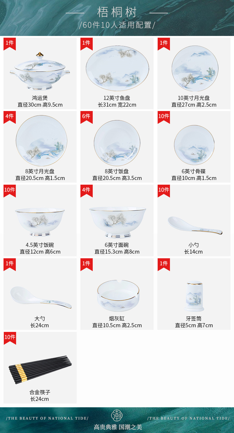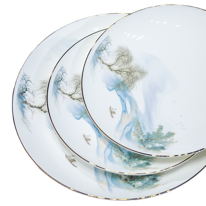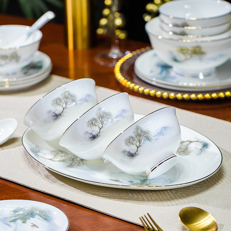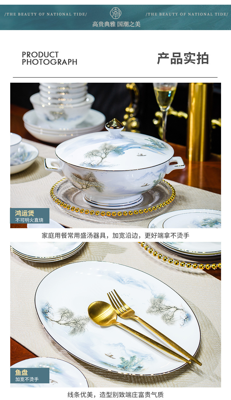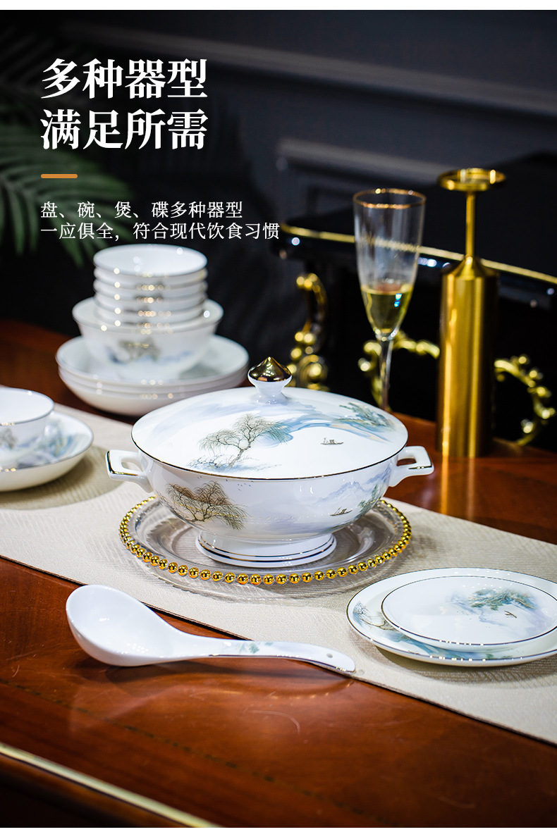 餐具套装碗盘碟子景德镇骨瓷轻奢中式陶瓷碗具家用套装碗礼品组合