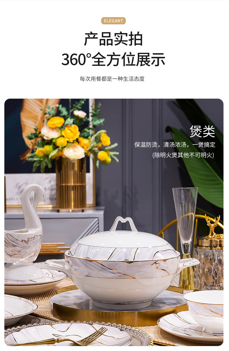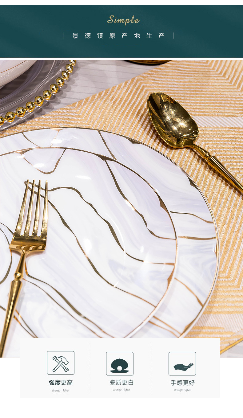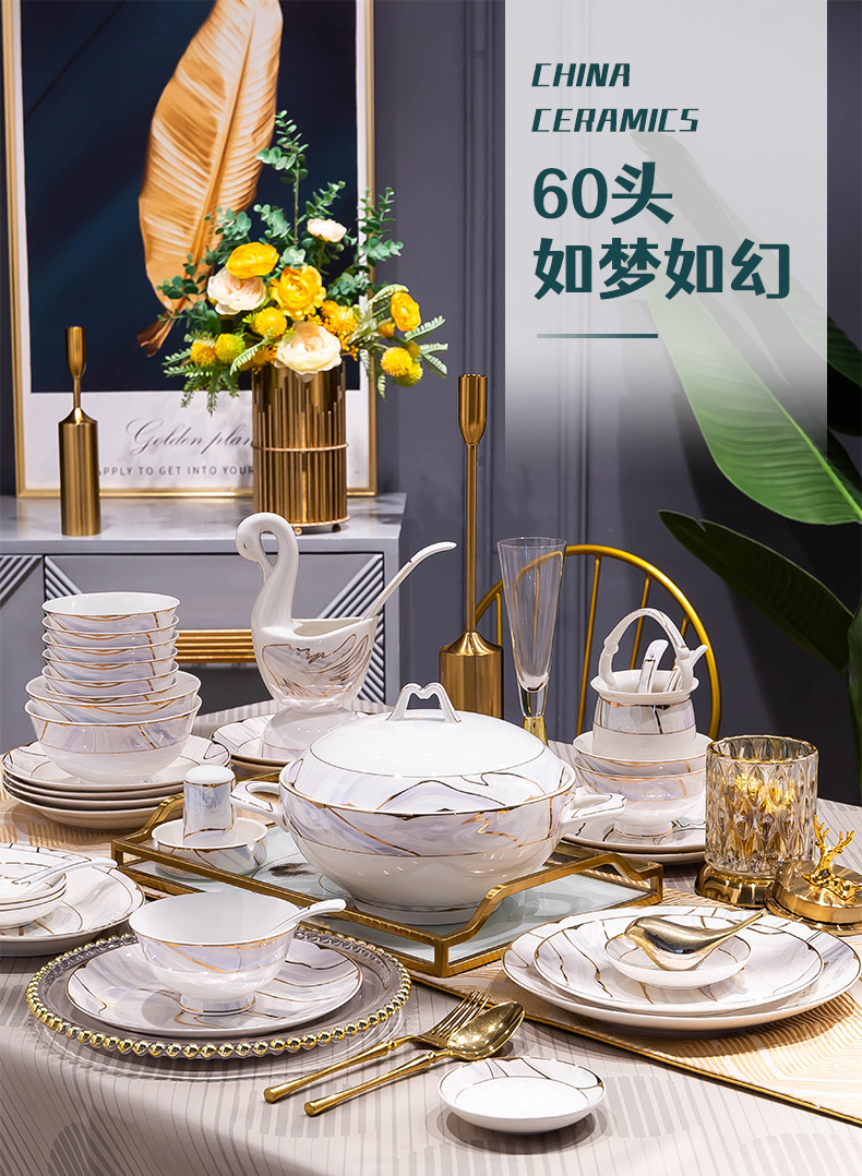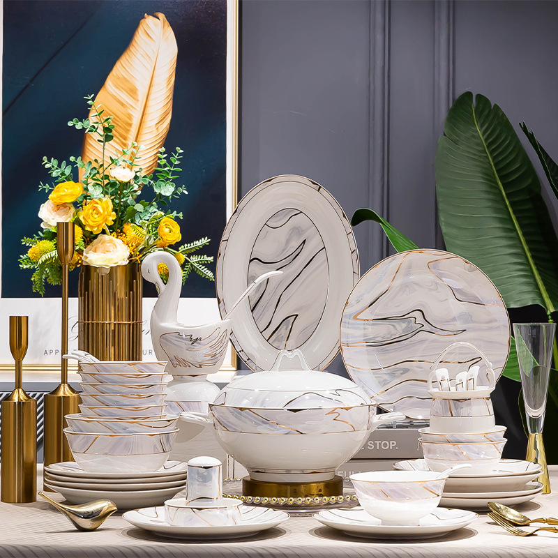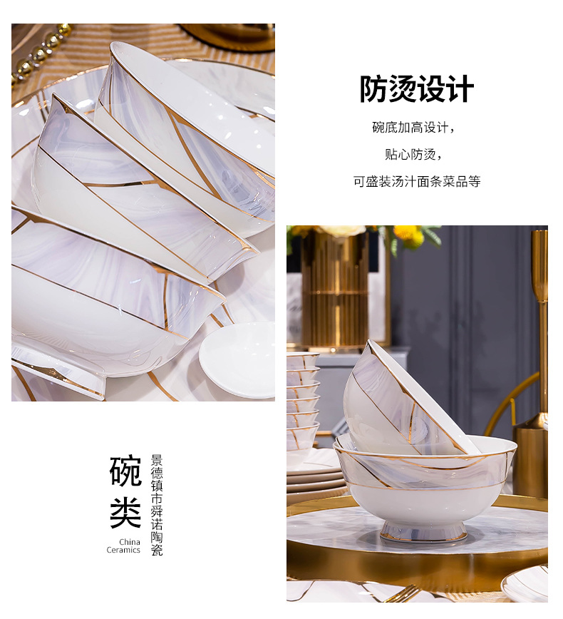 景德镇陶瓷餐具套装家用高档轻奢骨瓷碗碟盘勺送礼佳品礼盒装批发
