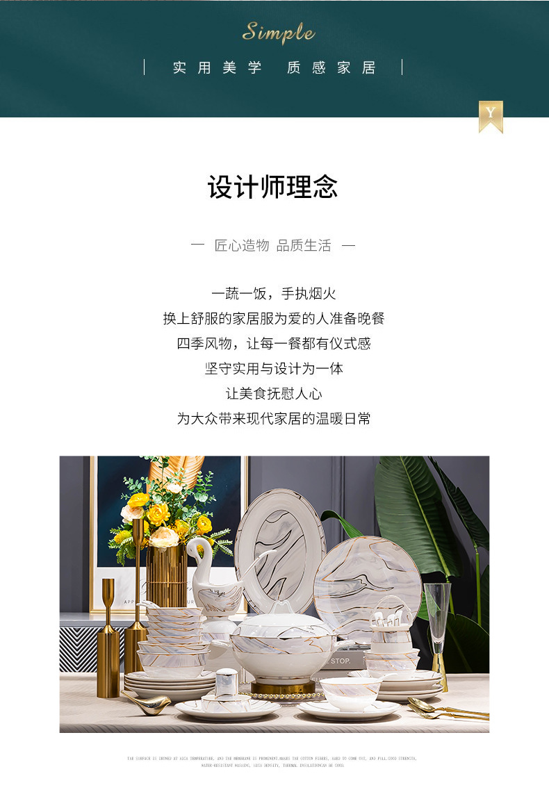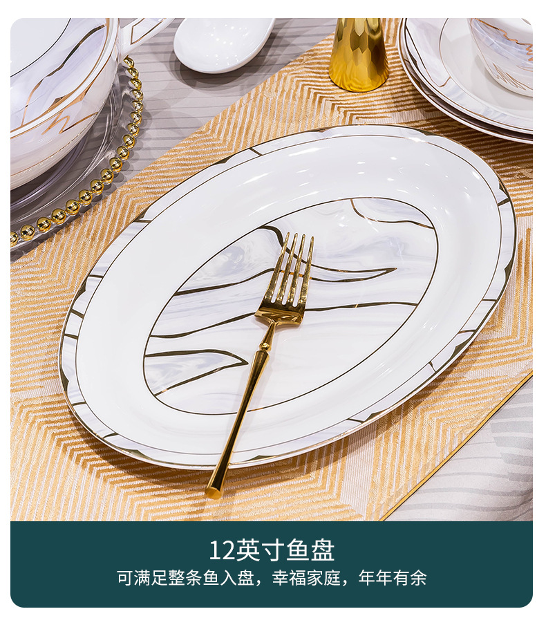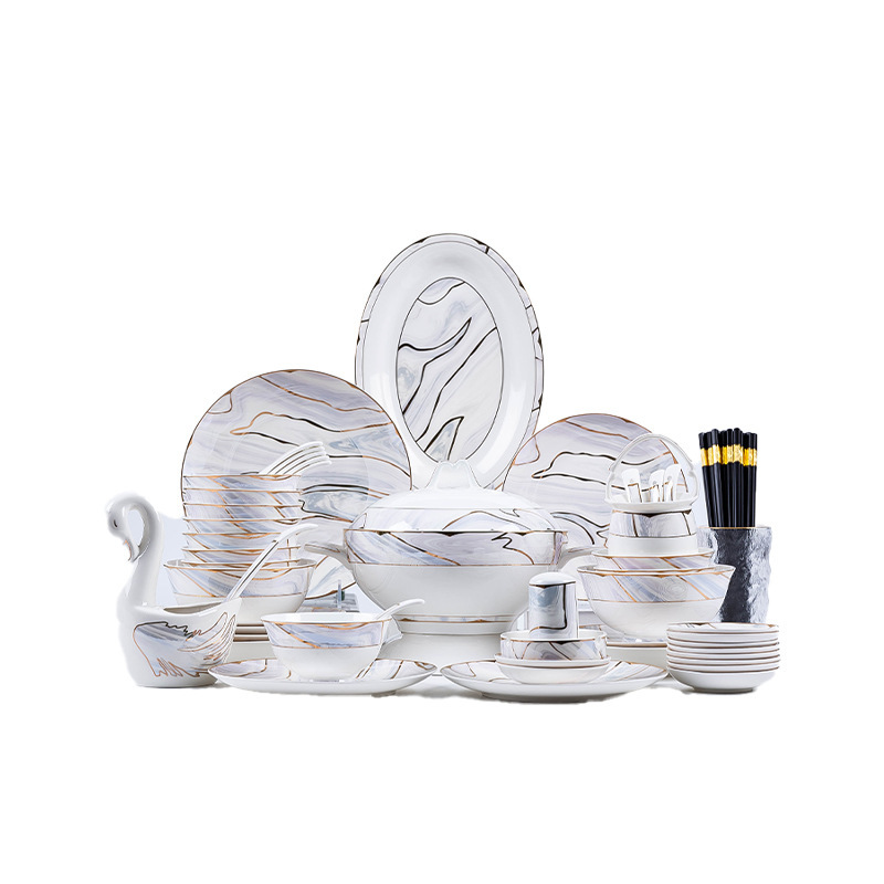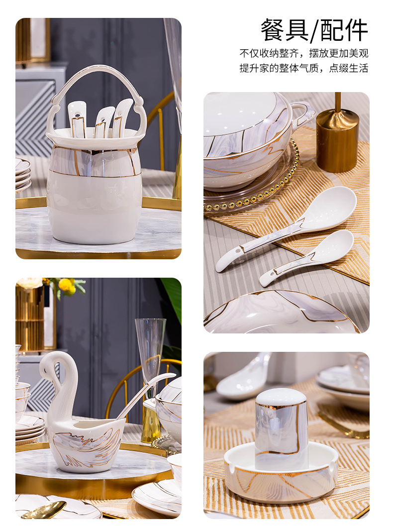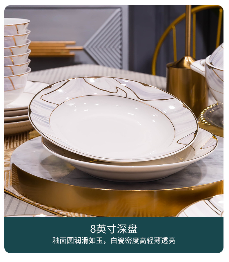景德镇陶瓷餐具套装家用高档轻奢骨瓷碗碟盘勺送礼佳品礼盒装批发