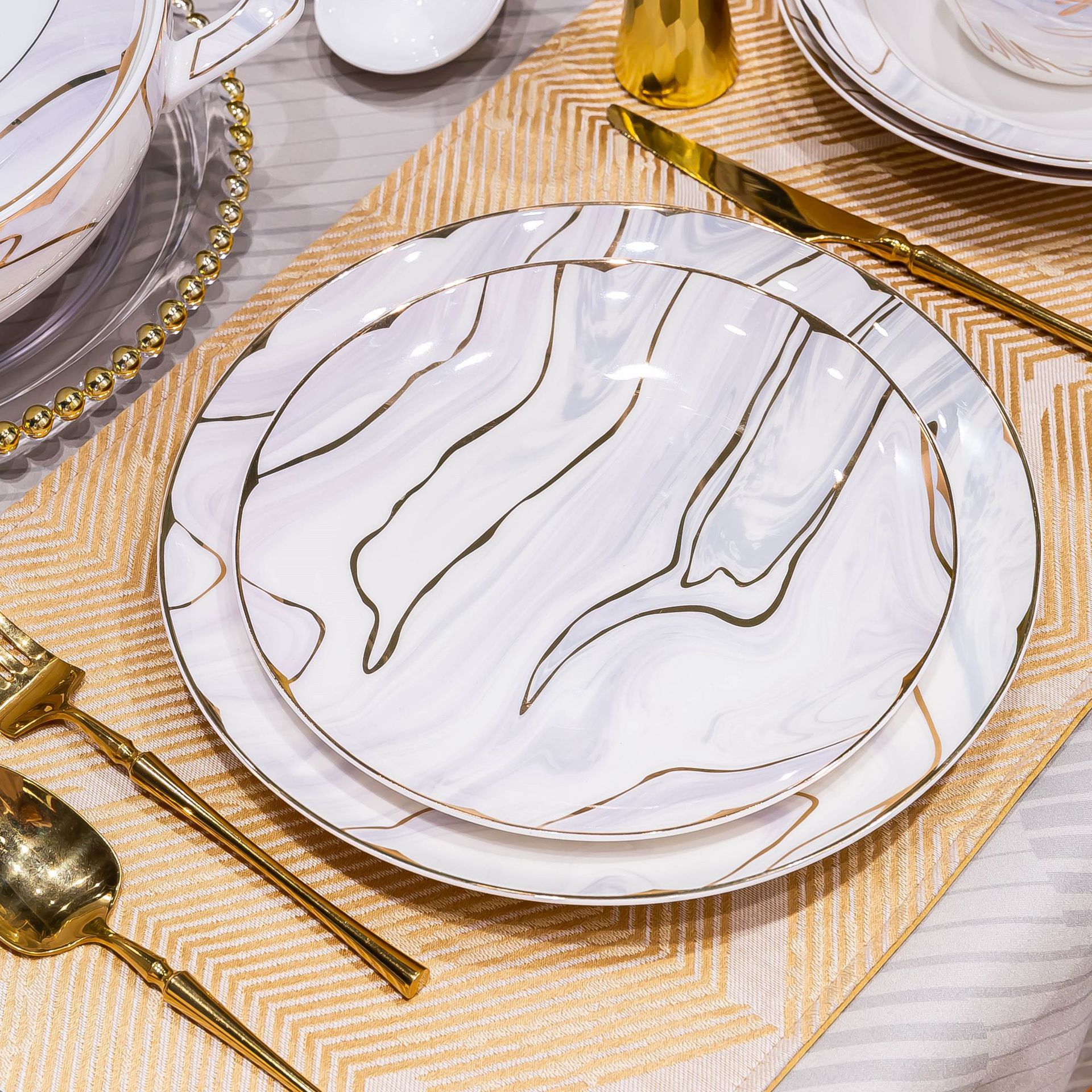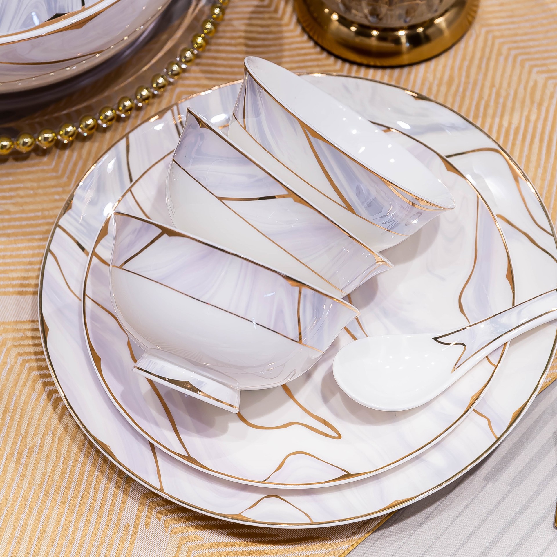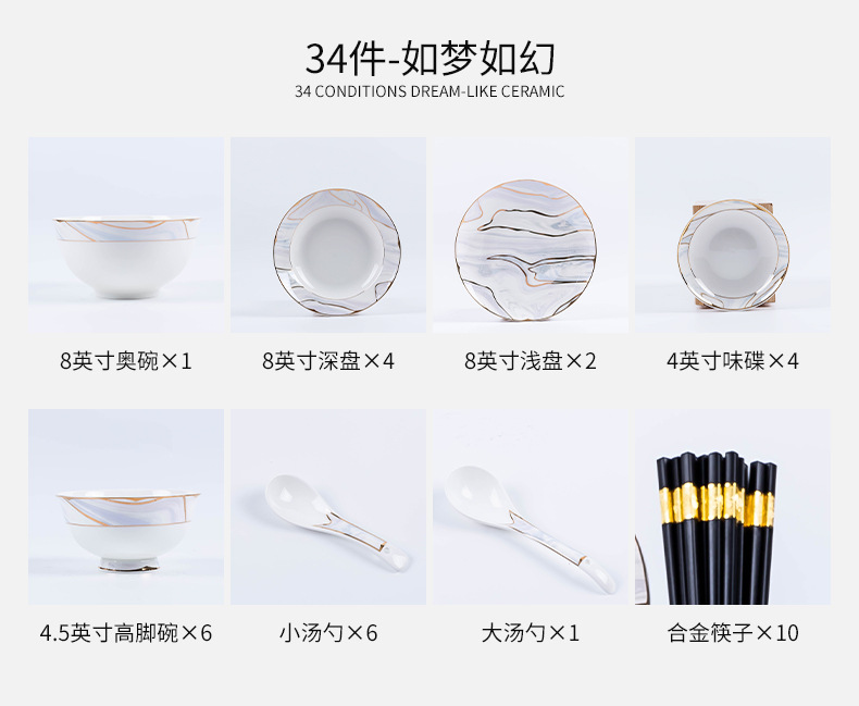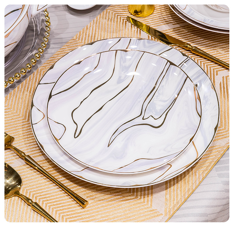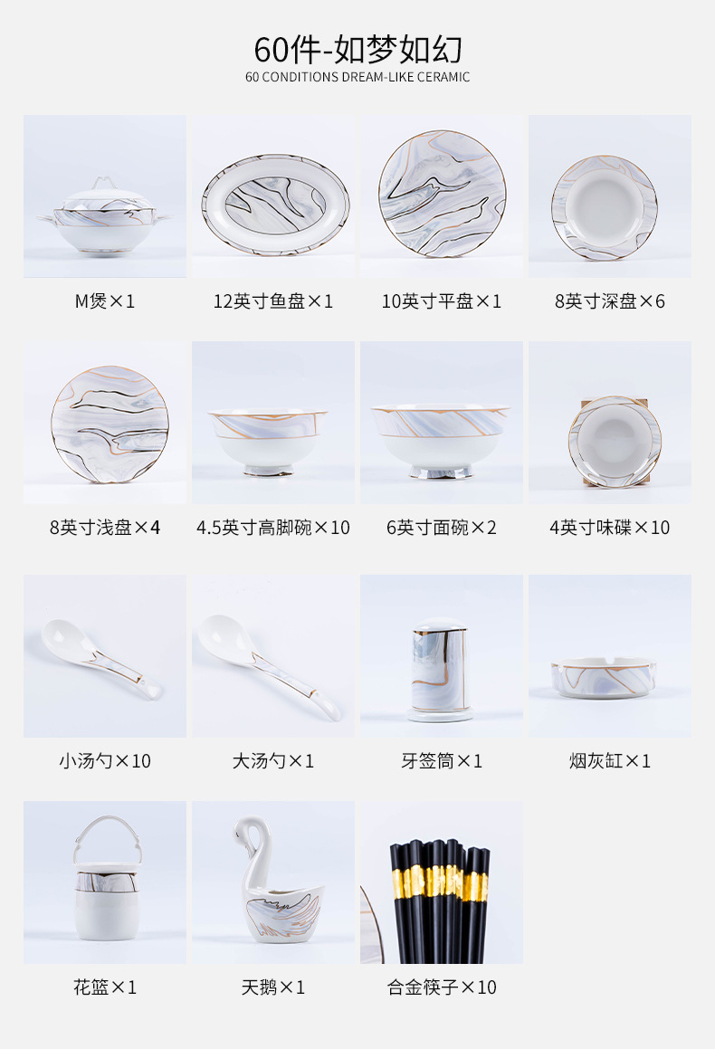 景德镇陶瓷餐具套装家用高档轻奢骨瓷碗碟盘勺送礼佳品礼盒装批发