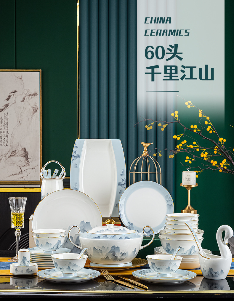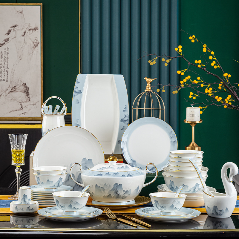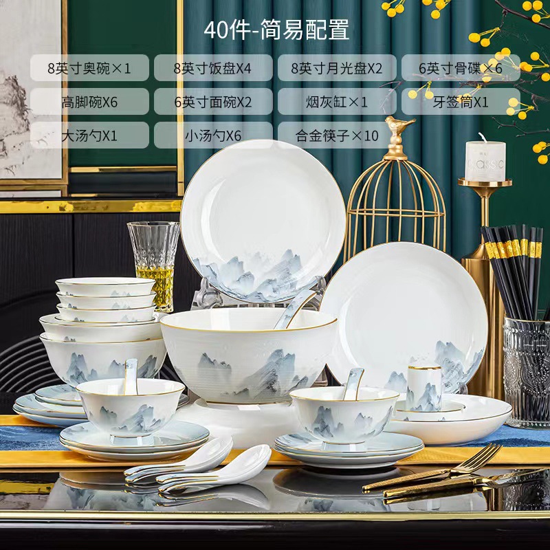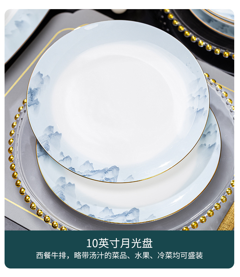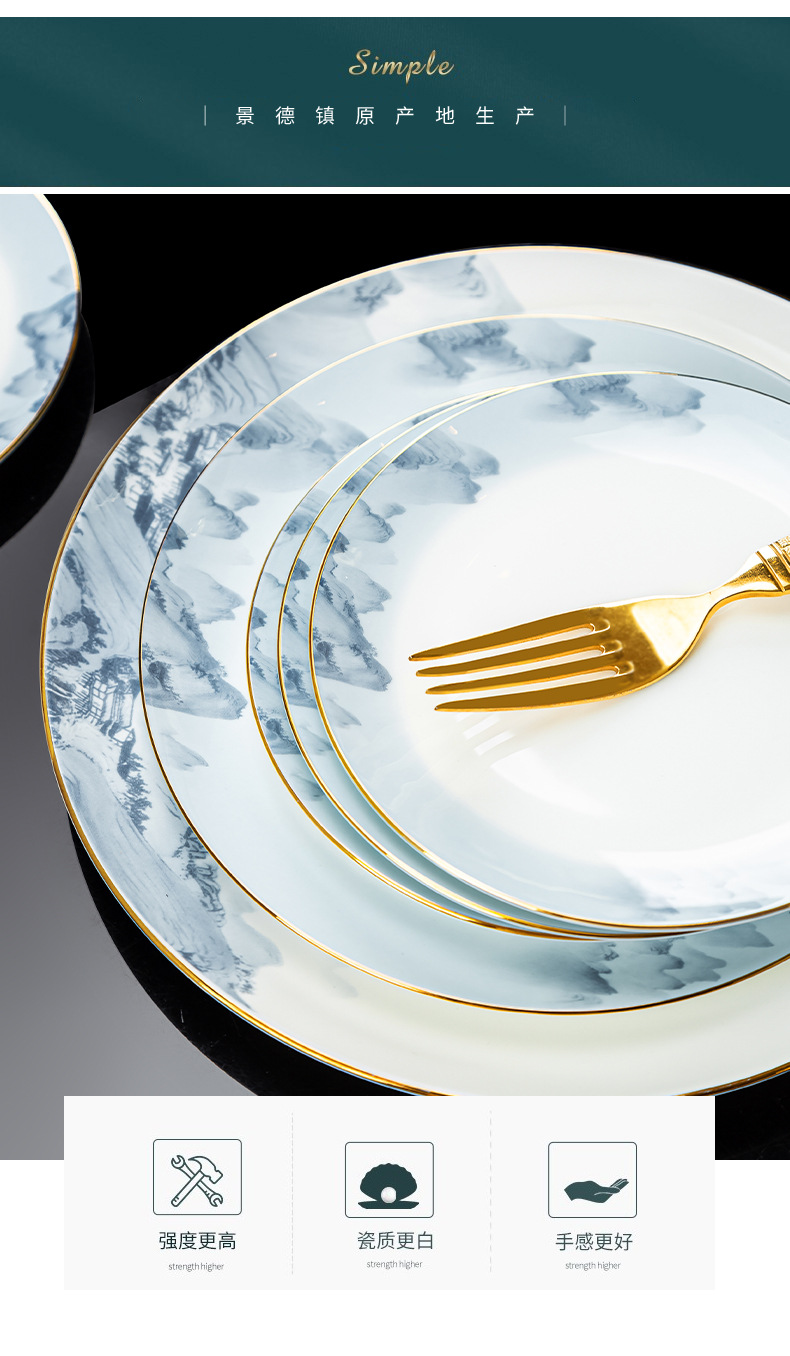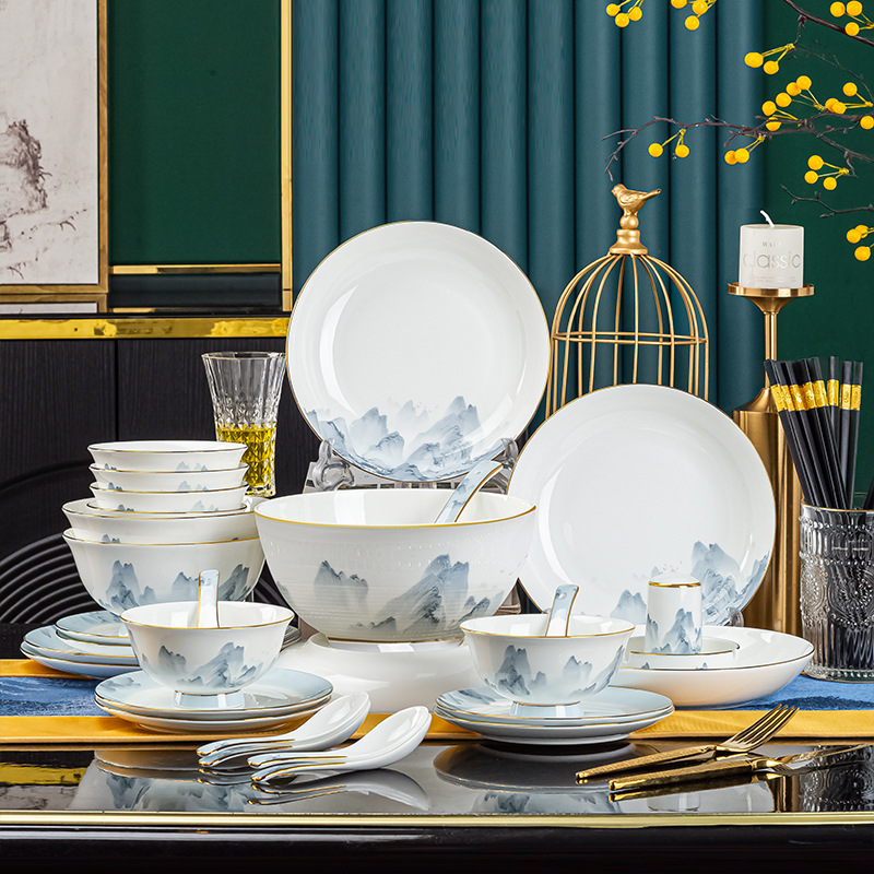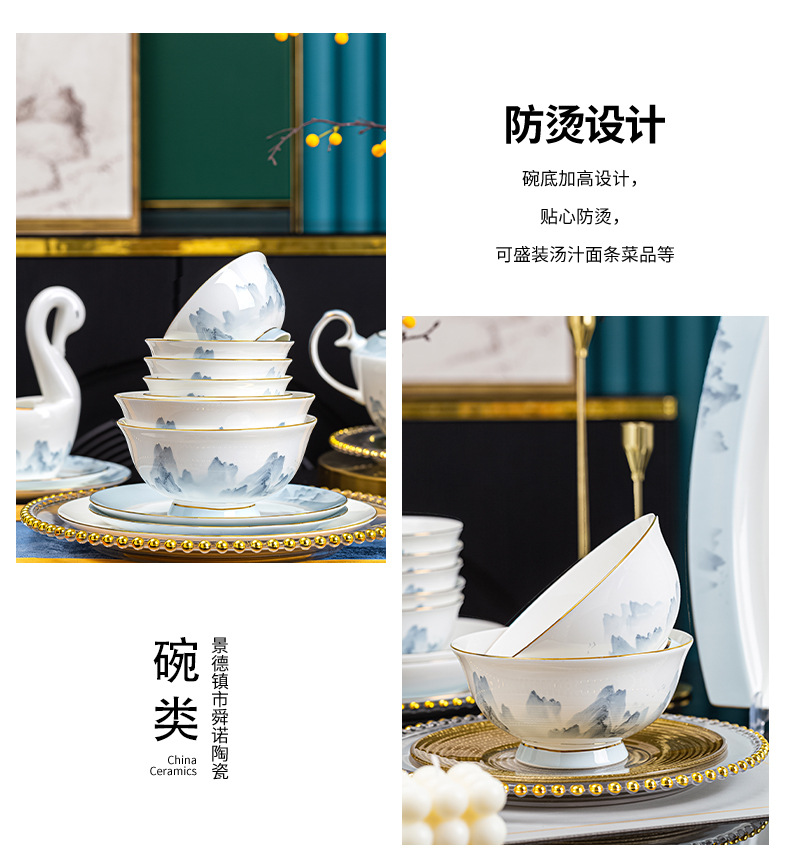 景德镇2023新款骨瓷碗碟套装家用批发 陶瓷碗盘子组合全套礼品ins