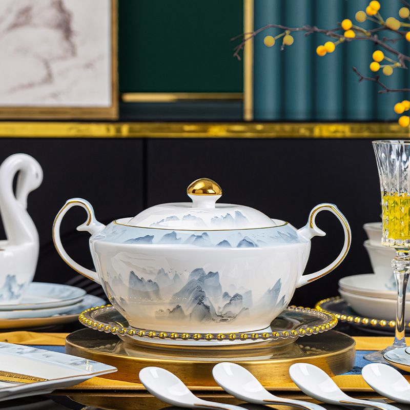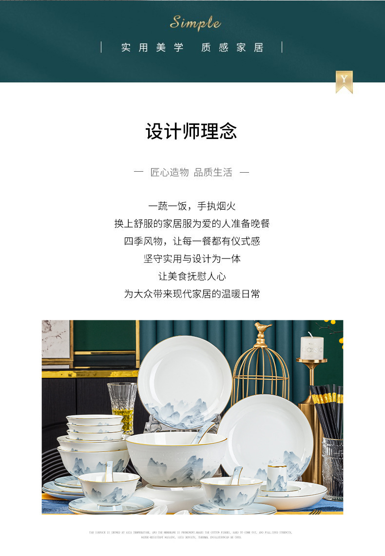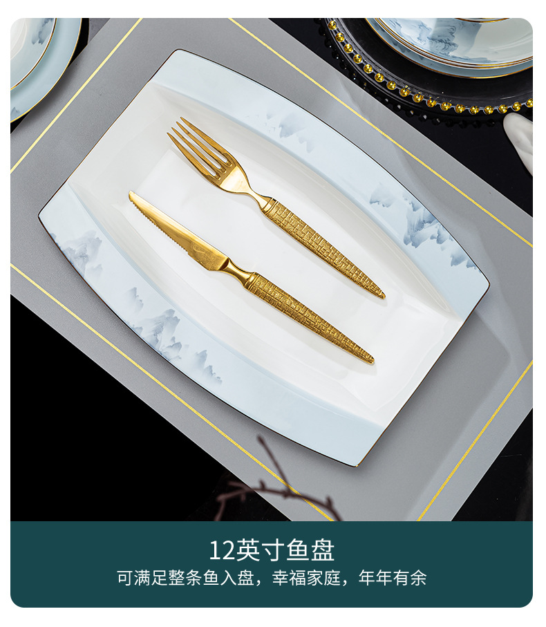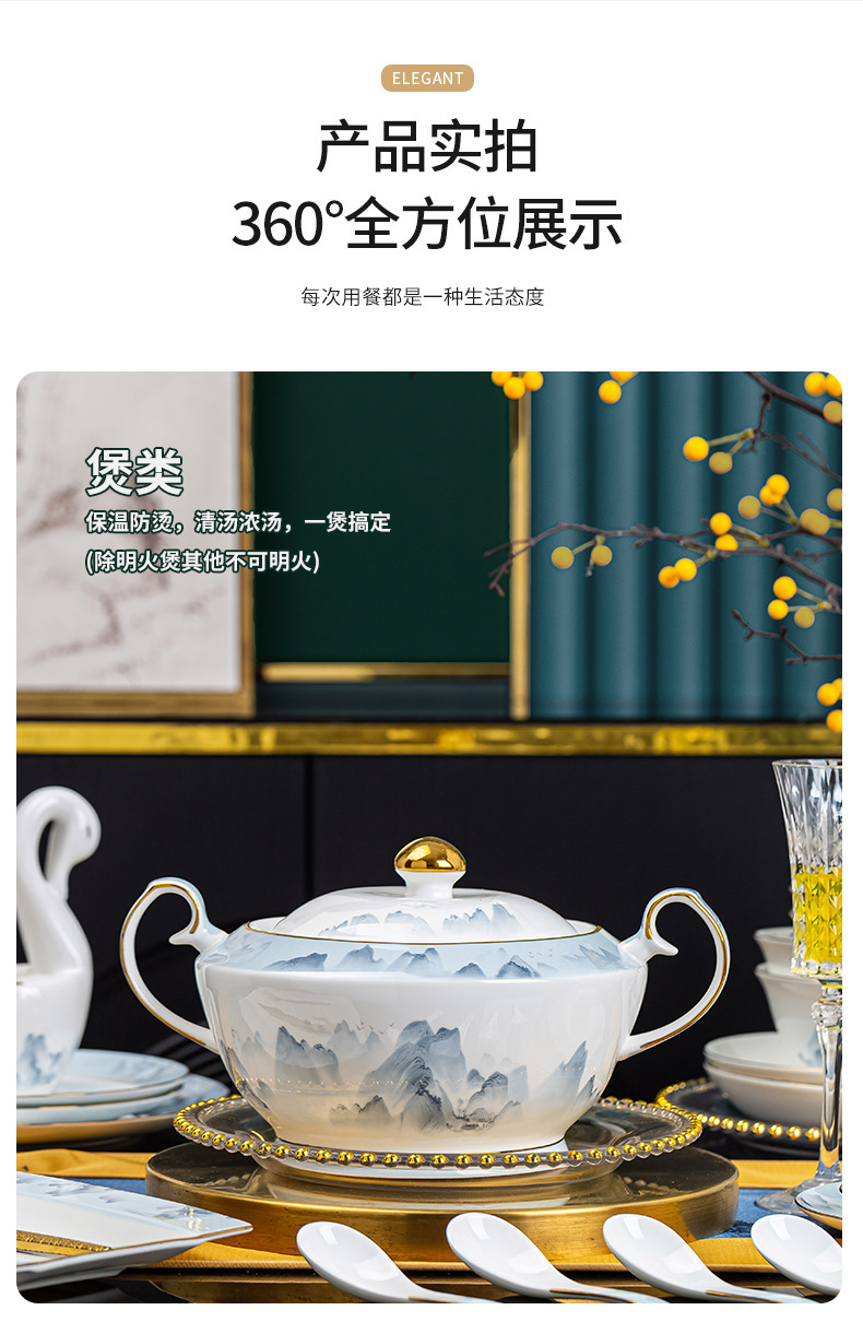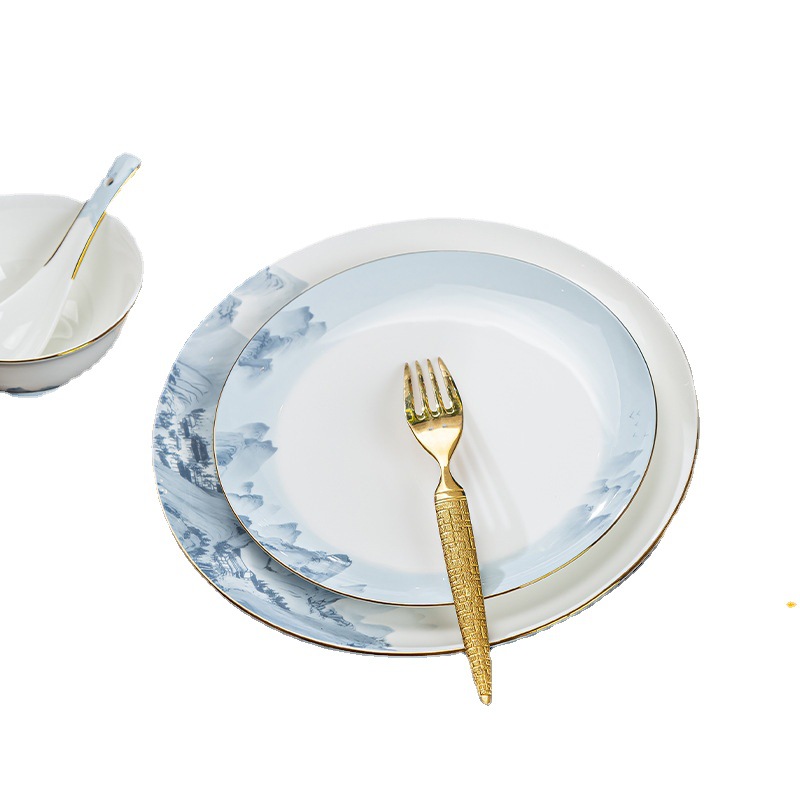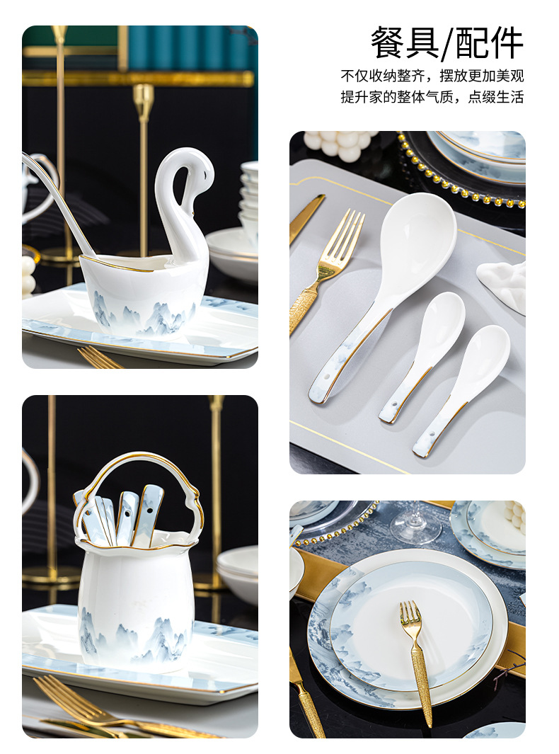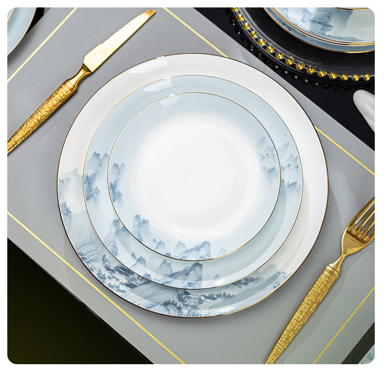 景德镇2023新款骨瓷碗碟套装家用批发 陶瓷碗盘子组合全套礼品ins