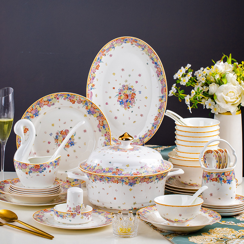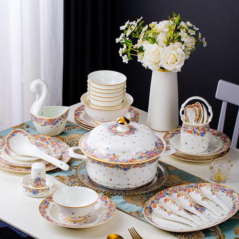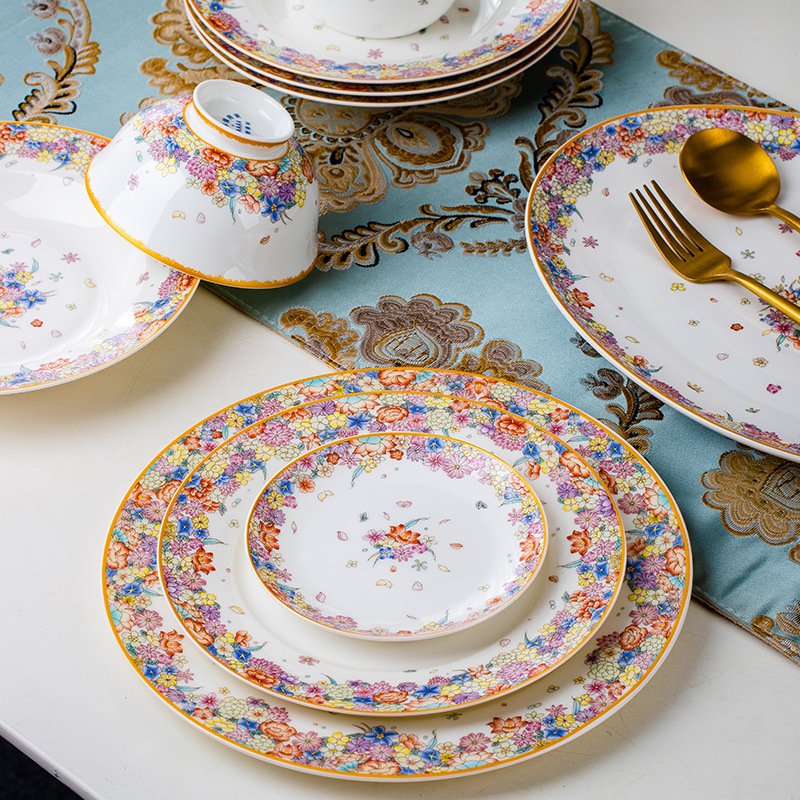 景德陶瓷餐具活动礼品碗碟套装家用创意简约骨瓷北欧碗盘一件代发