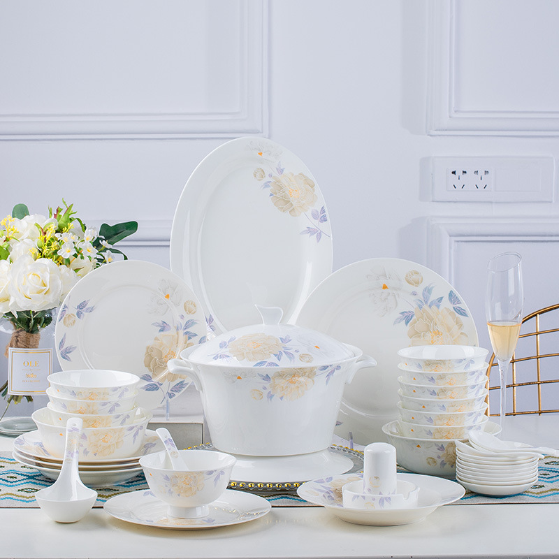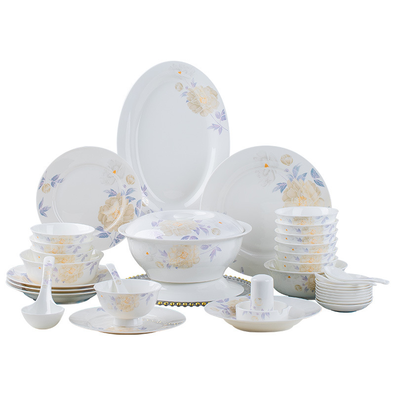 景德镇陶瓷餐具骨瓷碗碟套装活动礼品碗日式家用极简碗筷盘子批发