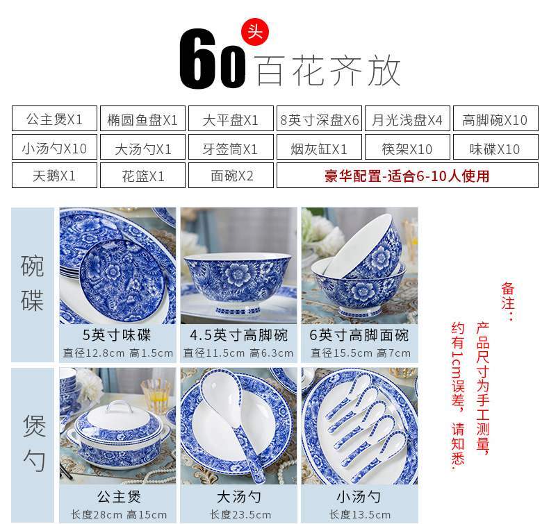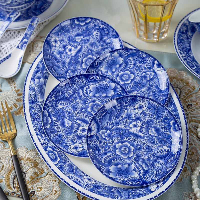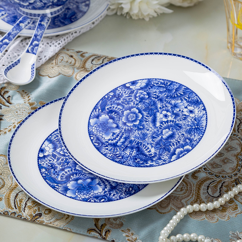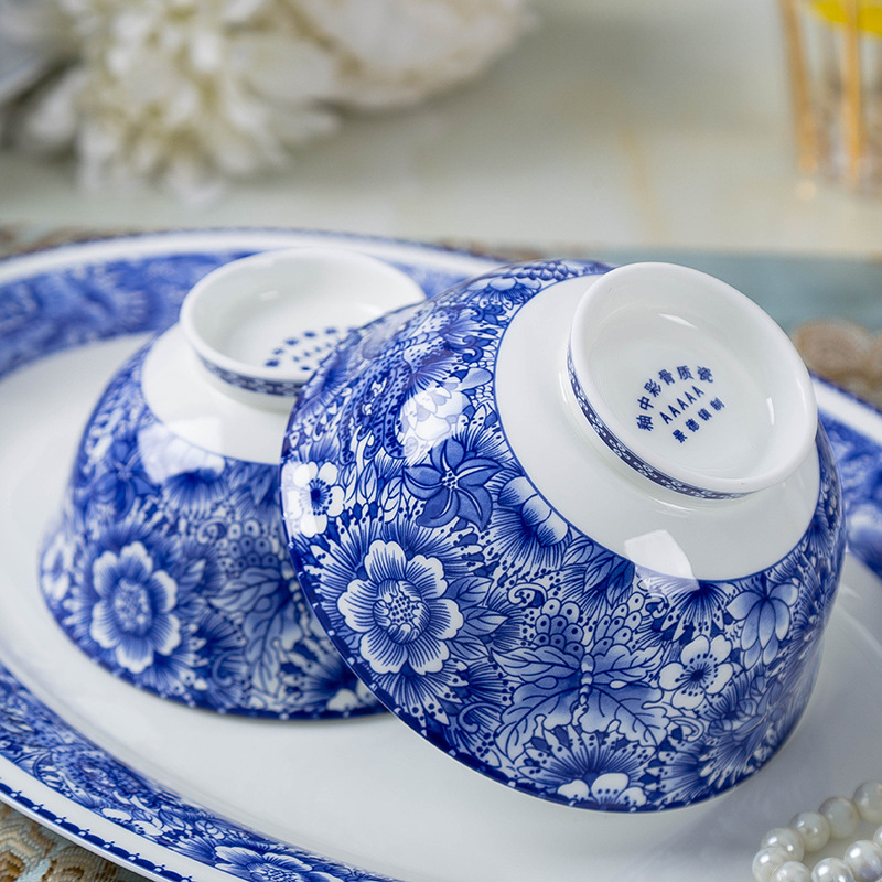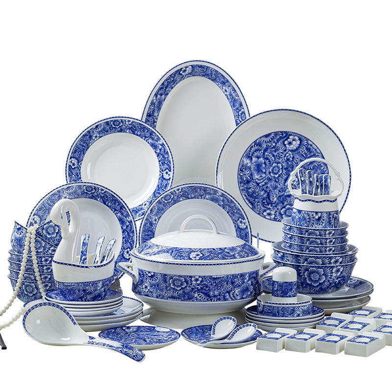 景德镇骨瓷餐具碗碟套装 60头釉中陶瓷盘子青花瓷碗筷礼品礼盒装