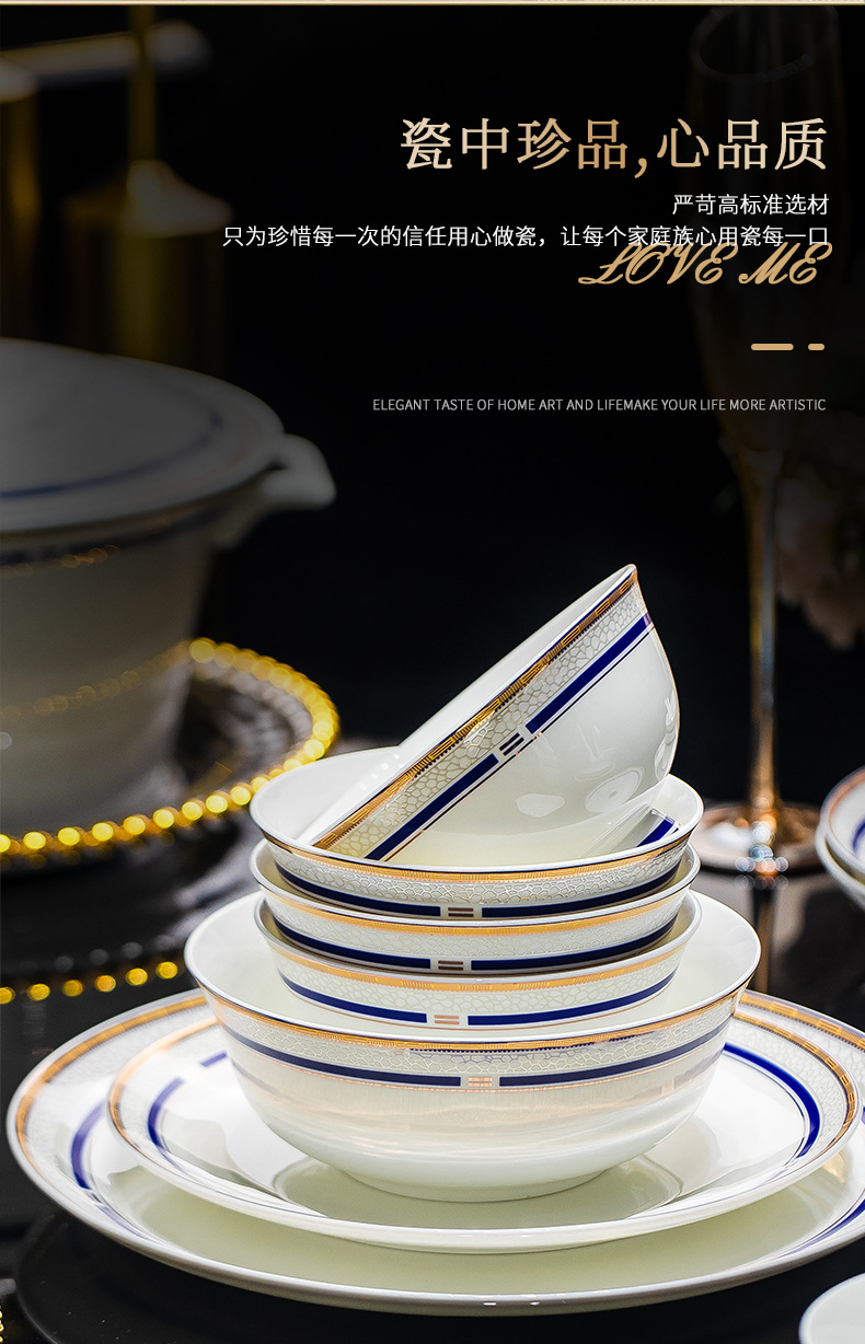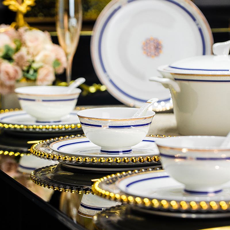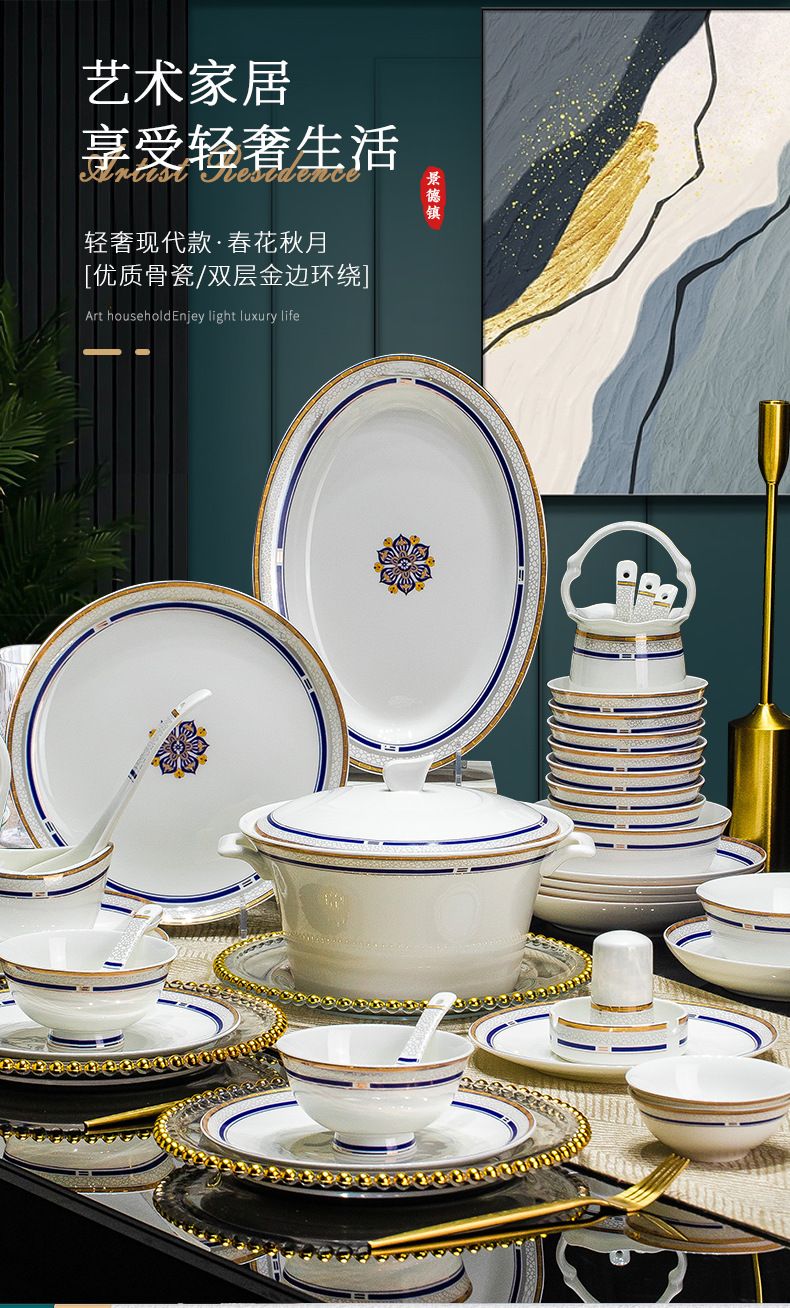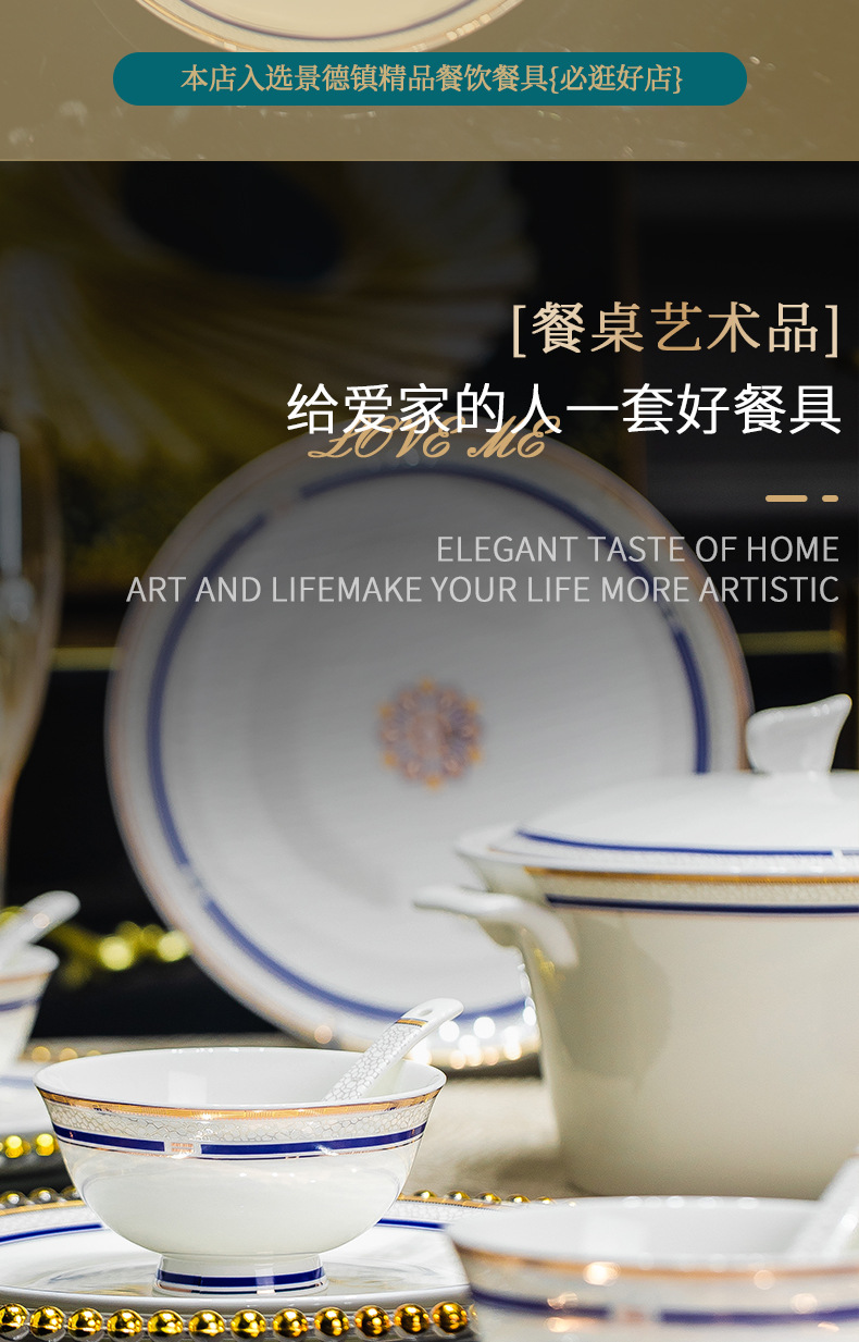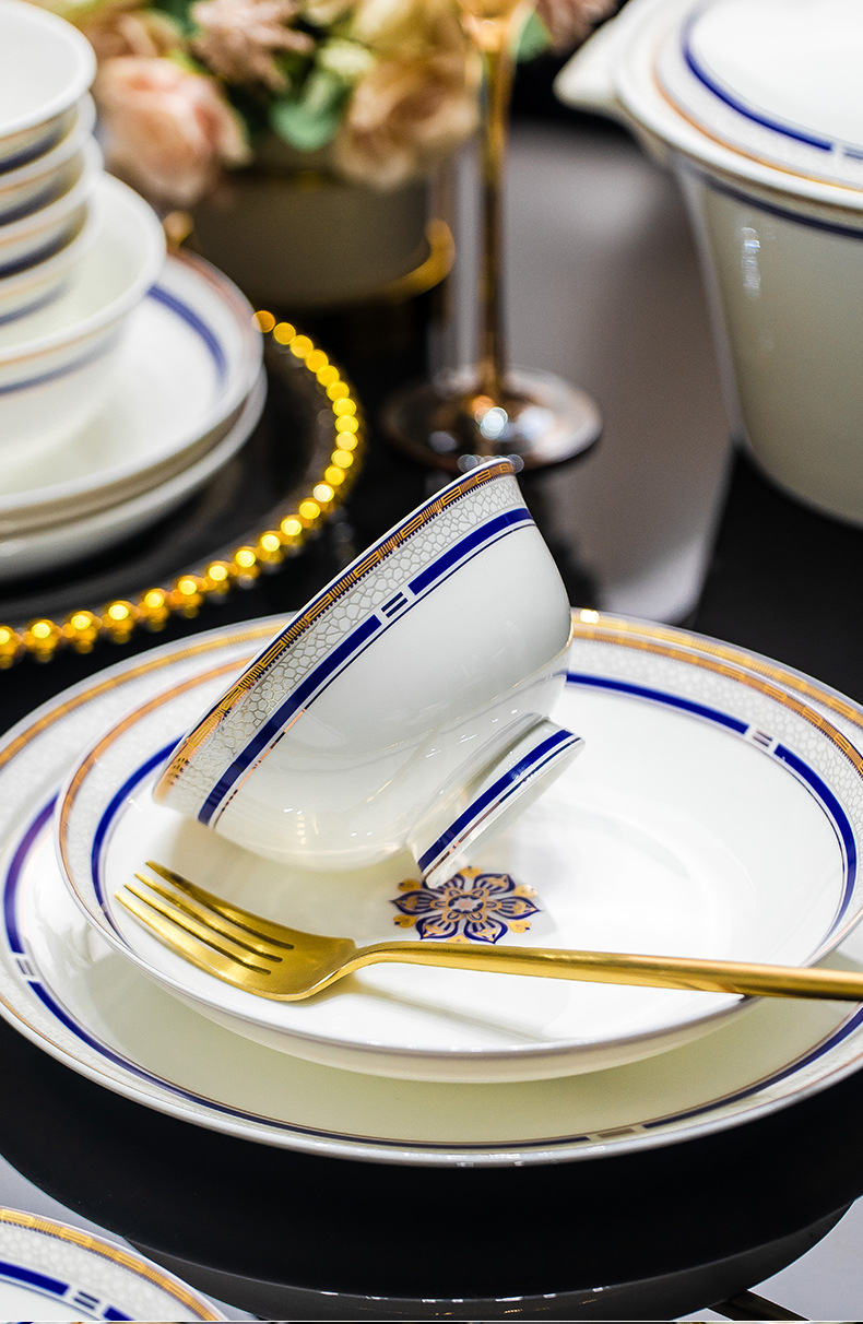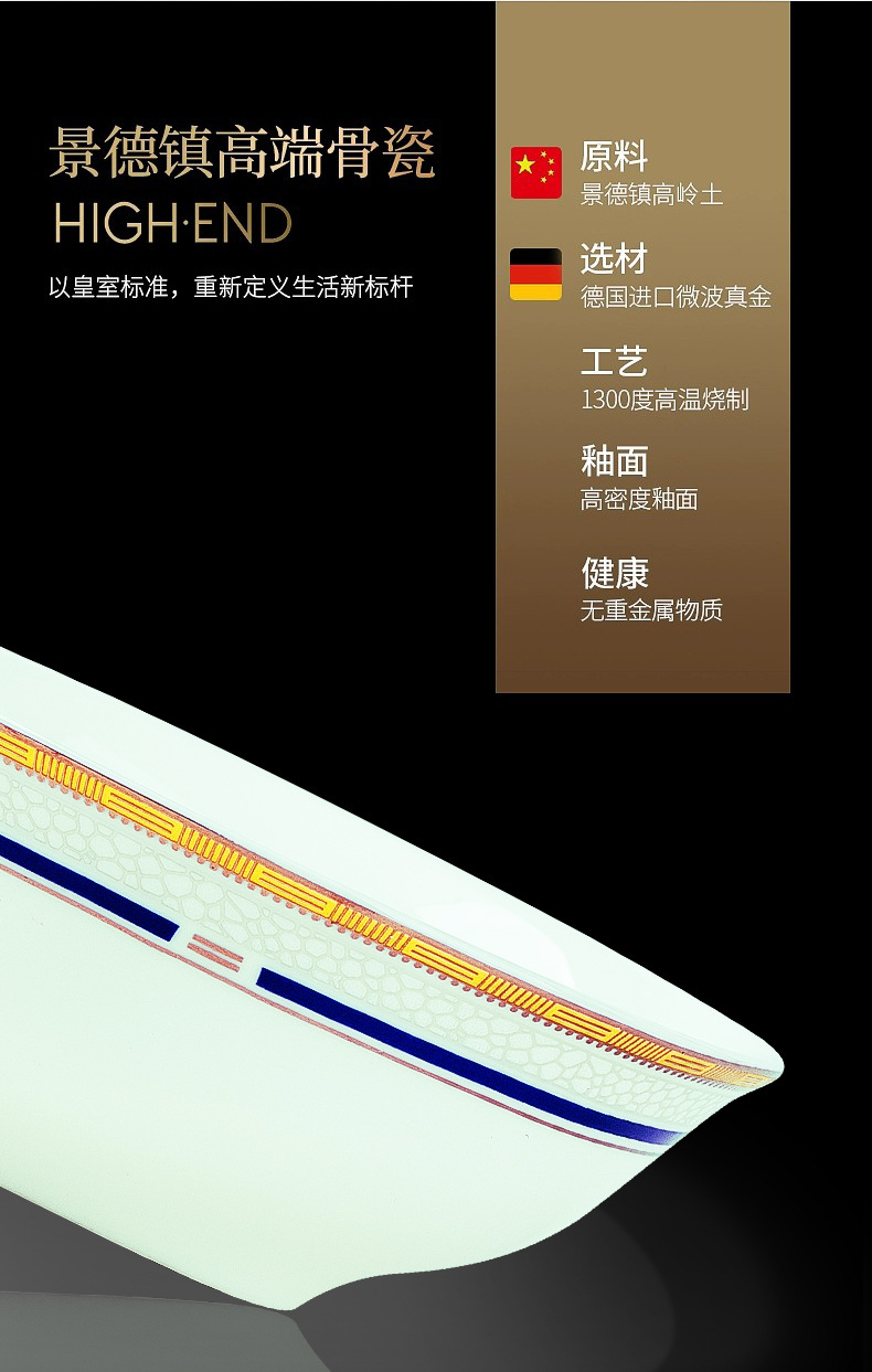 碗碟套装家用景德镇陶瓷欧式轻奢浮雕骨瓷餐具乔迁礼品碗盘子批发