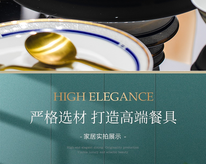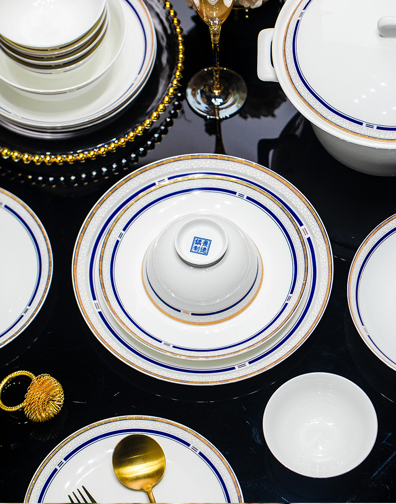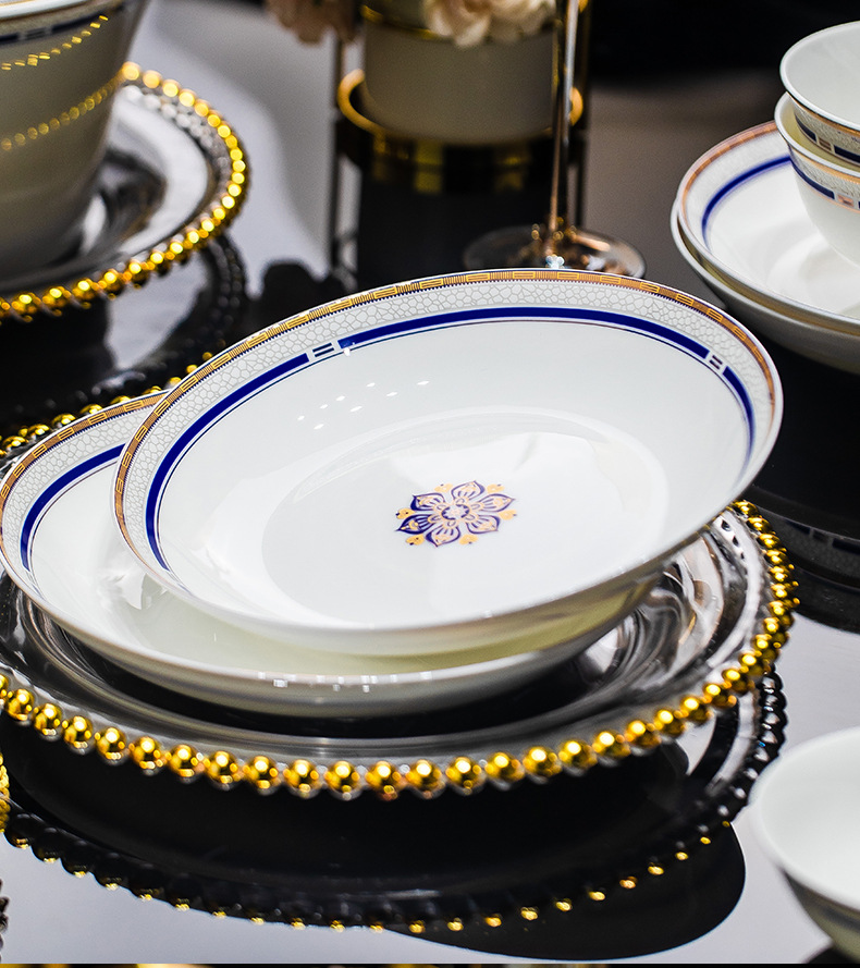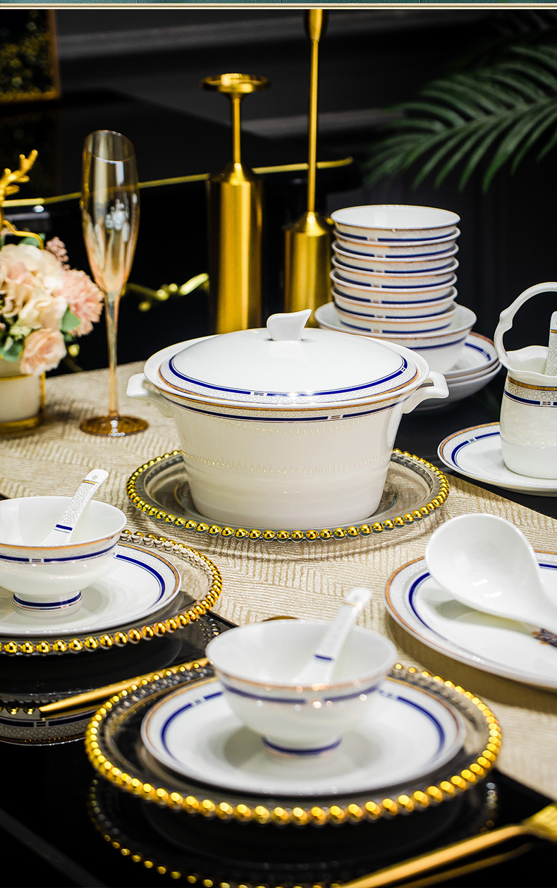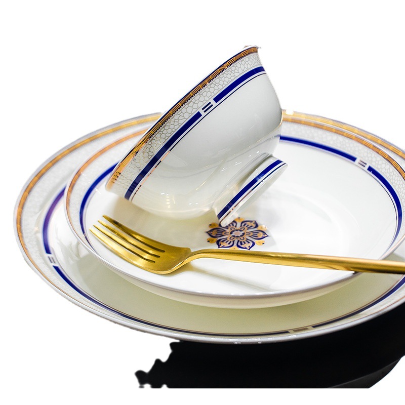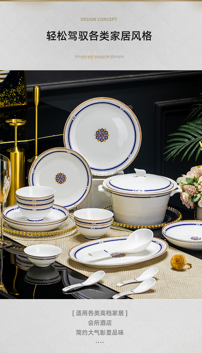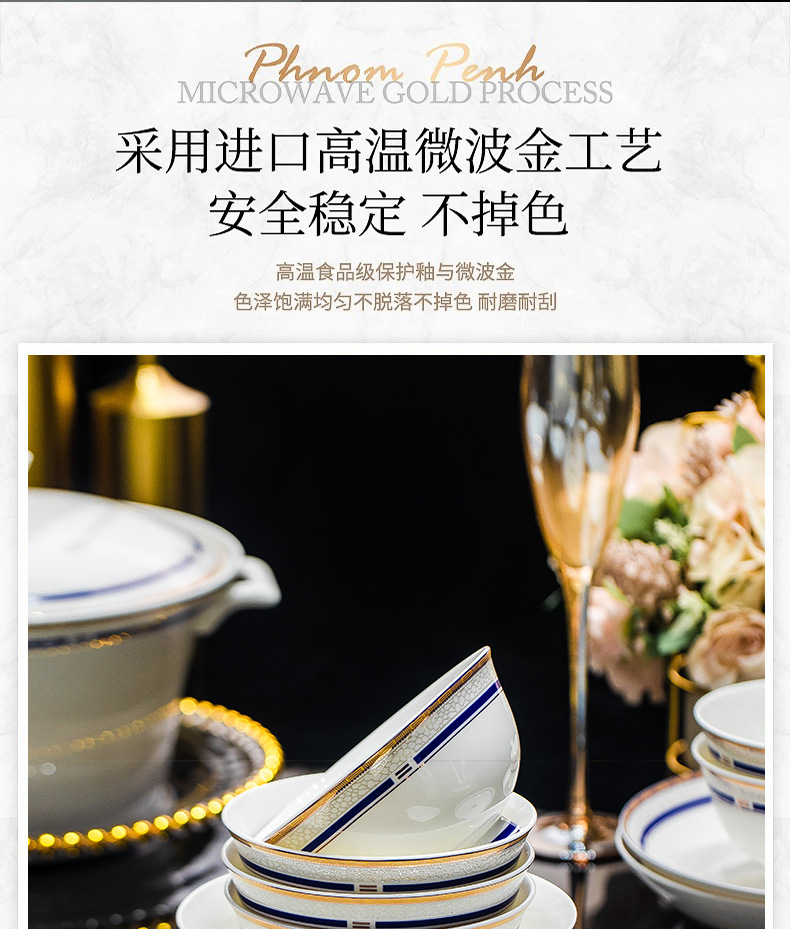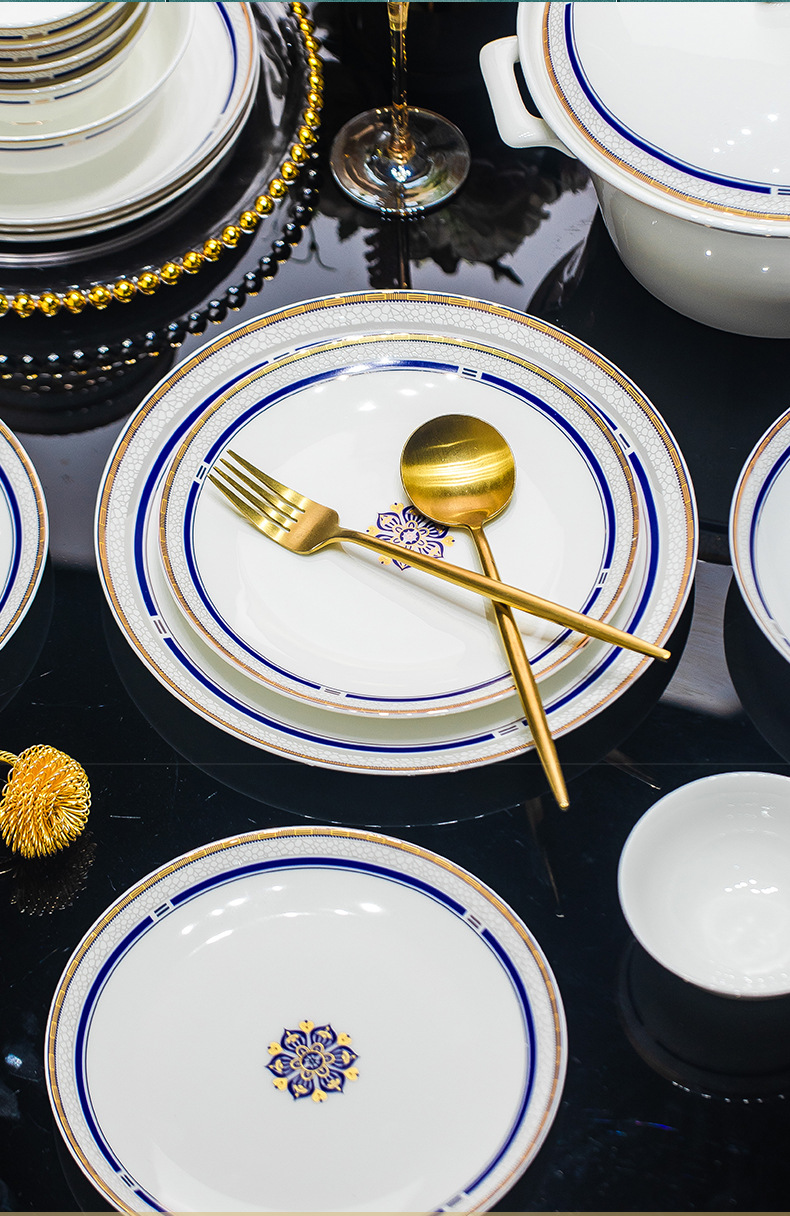 碗碟套装家用景德镇陶瓷欧式轻奢浮雕骨瓷餐具乔迁礼品碗盘子批发