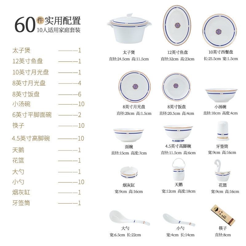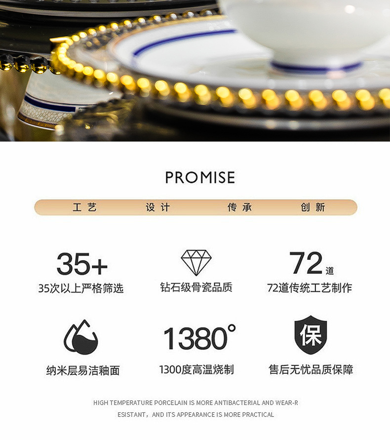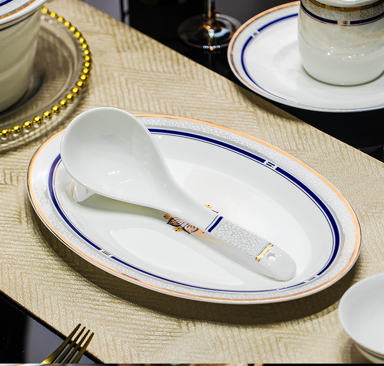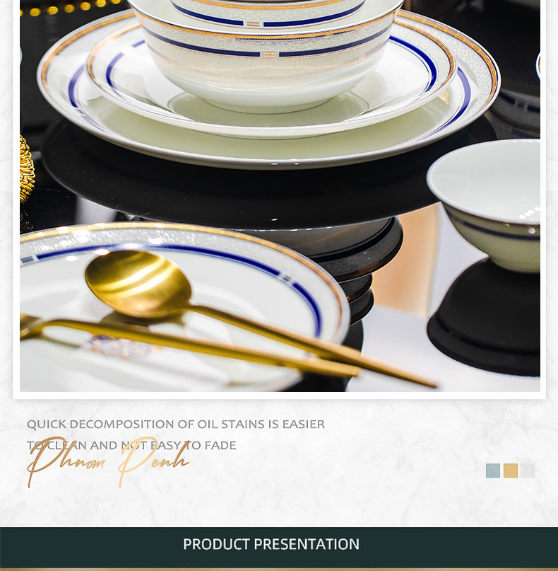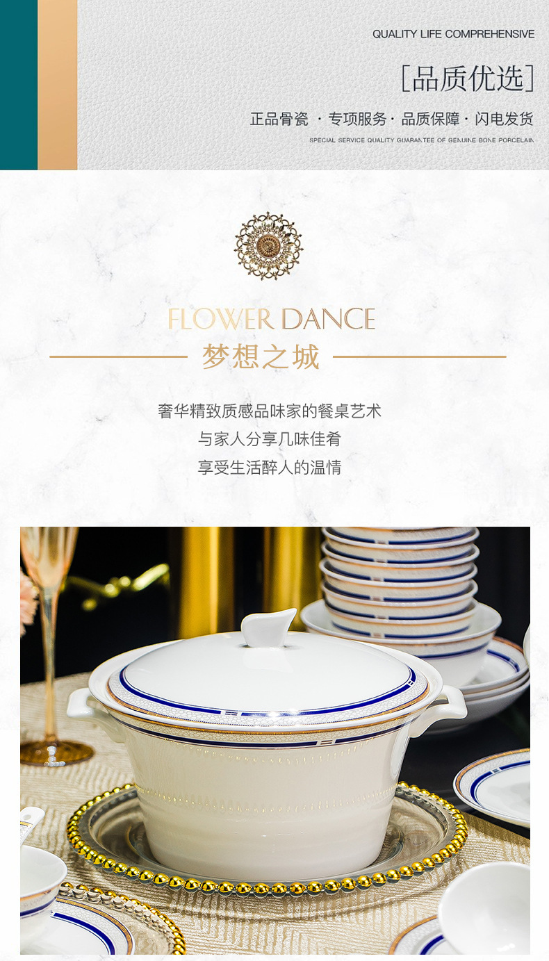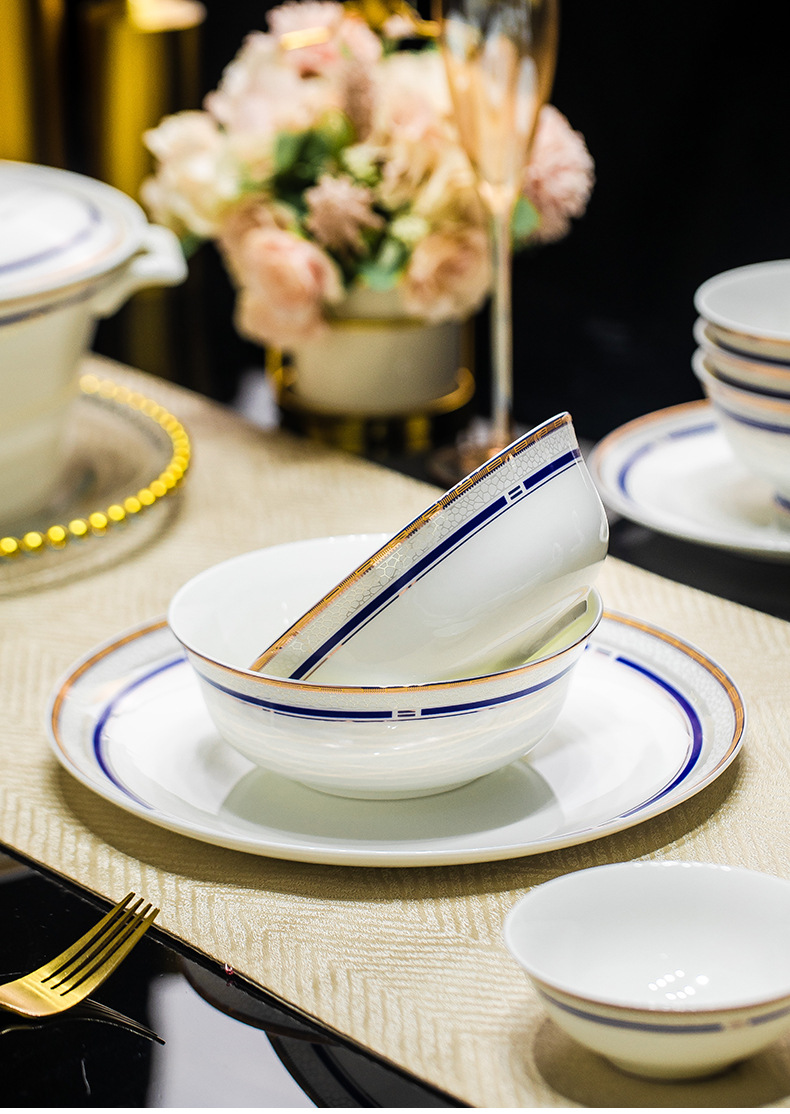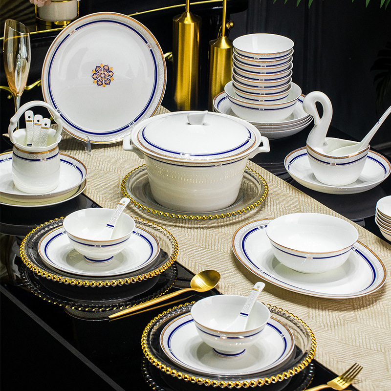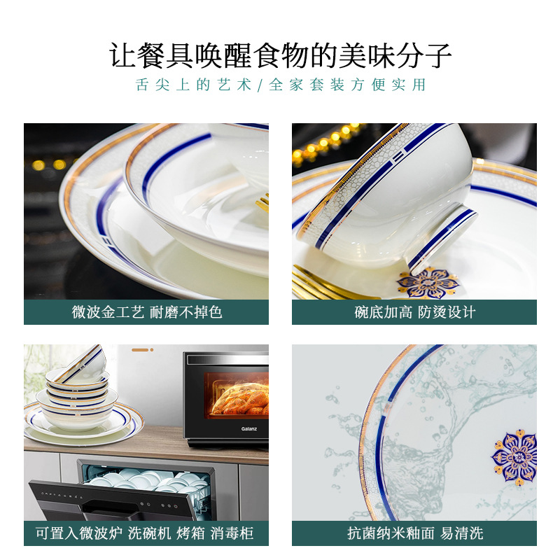 碗碟套装家用景德镇陶瓷欧式轻奢浮雕骨瓷餐具乔迁礼品碗盘子批发