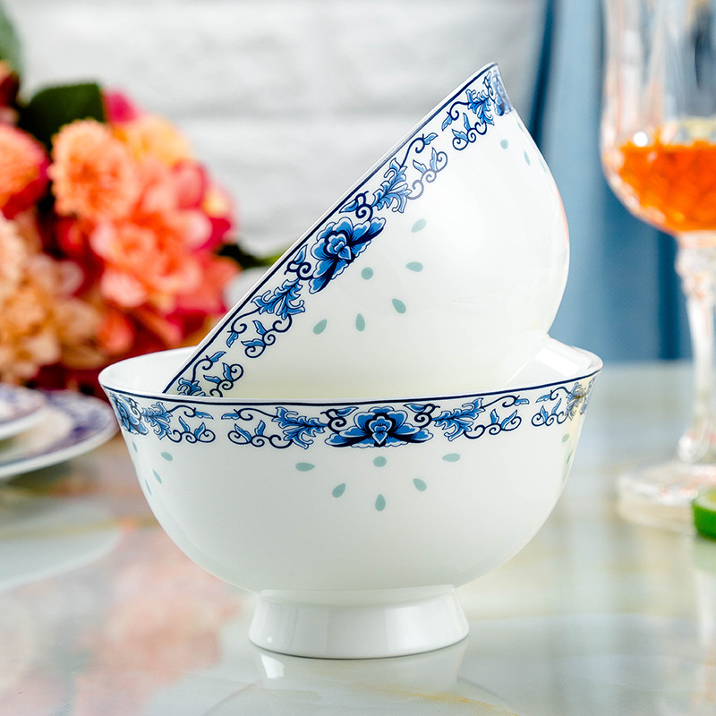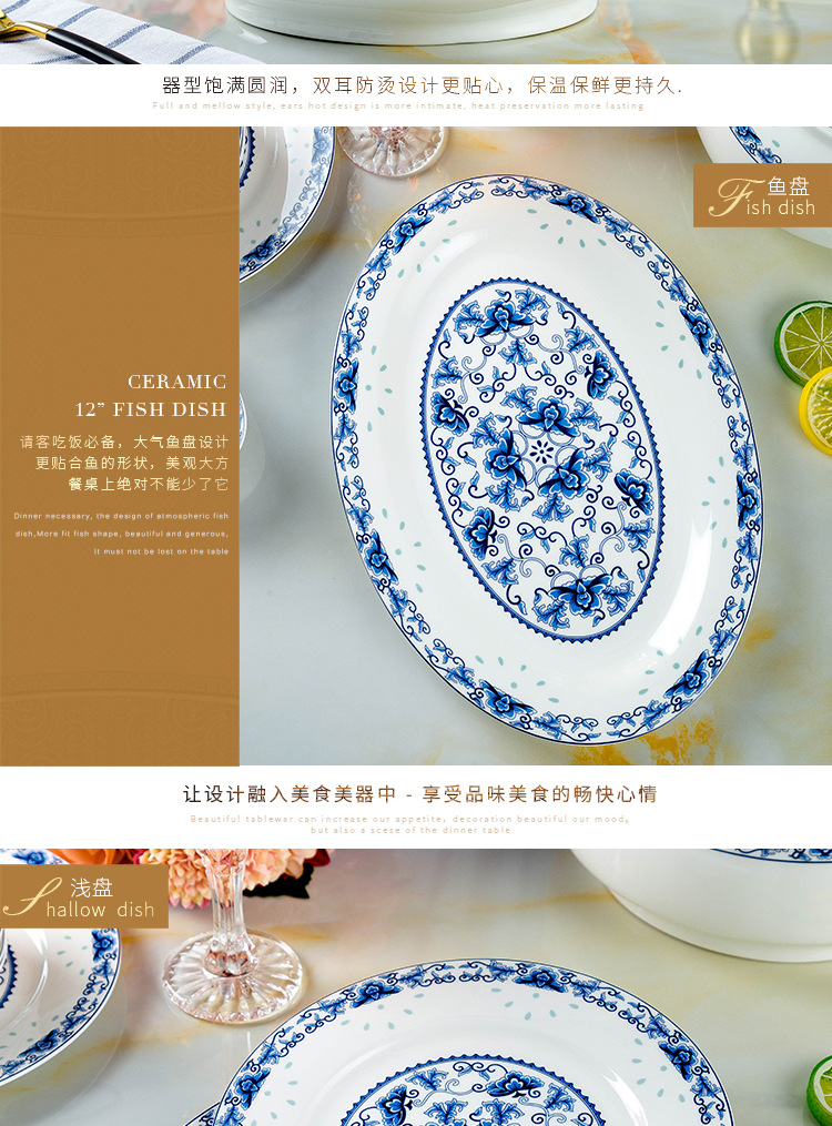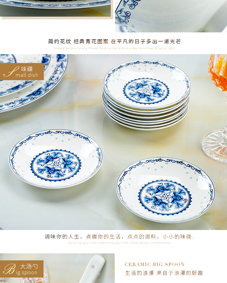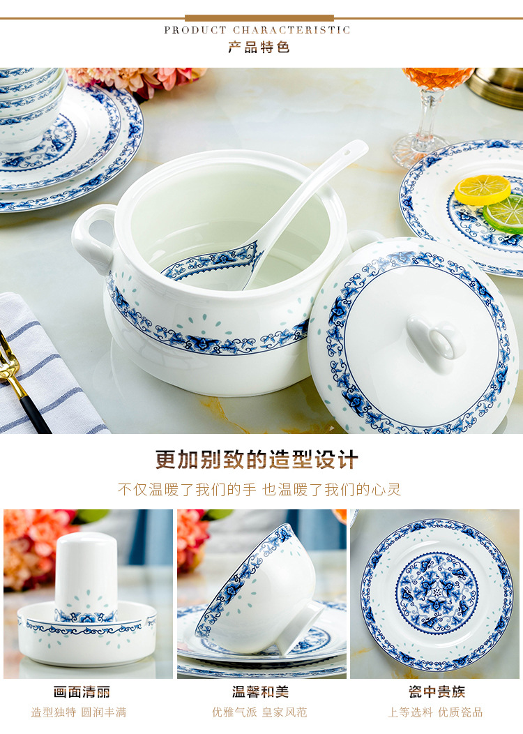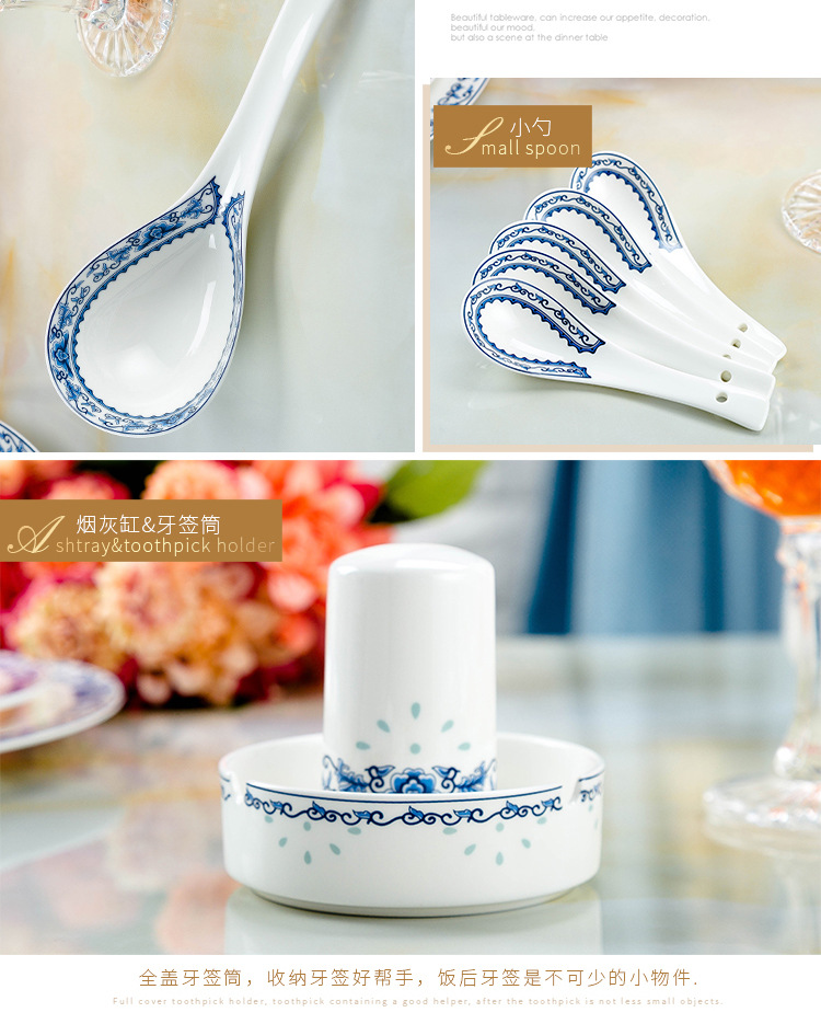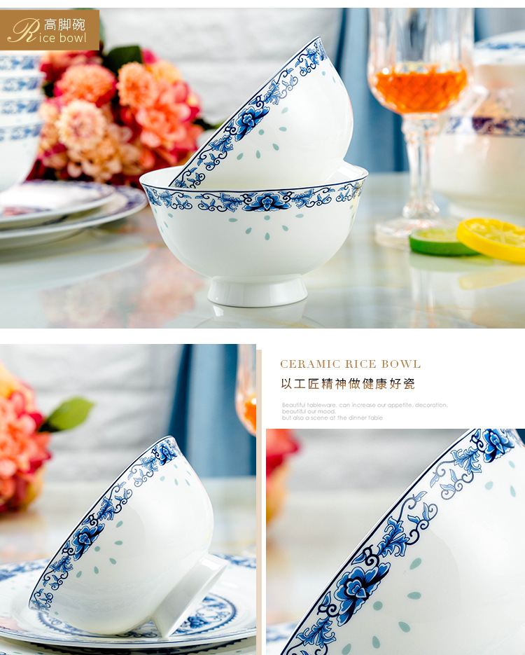 景德镇高温青花釉 高温陶瓷玲珑餐具 收藏送礼碗碟盘骨瓷餐具套装